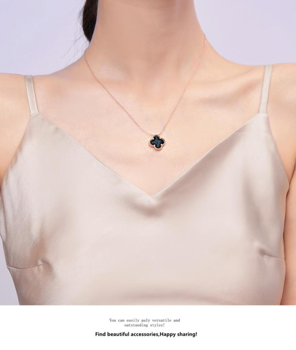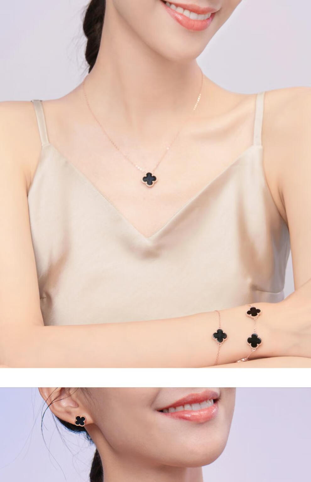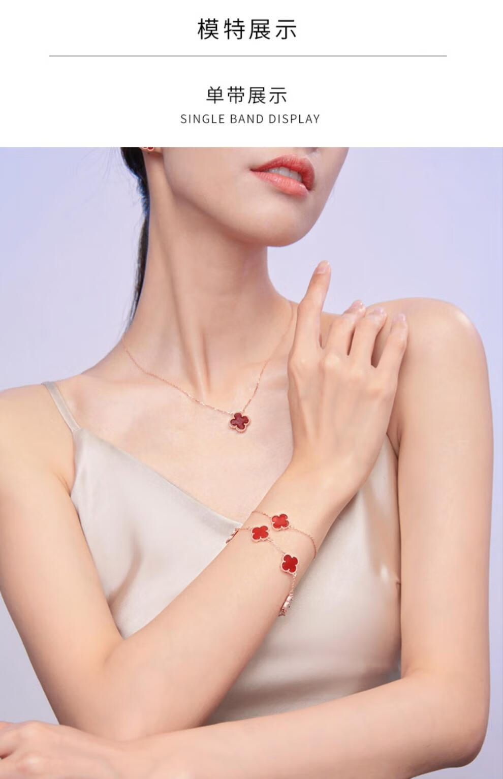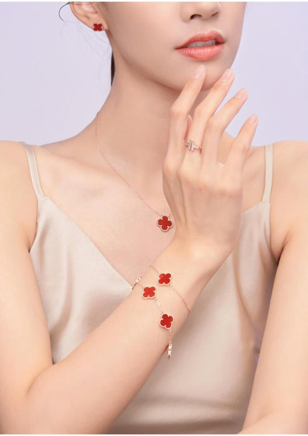 Fat Donglai's same style four-leaf clover necklace 18k gold red girls K gold agate pendant clavicle chain light luxury niche four flower necklace gold color red agate
