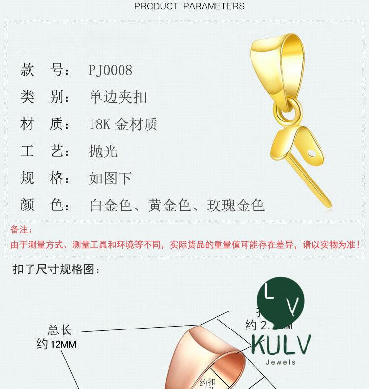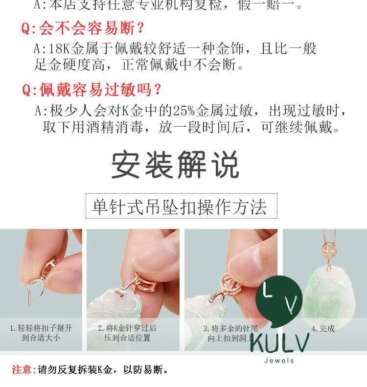 Fat Donglai same style platinum pendant buckle 18K gold rose gold platinum buckle head gold left and right holes au750 jade platinum pendant buckle