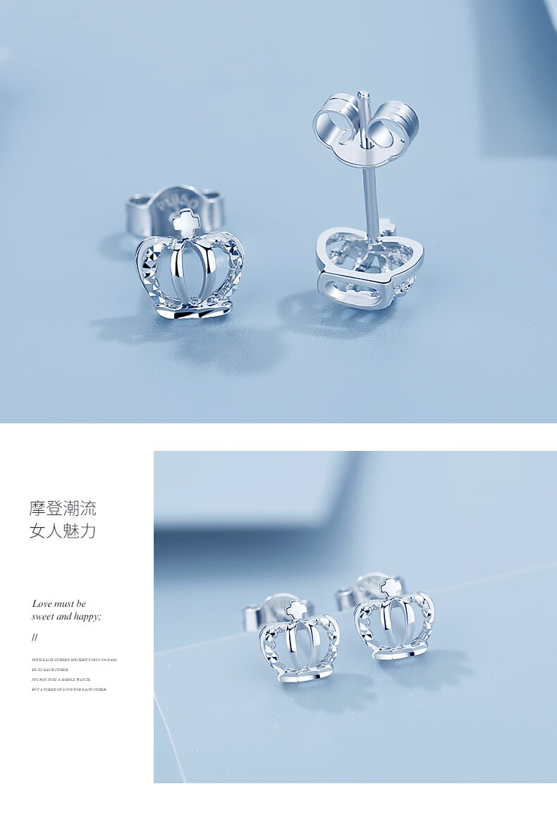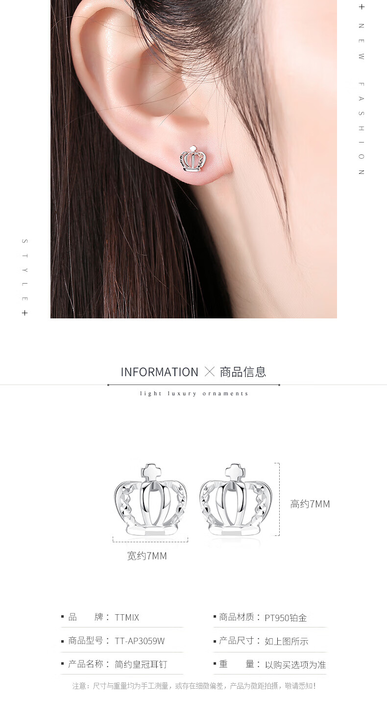 TTMIX platinum crown princess earrings for women platinum pt950 small fresh temperament earrings for girlfriend 1.8-1.9g