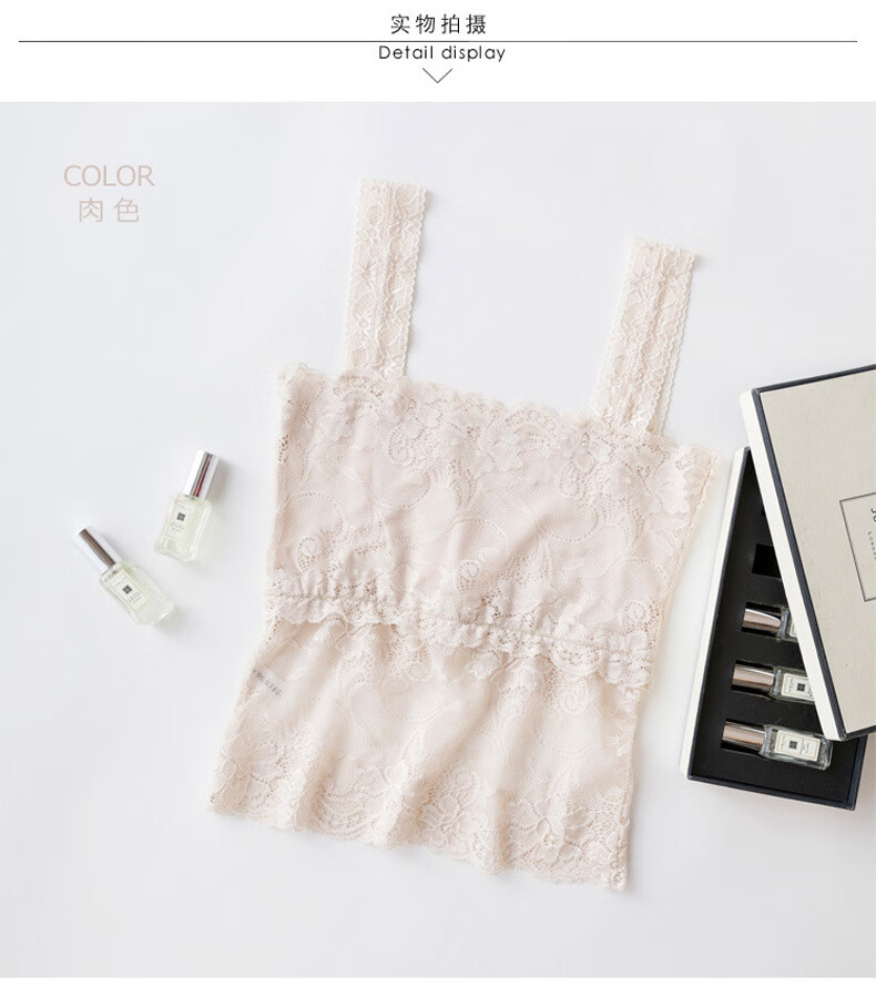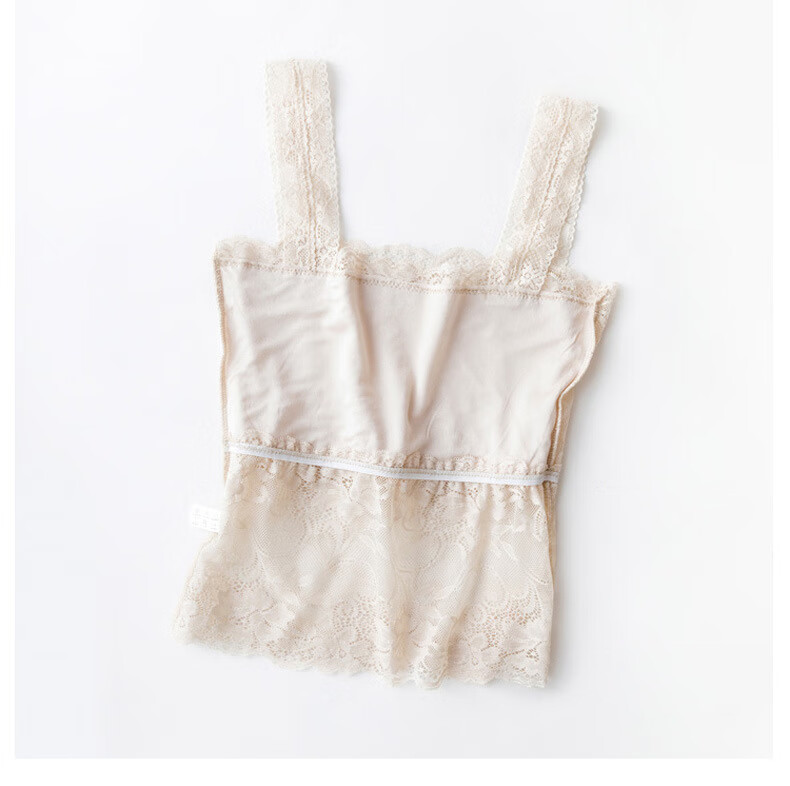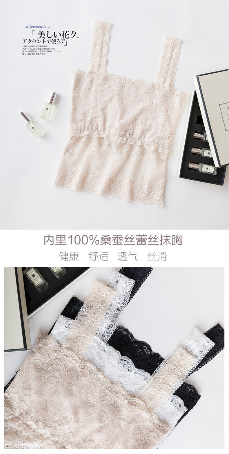 Summer mulberry silk sling wrap bra vest thin lace silk anti-exposure bra breathable flesh color XL