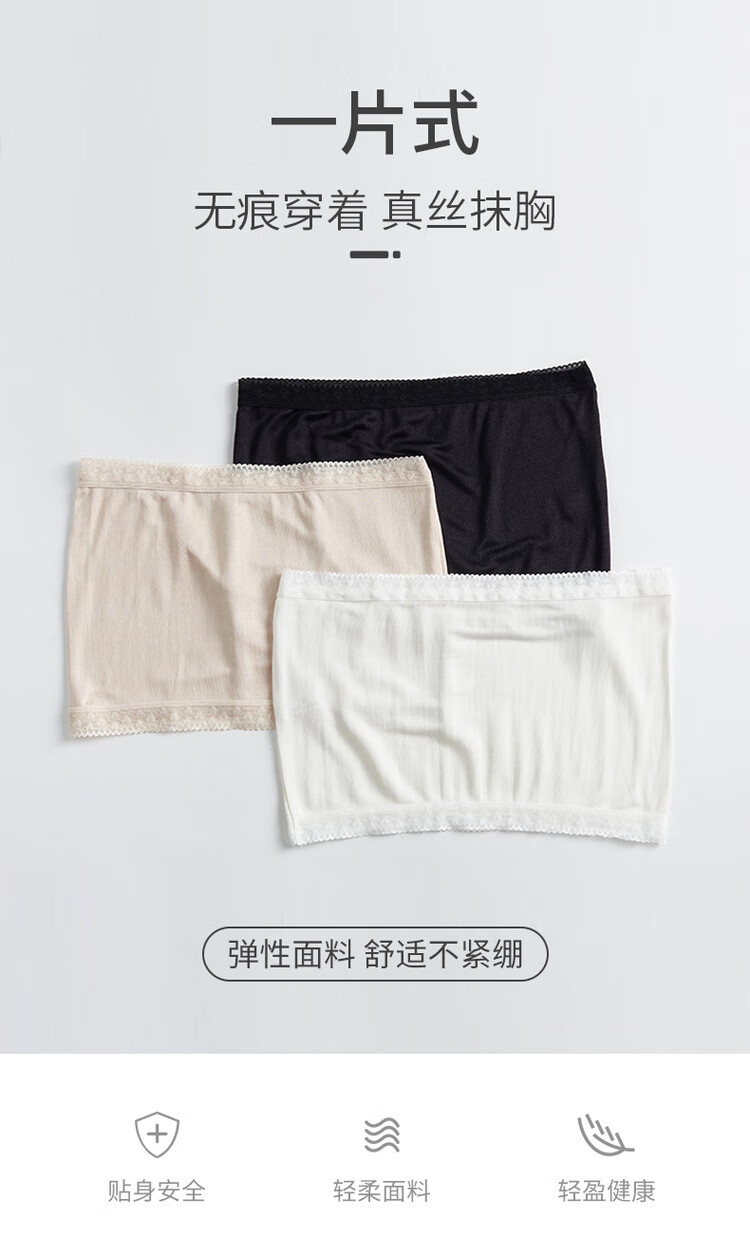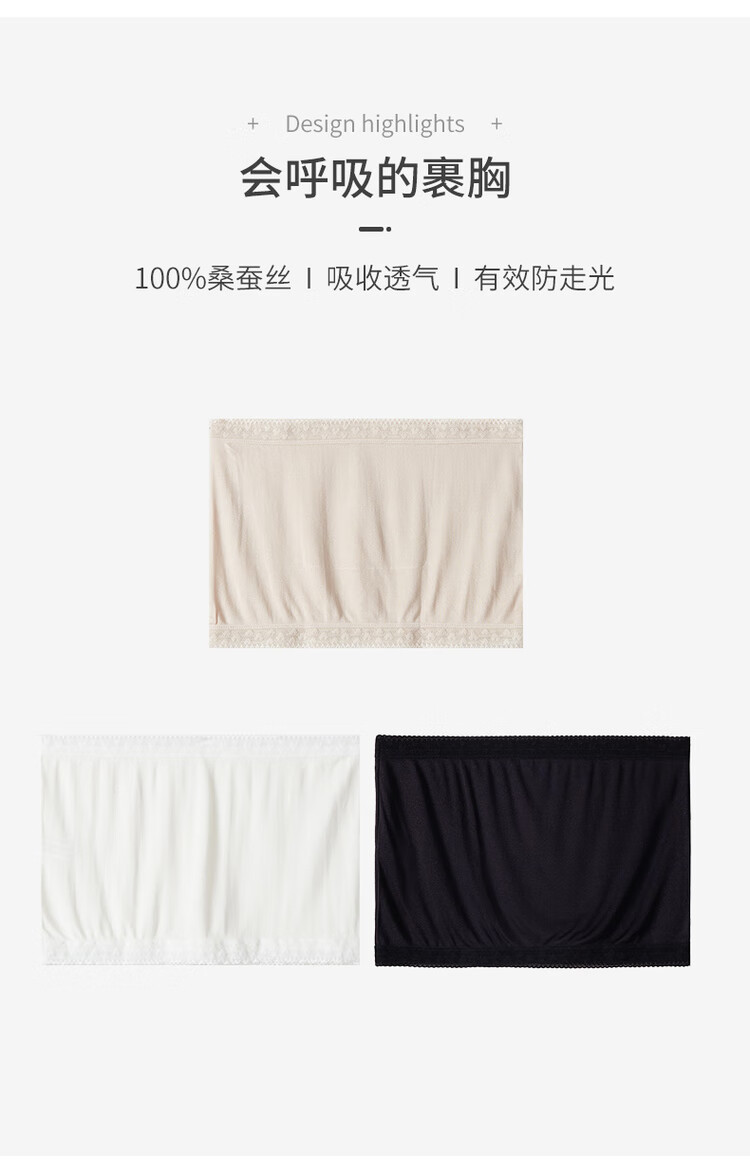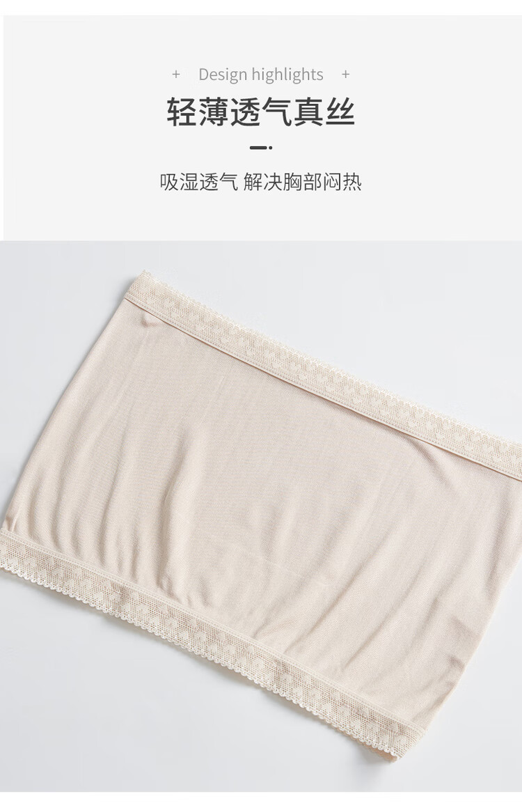 Silk bra-wrapped women's tube top anti-exposure mulberry silk lace beautiful back strapless bottoming underwear summer beige M