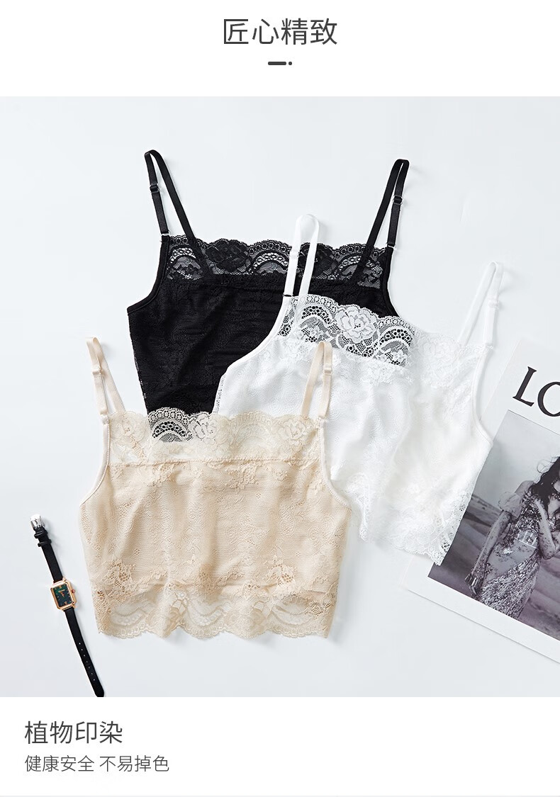 Silk strap tube top underwear for women with low collar, anti-exposure bottoming, lace wrap chest mulberry silk vest for summer, white cherry blossom style L