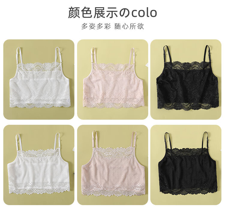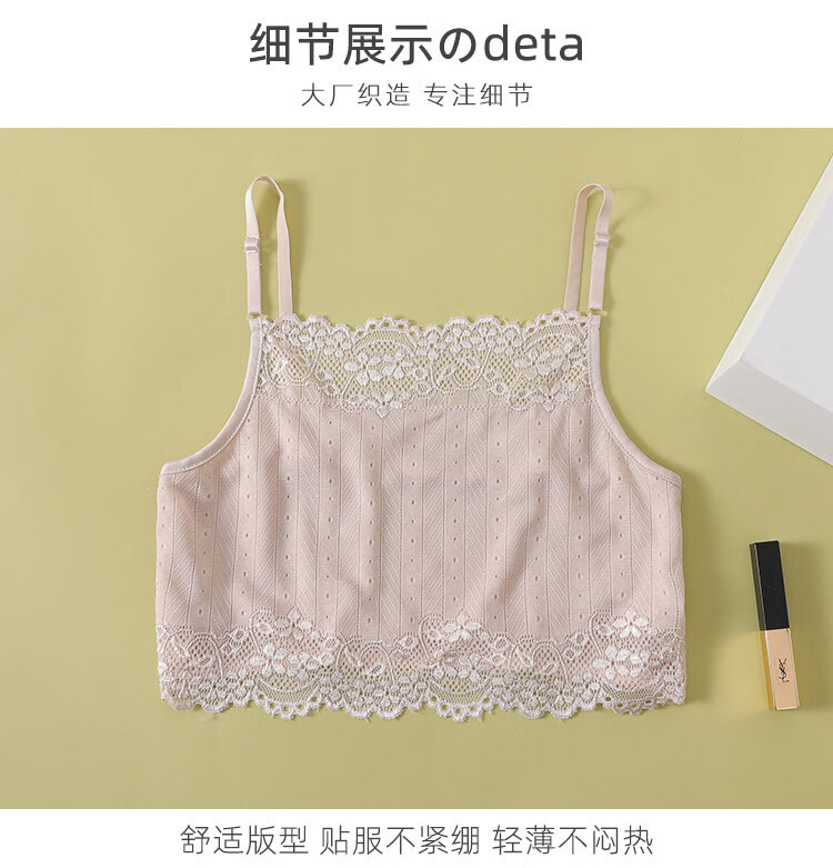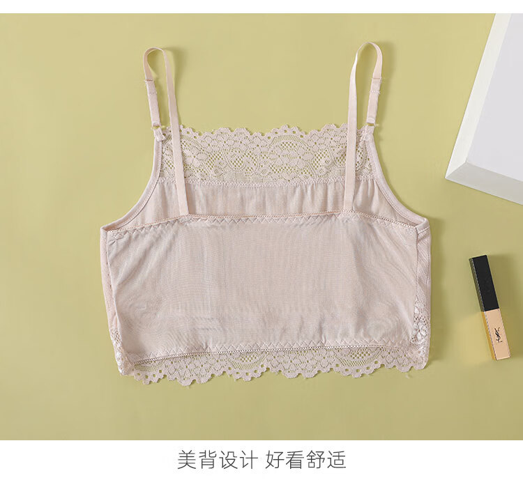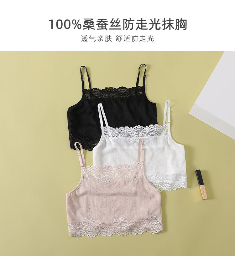 Silk tube top underwear for women, anti-exposure inner vest, sexy lace, black, white, small suspenders, summer, white (vertical stripes) M