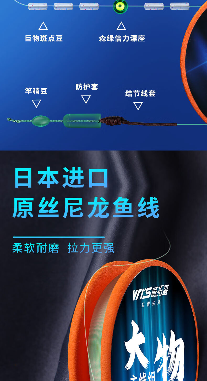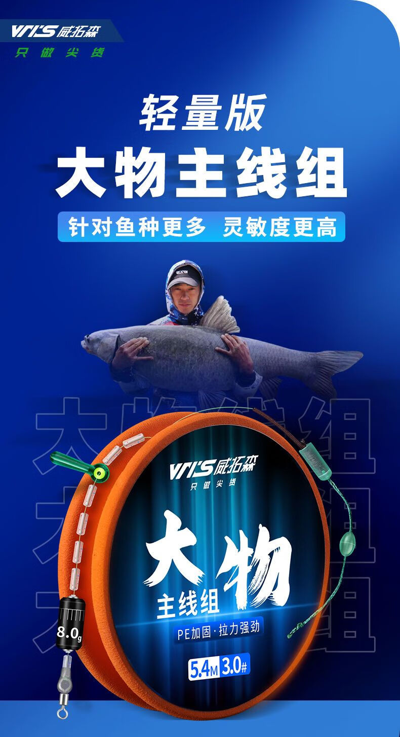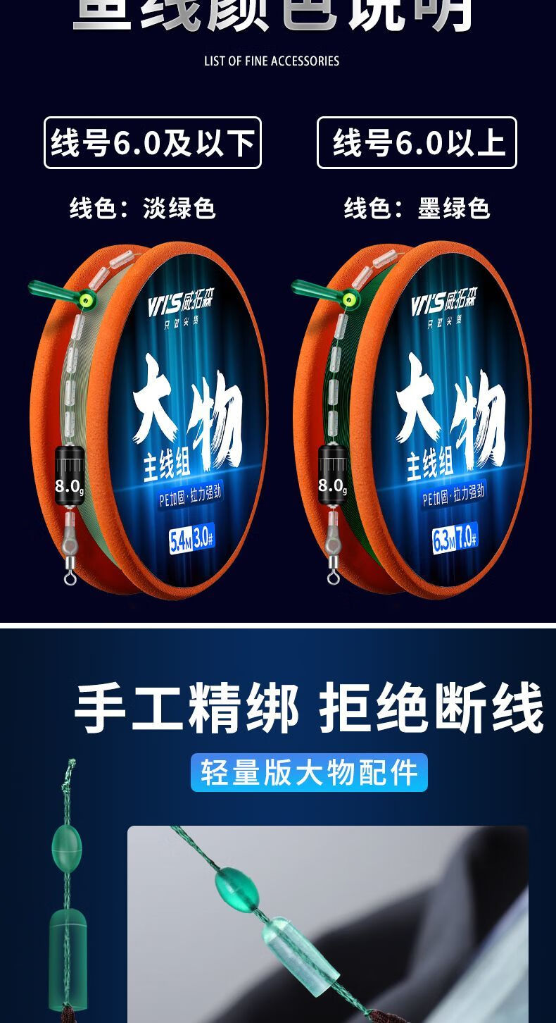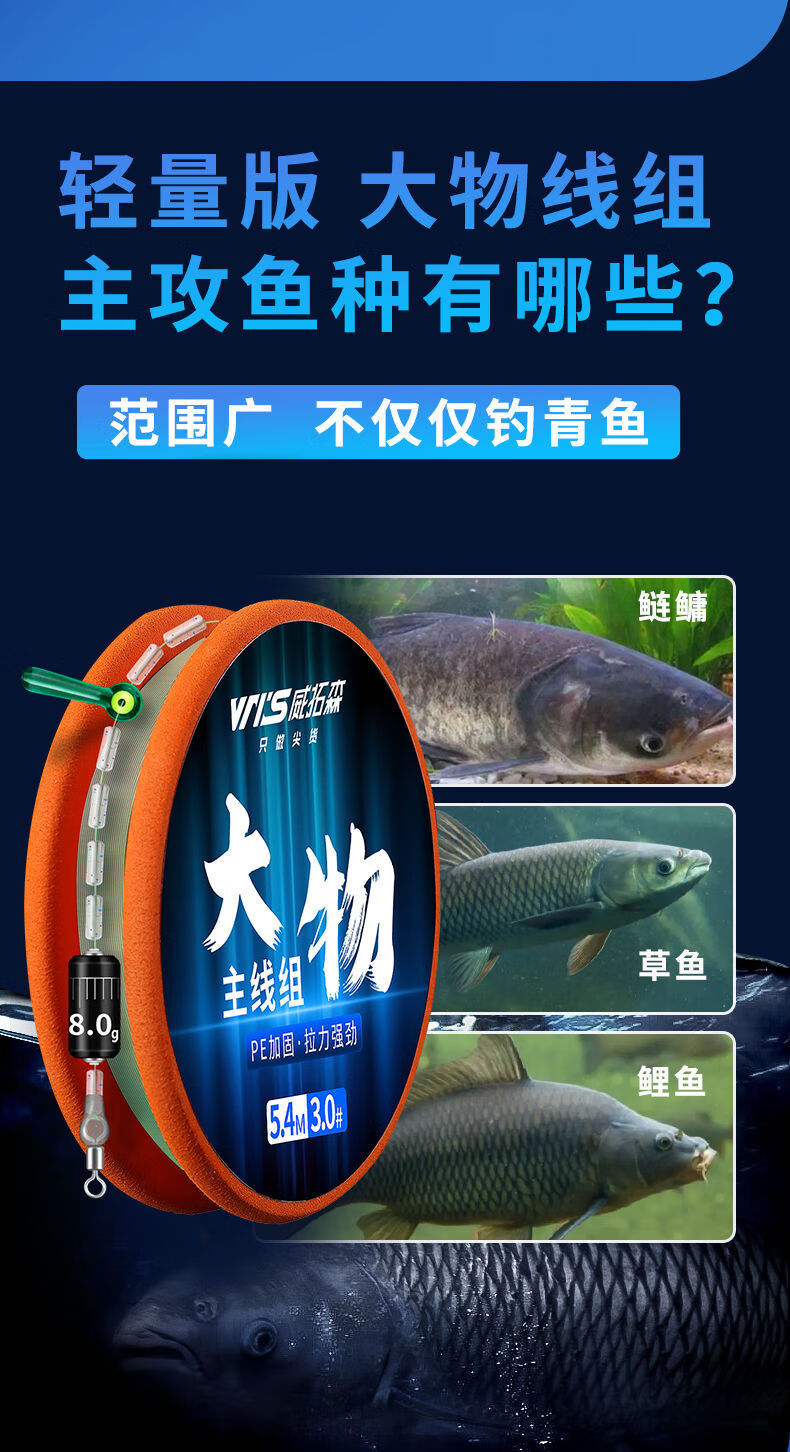 Weituosen large fishing line group fishing main line finished product set complete set of grass carp silver carp and bighead carp giant large fishing line 9 meters 10 meters 9 meters lightweight version more sensitive 3 rolls No. 8