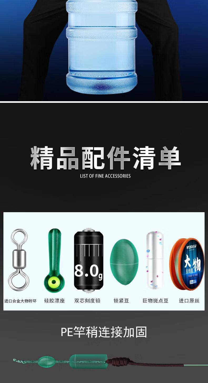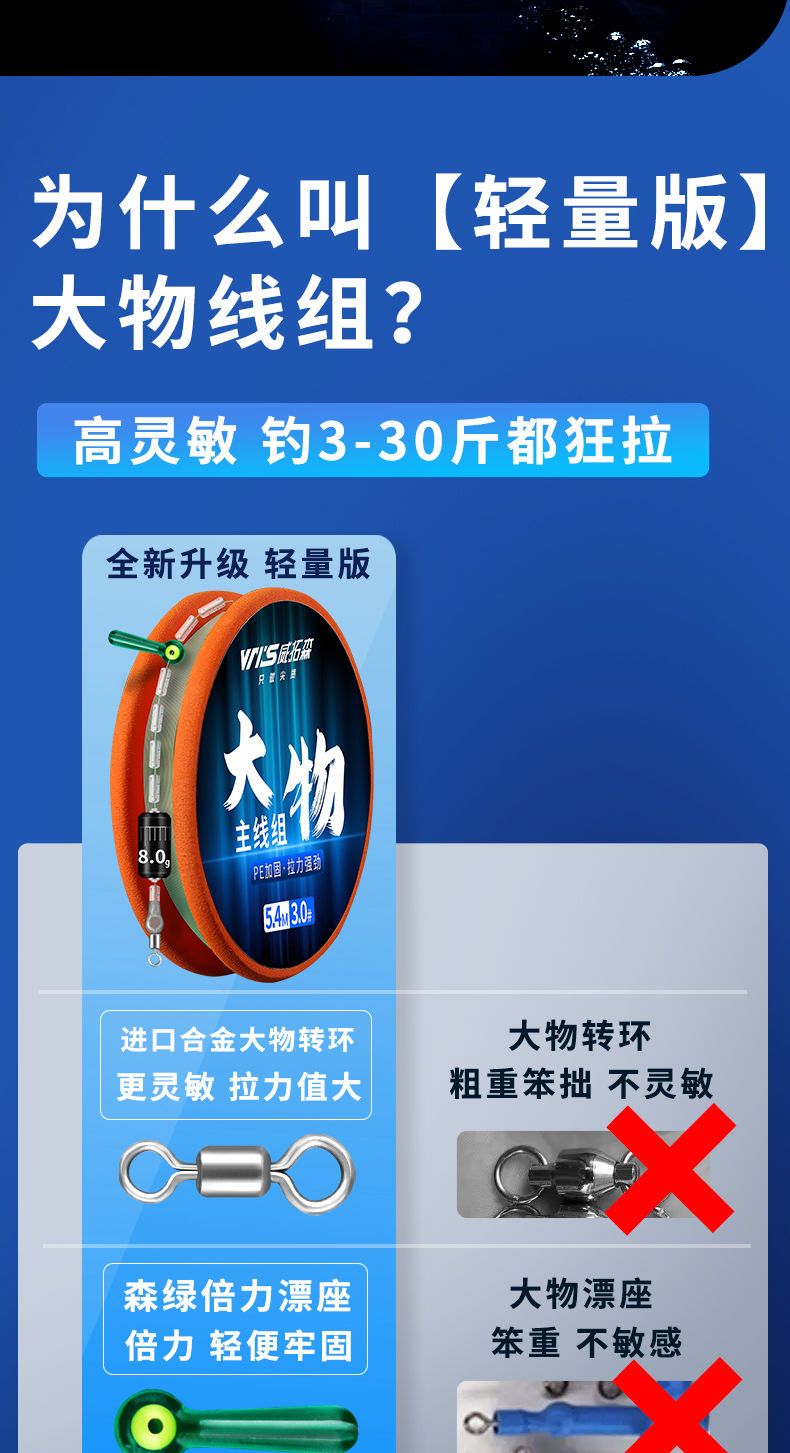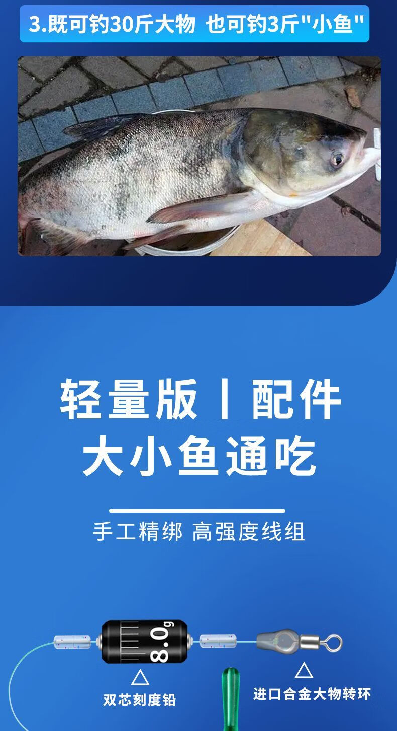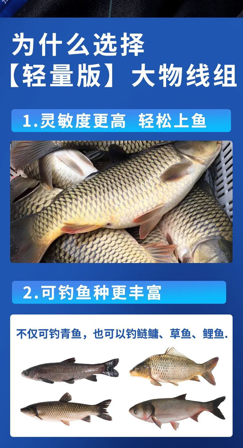 Weituosen large fishing line group fishing main line finished product set complete set of grass carp silver carp and bighead carp giant large fishing line 9 meters 10 meters 9 meters lightweight version more sensitive 3 rolls No. 8