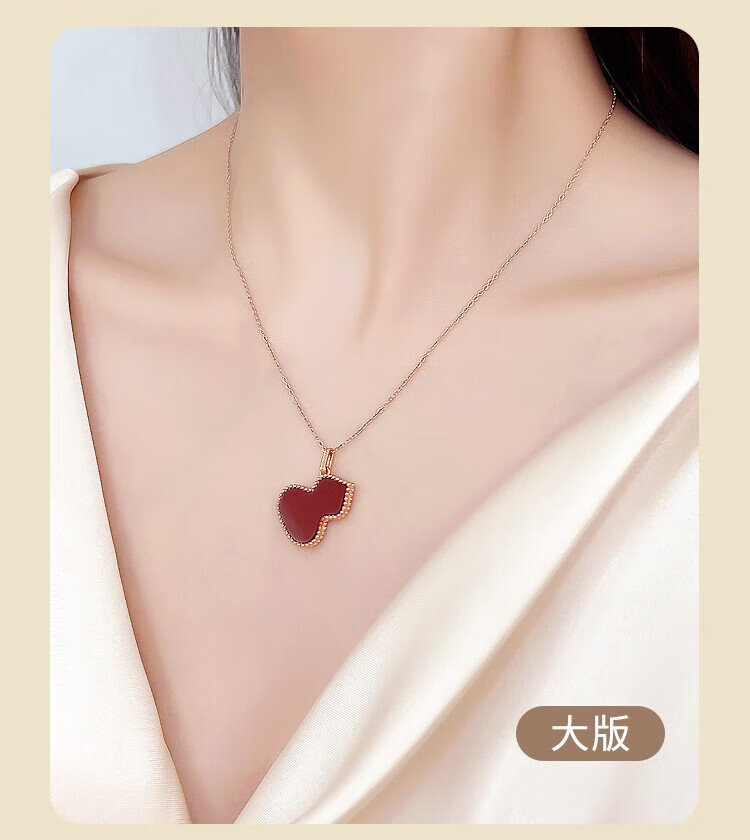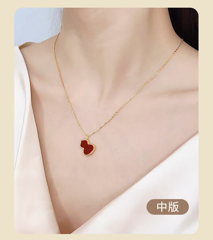 18K gold red agate gourd pendant color gold rose gold gold pendant clavicle chain set chain birthday gift for girls 18K gold gold color (single pendant) medium gourd (red agate)