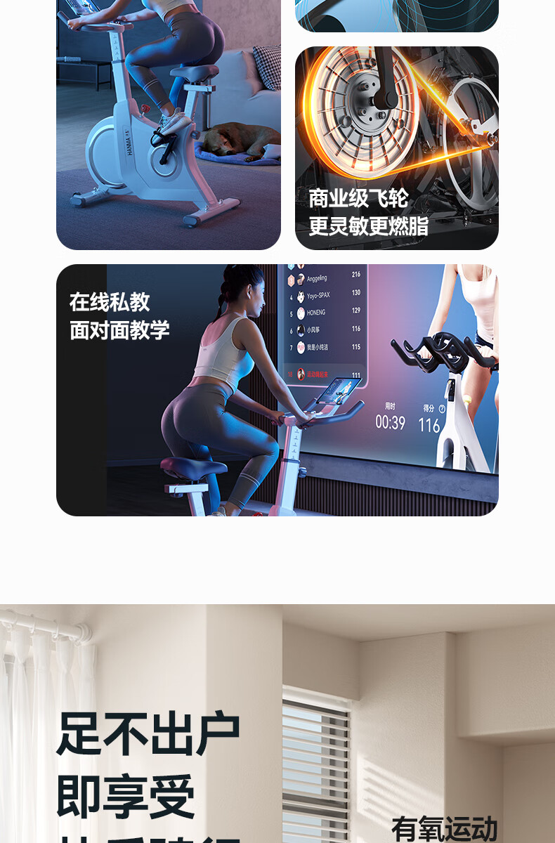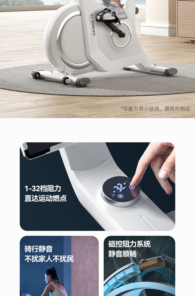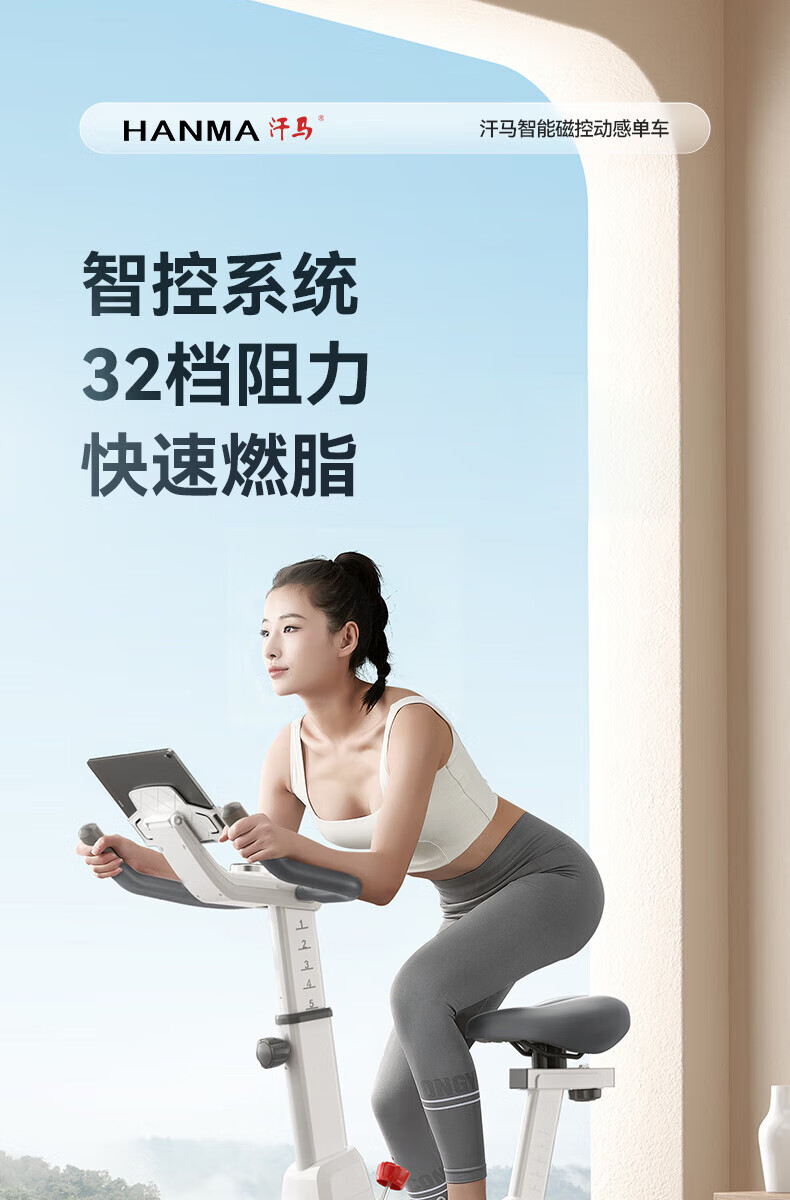 Hanma home spinning magnetically controlled silent intelligent sports weight loss fitness equipment indoor bicycle 32-speed intelligent electronically controlled resistance adjustment + LCD dial + personal fat burning course