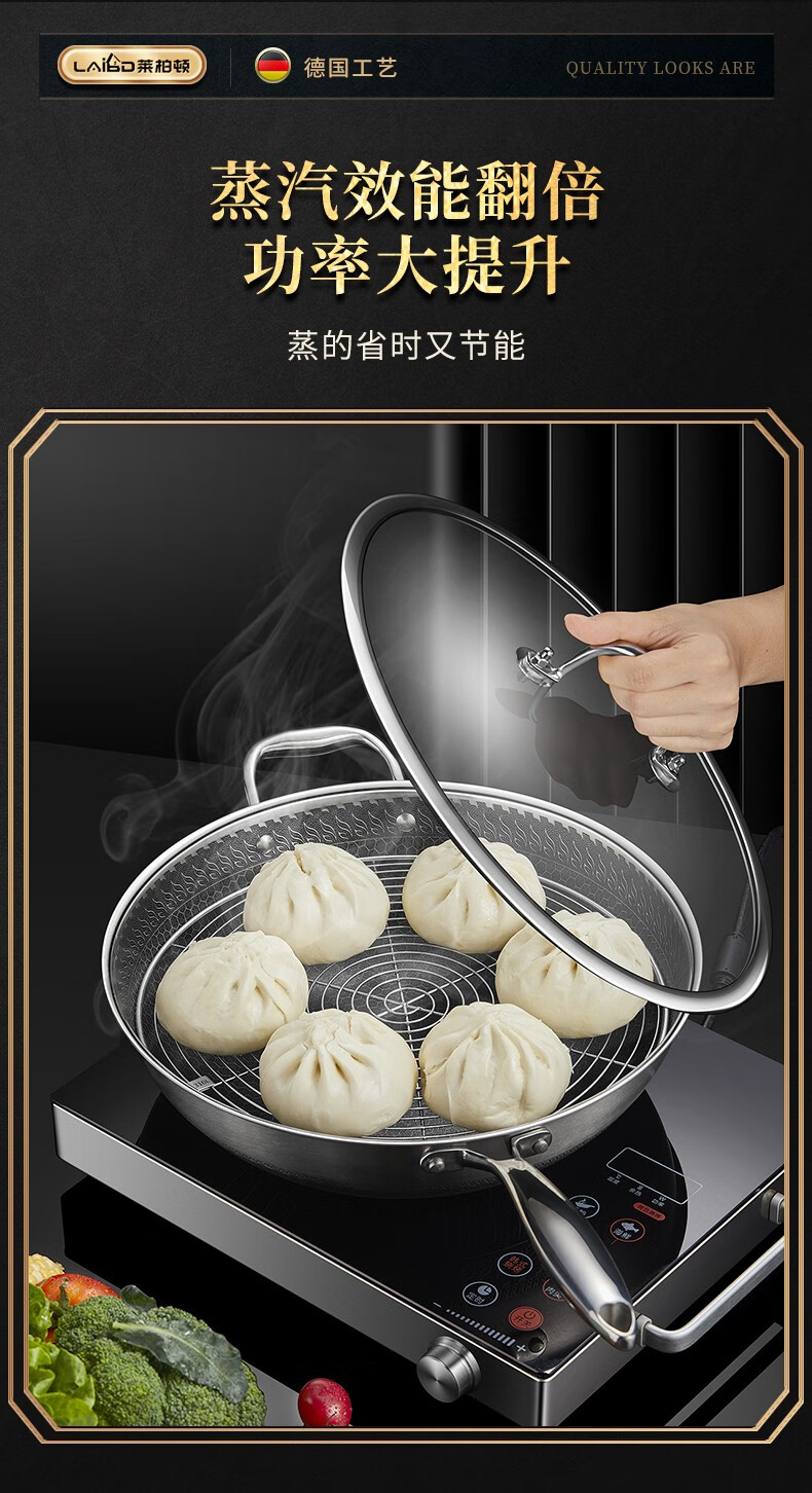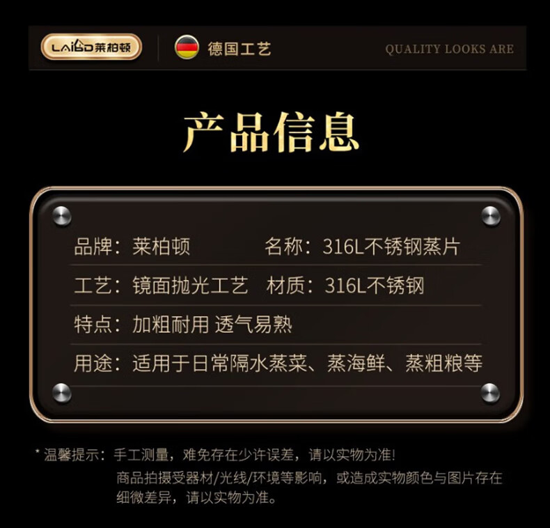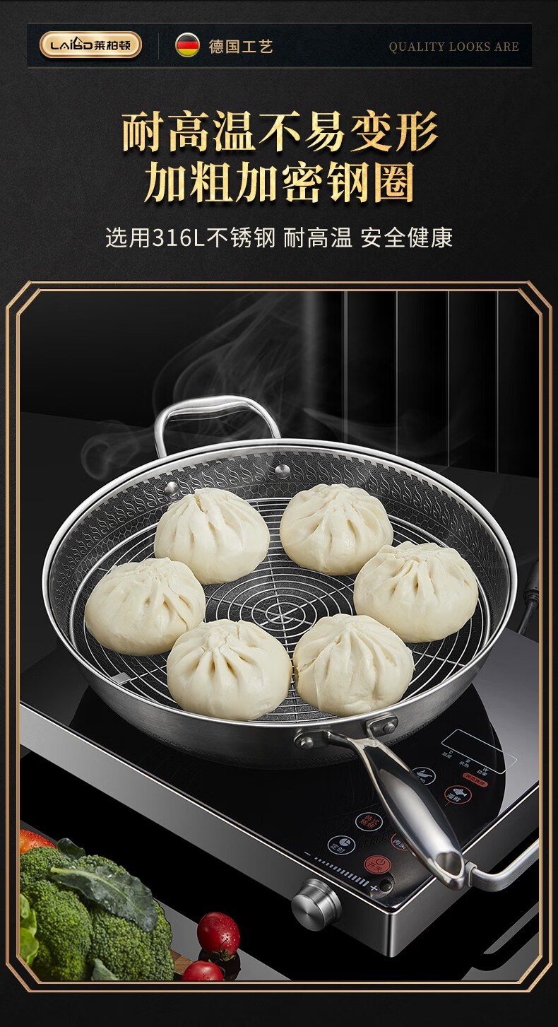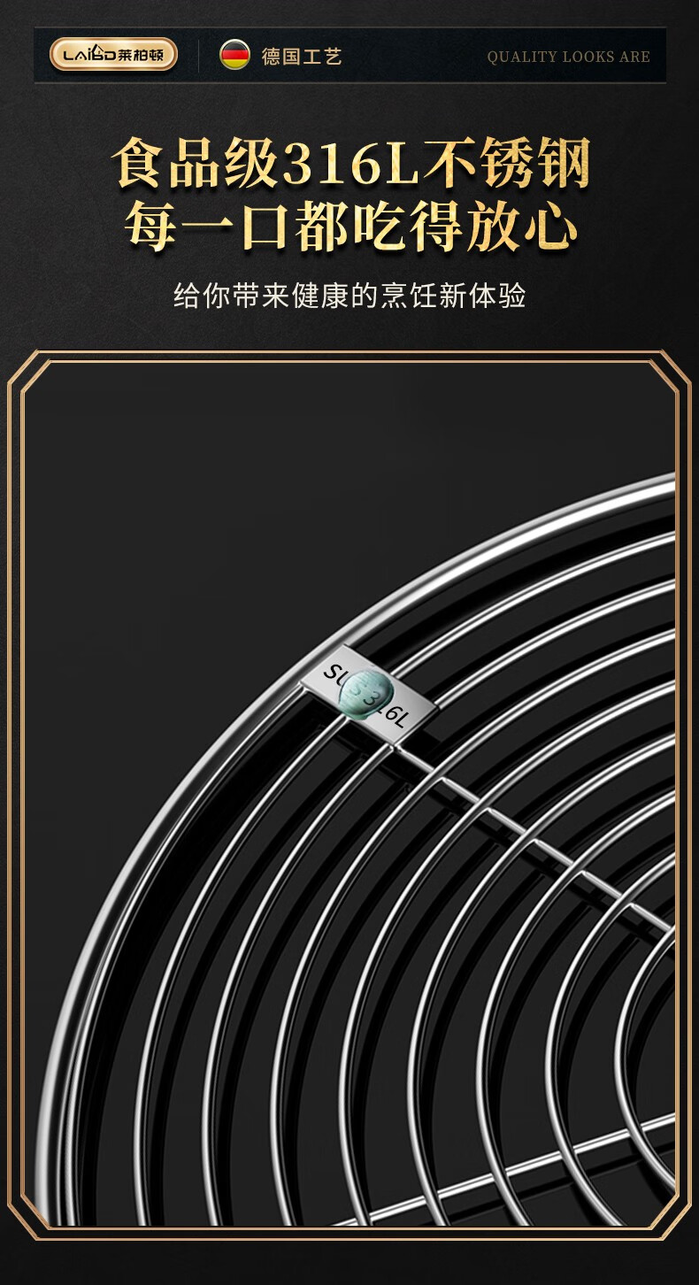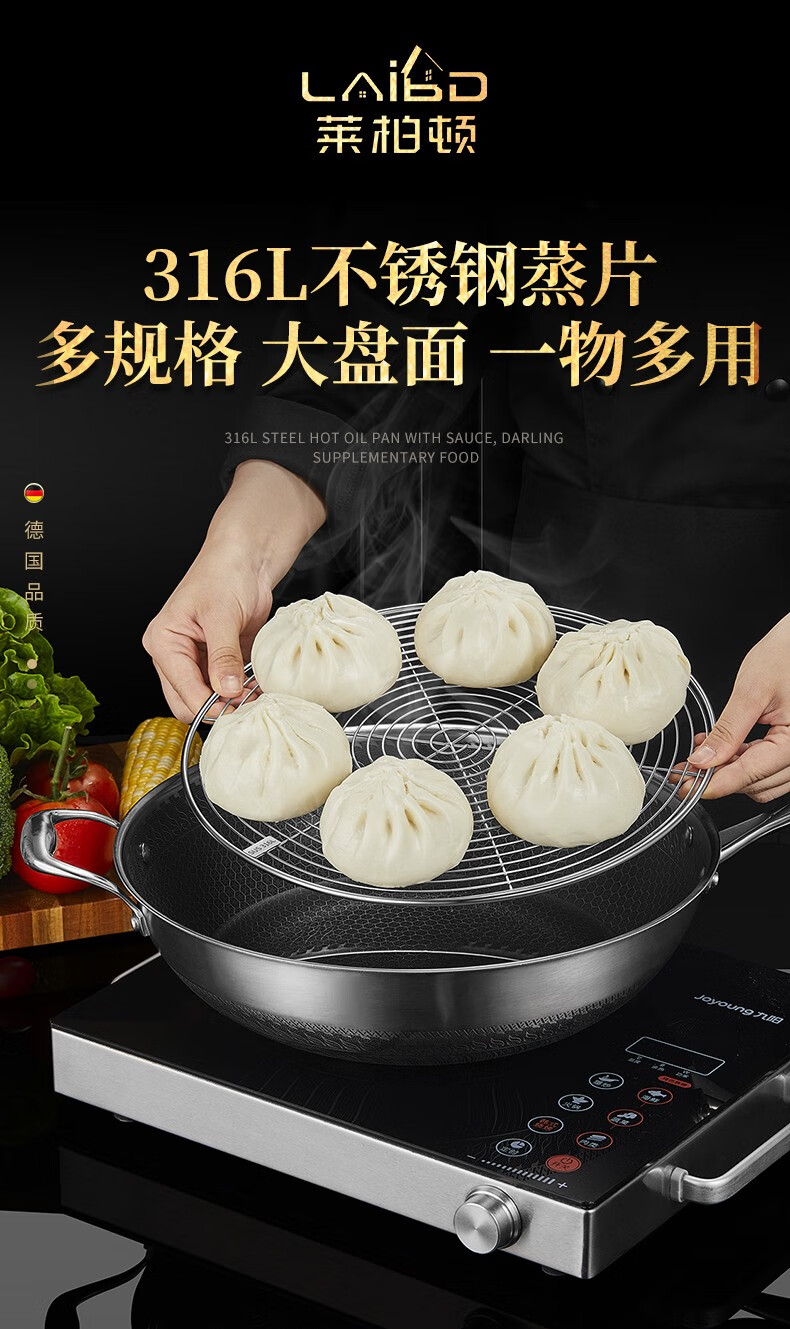 Labton food grade 316L stainless steel steaming tray, steaming vegetable steaming tray, round household grate steaming rack, thickened steaming sheet, steaming grid, steaming grate, diameter 26cm, 316L stainless steel steaming sheet