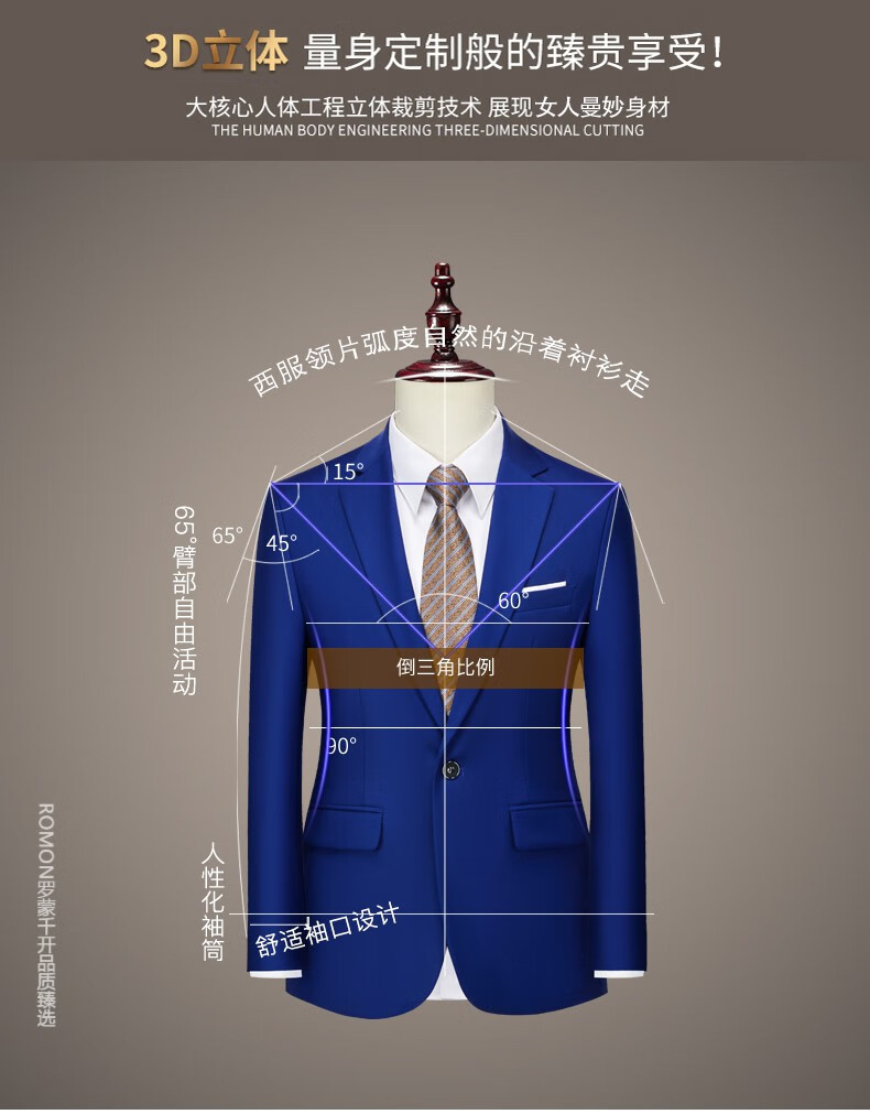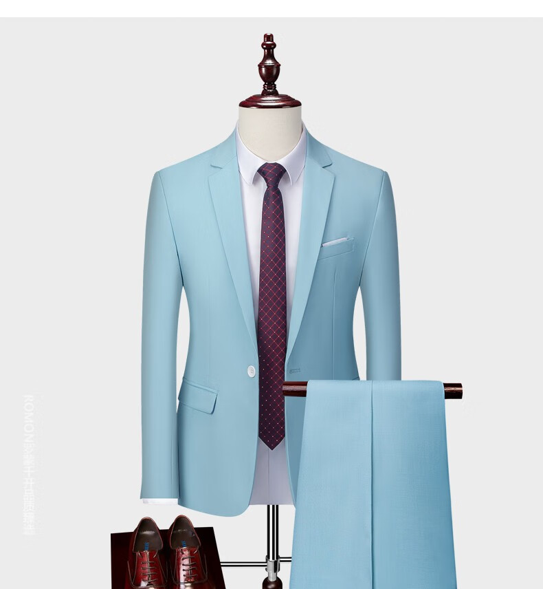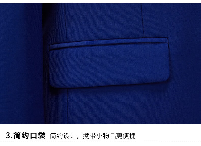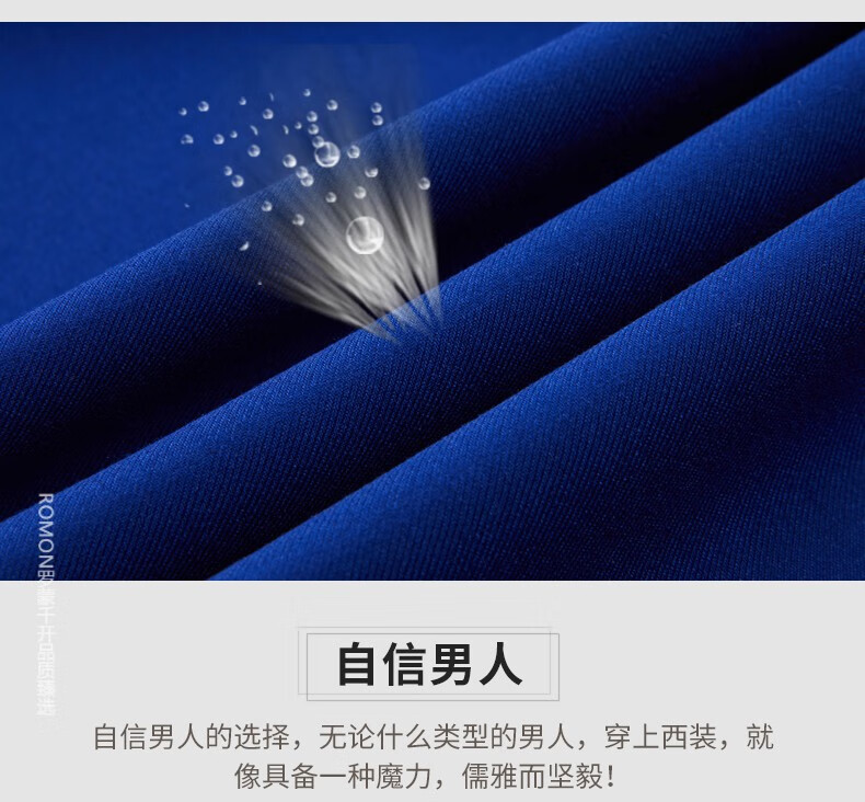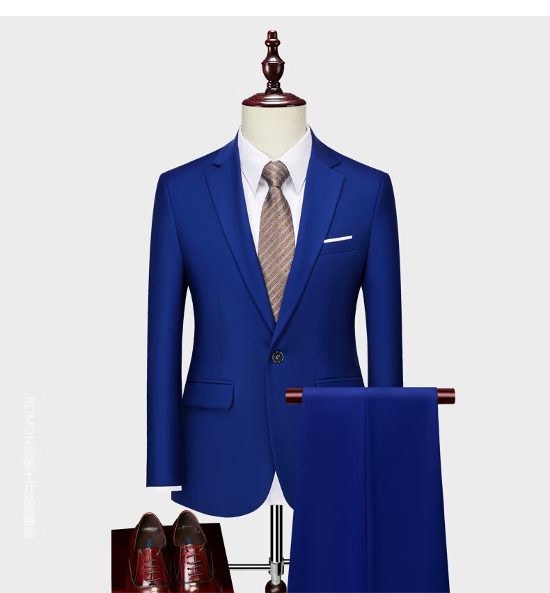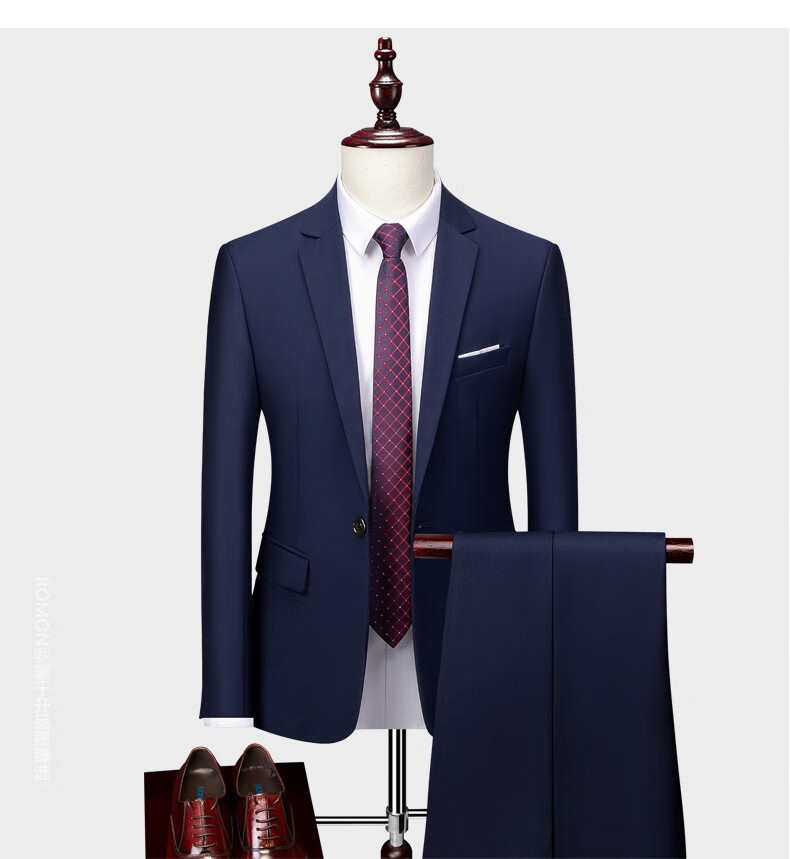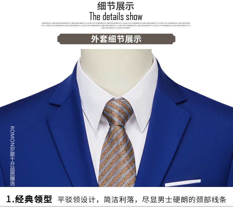 ROMON men's suit casual suit groom formal suit groomsman male business wedding suit interview engagement sapphire blue XL