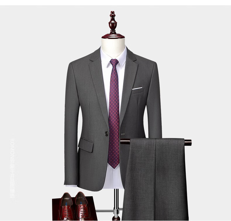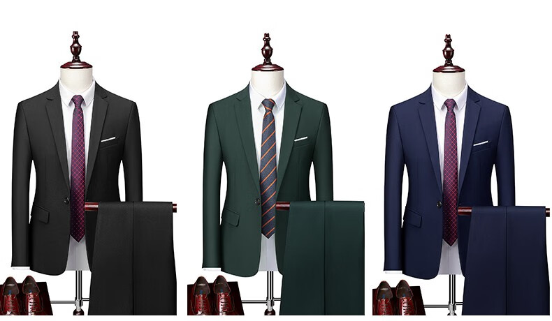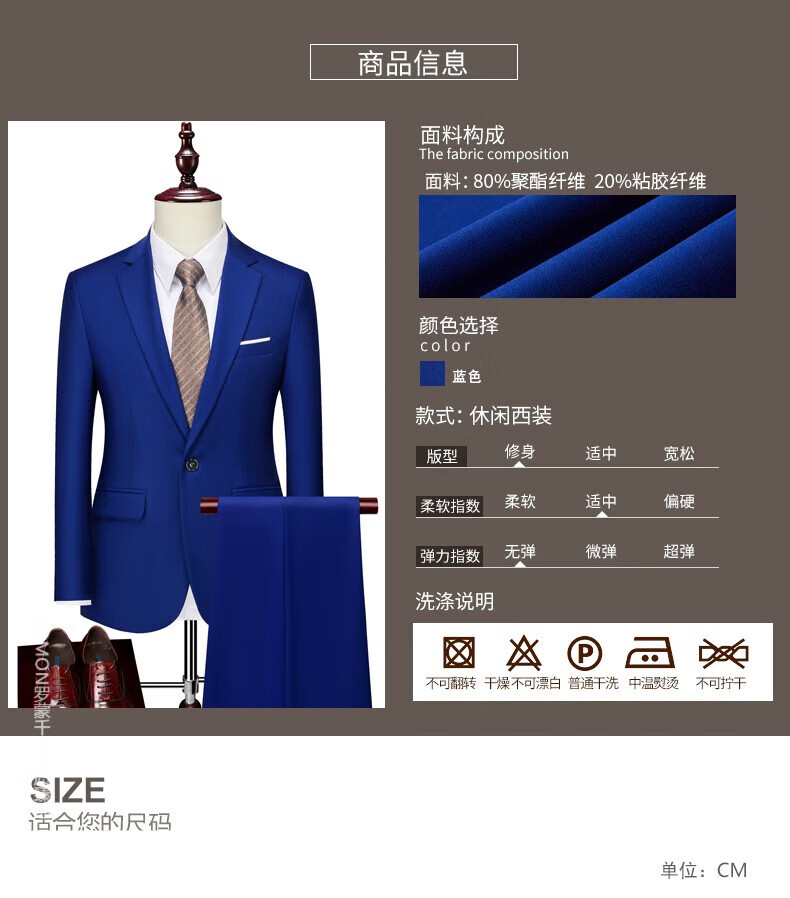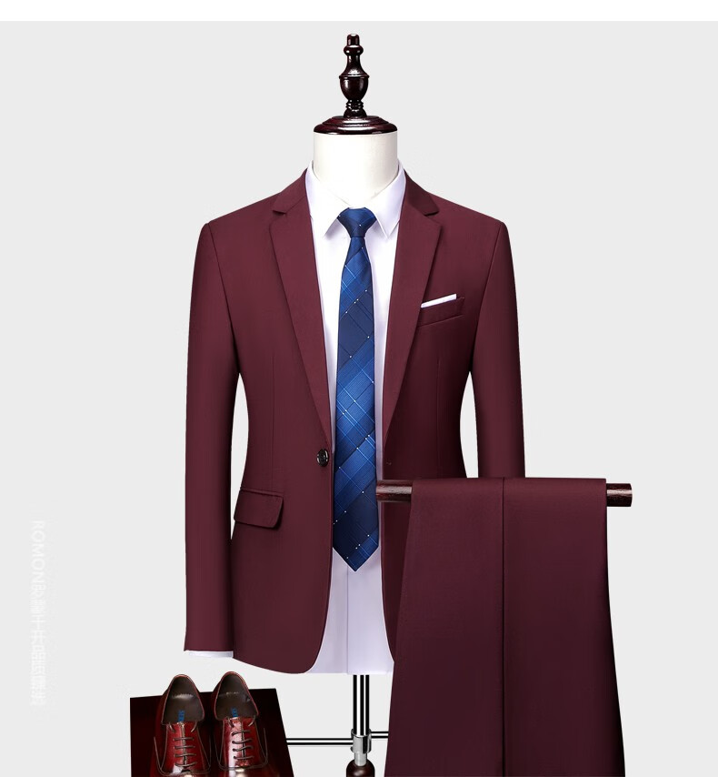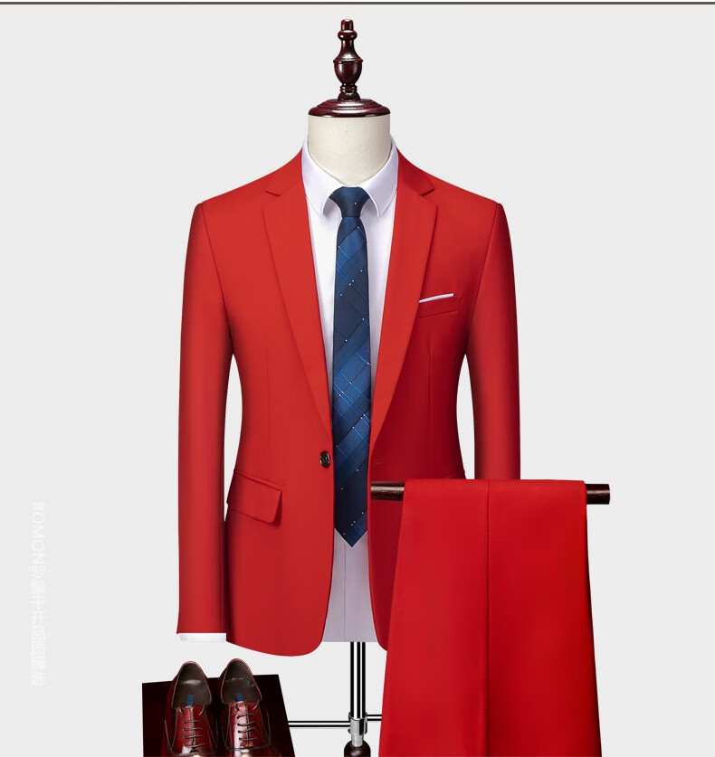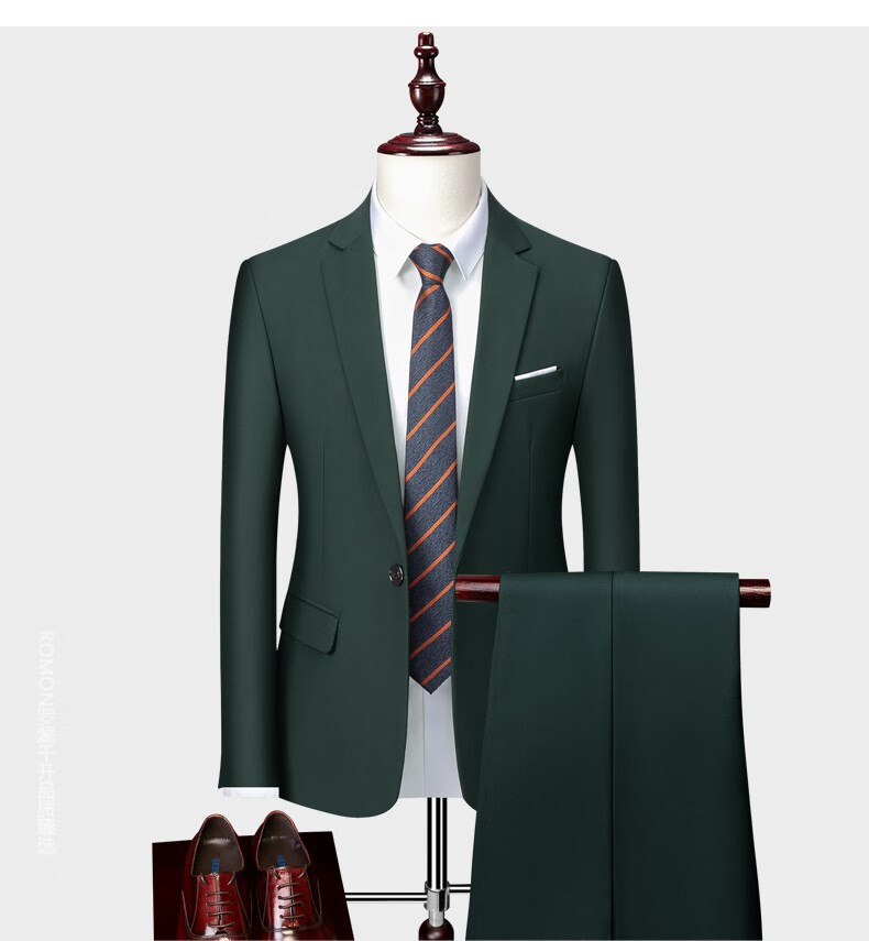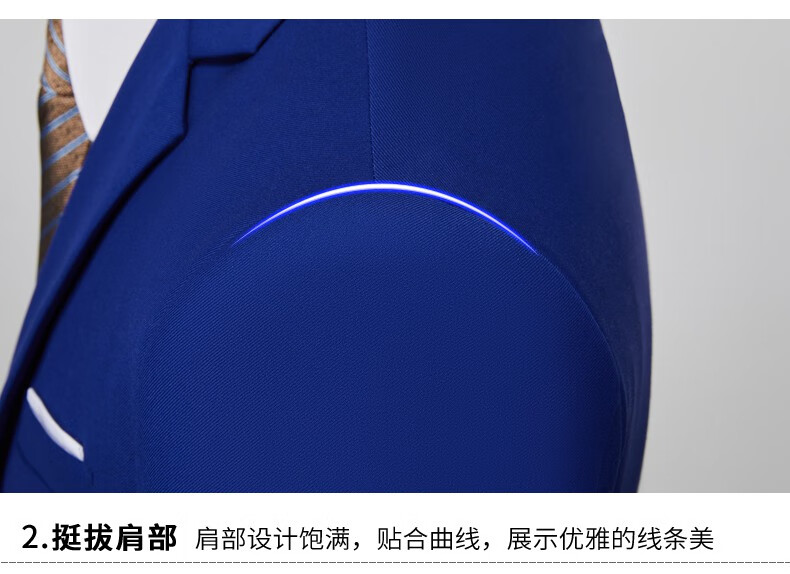 ROMON men's suit casual suit groom formal suit groomsman male business wedding suit interview engagement sapphire blue XL