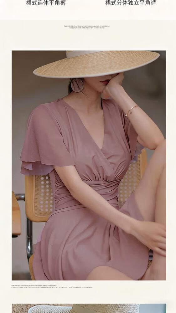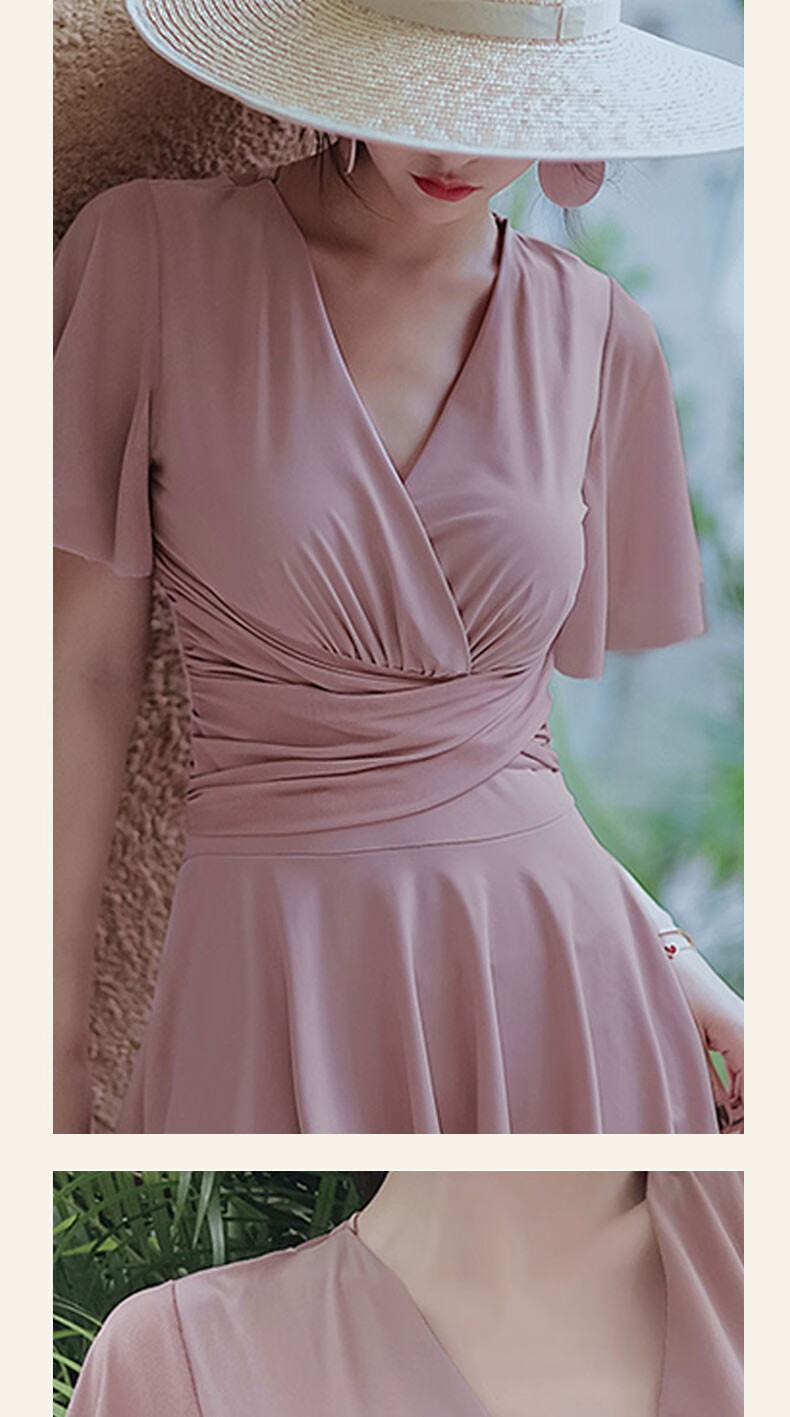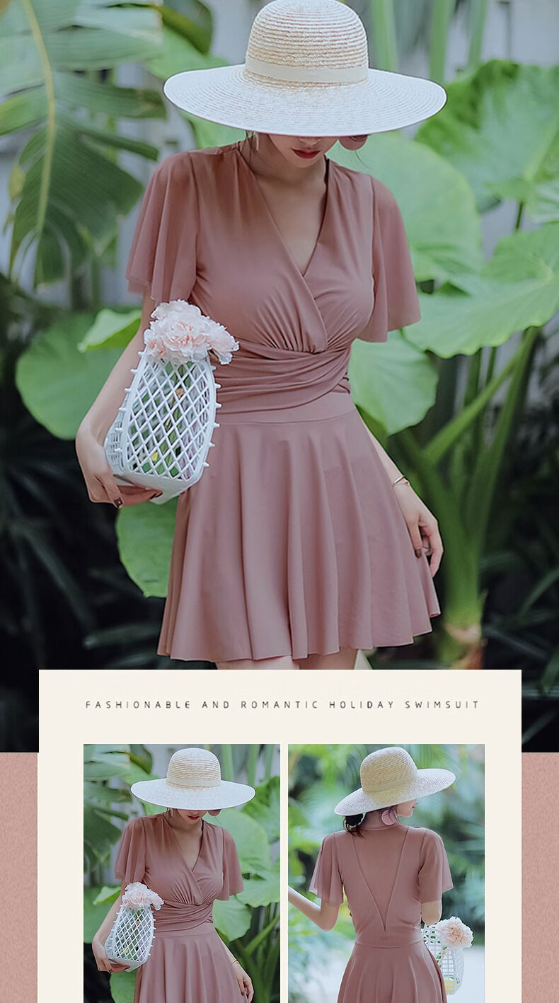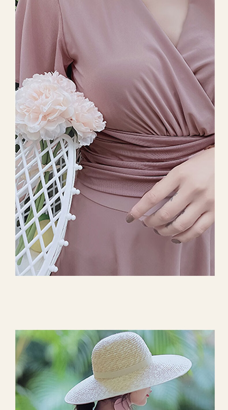 Bo Na Ling Swimsuit Women's Summer Swimsuit Skirt Style Small Breast Conservative Cover Belly Large Size Slim Hot Spring Beach Beach Vacation Fat Girl Plus Size Swimsuit Bean Paste Powder 100-150 Jin Jin is equal to 0.5 kg