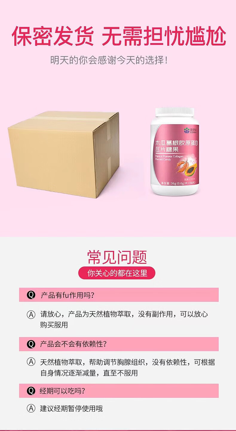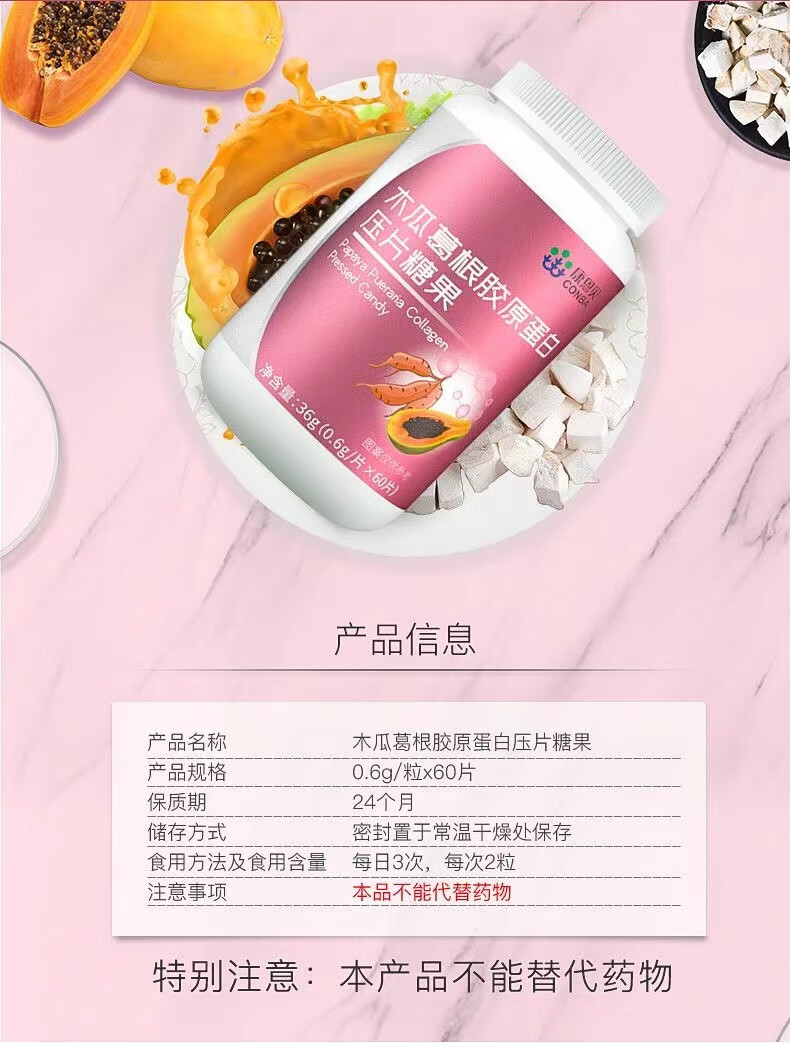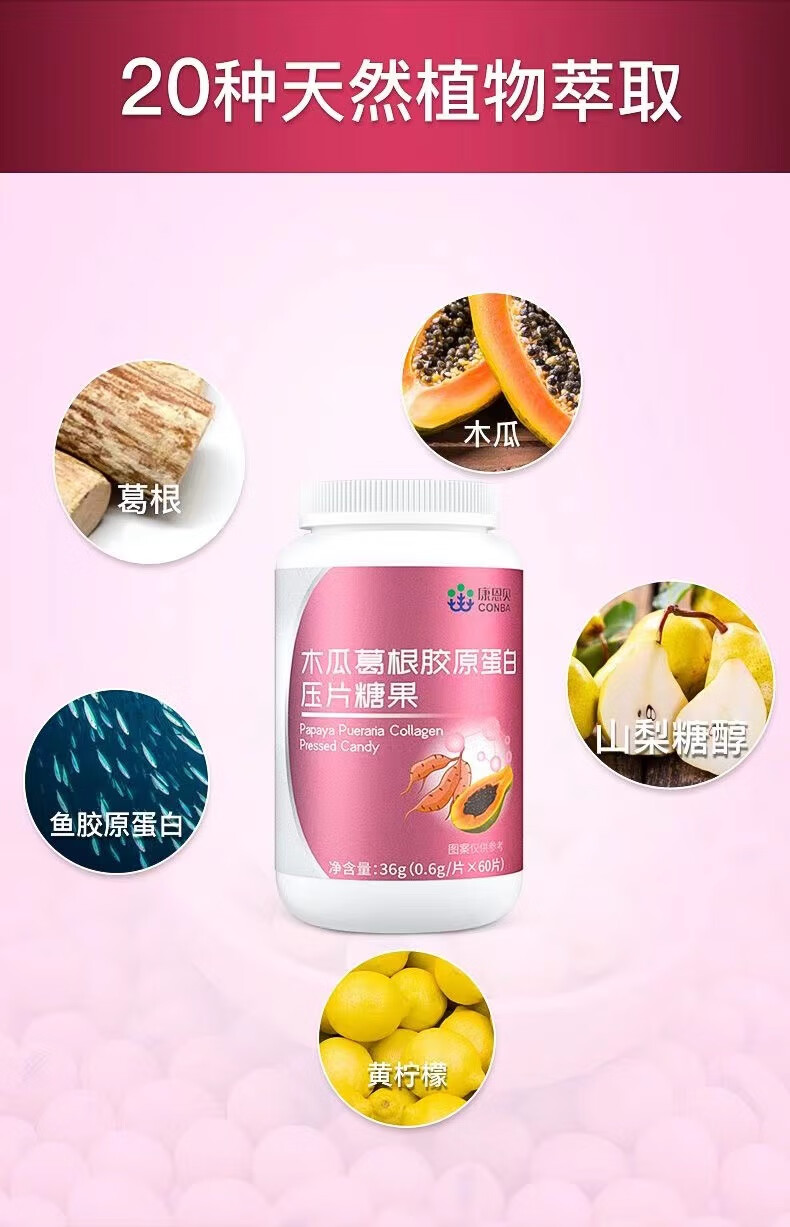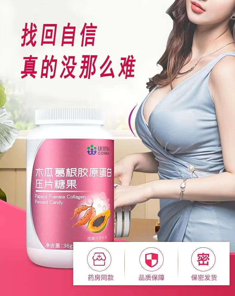 Directly sold by Conba Pharmacy, 60 capsules of papaya and kudzu root tablets containing collagen, women's curves, non-papaya and kudzu root powder, double peak sprint, 3 bottles of Fengzi