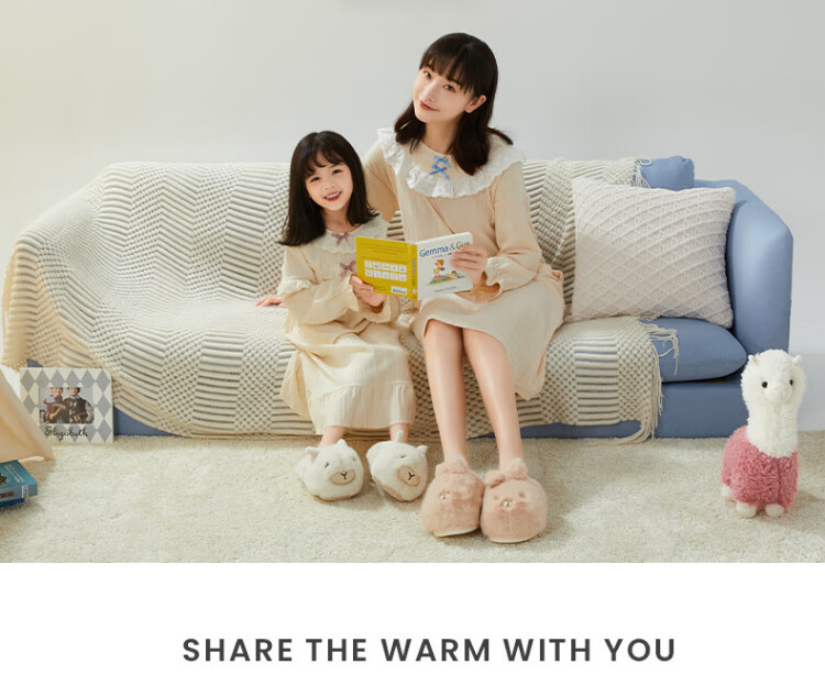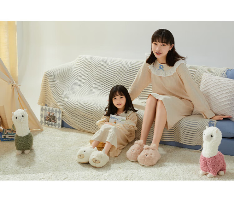 Puxi Puxi children's cotton slippers baby cotton shoes autumn and winter new cotton slippers boys and girls indoor cute warm plus velvet card alpaca coral pink 15 0 suitable for feet length 13.5cm