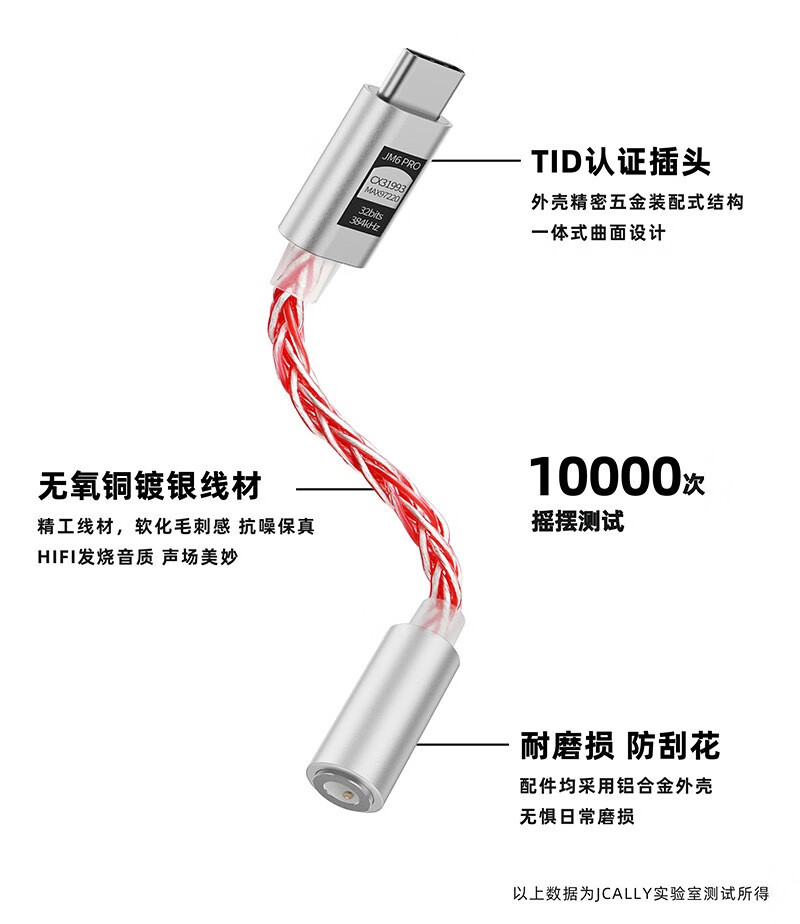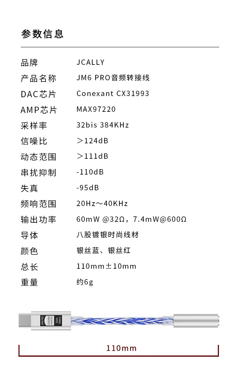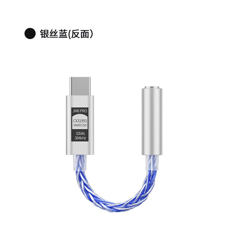 JCALLY JM6 Pro decoder amp small tail hifi digital audio typec adapter cable DAC mobile phone headphone accessories adapter dual chip CX31993+MAX97220 JM6 PRO silver blue (dual-core Type-C interface)
