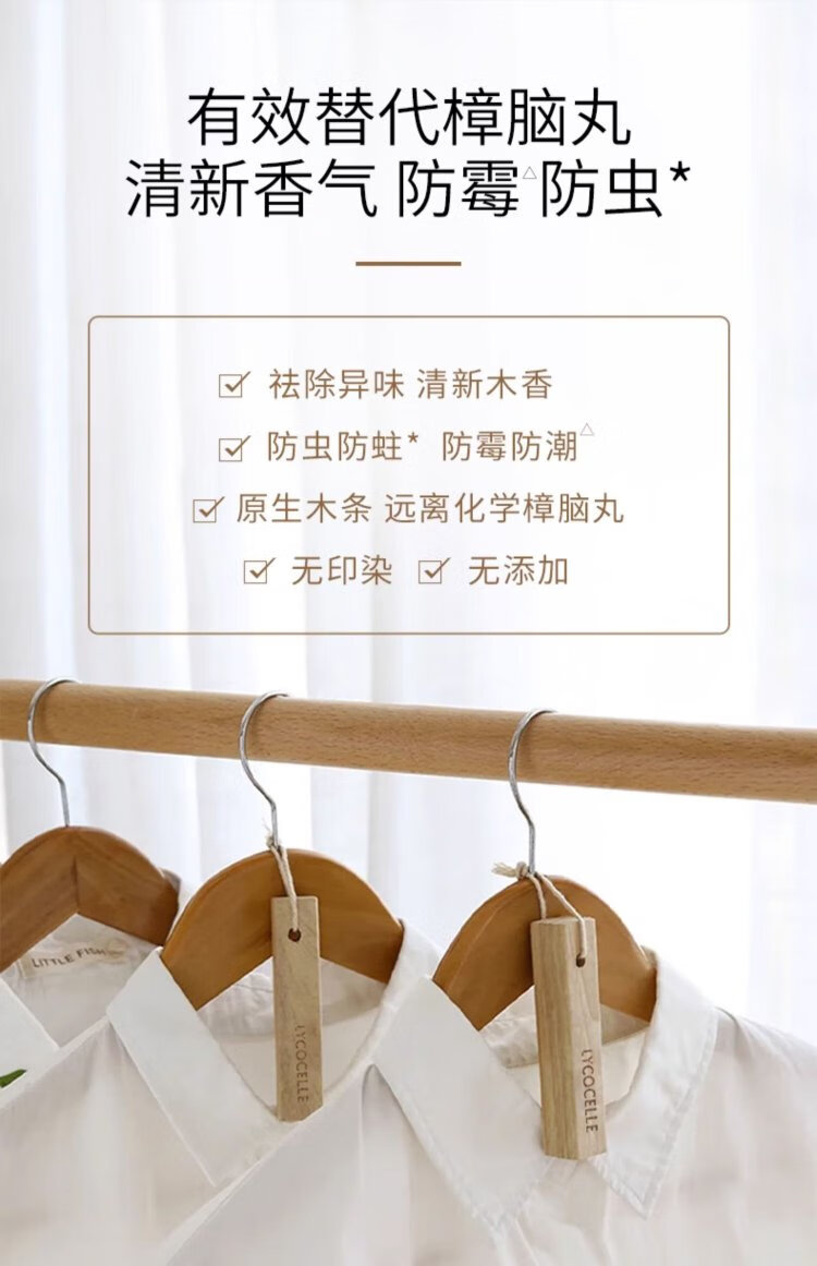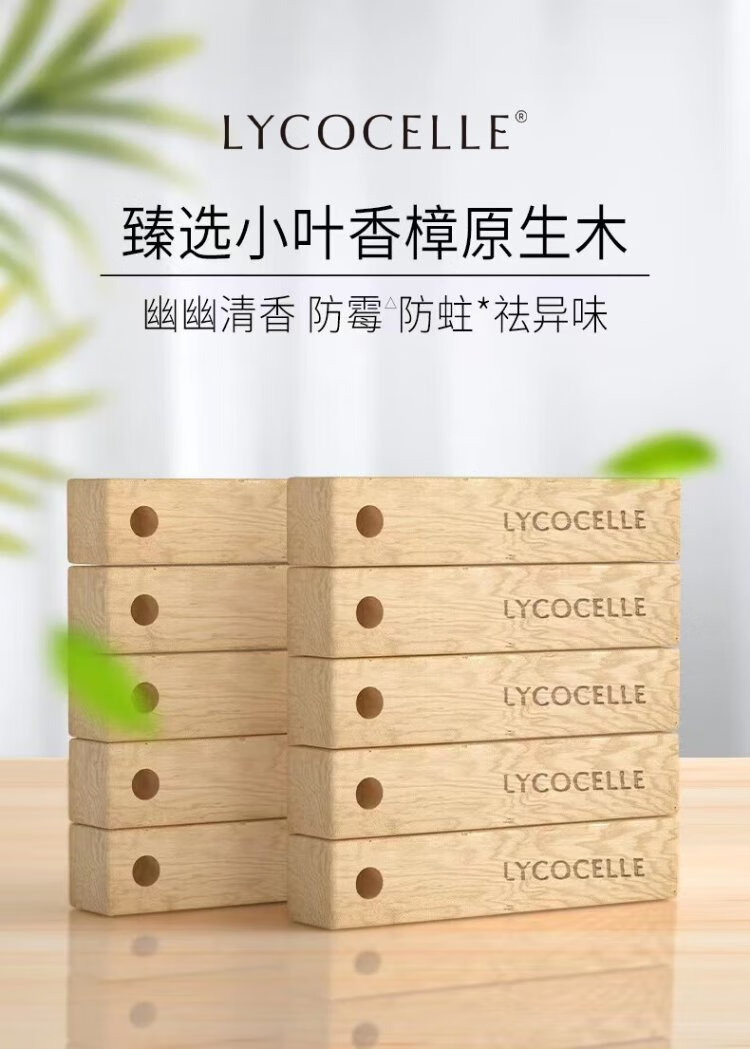 LYCOCELLE camphor wood strips are mildew-proof, insect-proof, moth-proof and odor-removing small-leaf camphor original woody fragrance household wardrobe insect repellent 5 tablets 2 packs