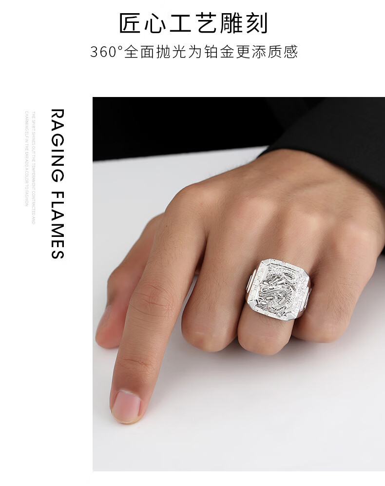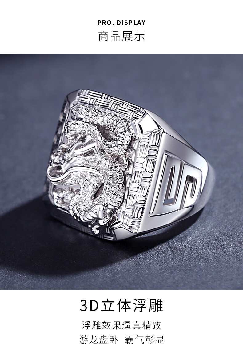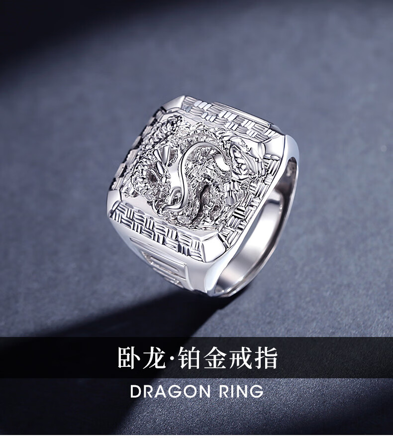 Aido Diamond pt950 men's platinum ring wide ring platinum domineering live mouth Wolong ring weight 24.8-25.0g