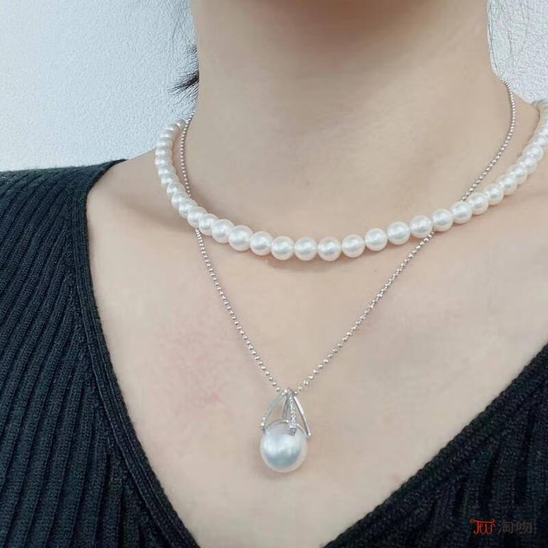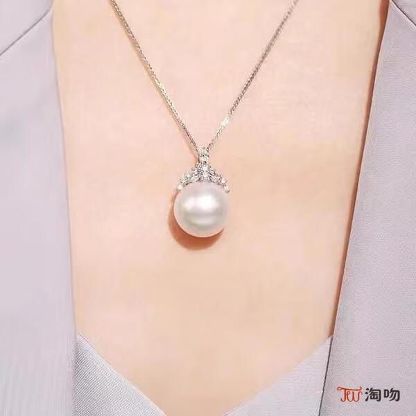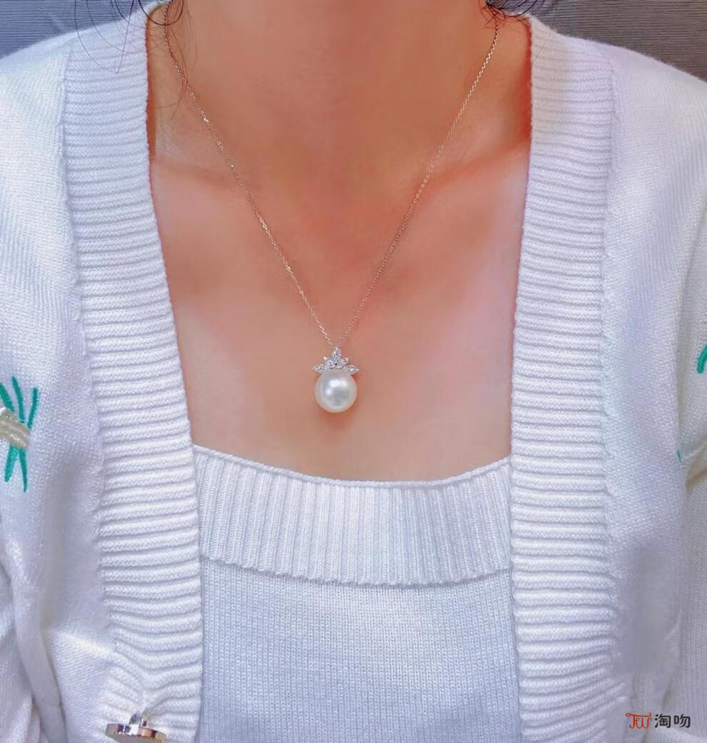 Taoki single large natural freshwater pearl pendant for women Australian white necklace universal buckle silver sweater chain fashion light luxury niche Australian white cold light ice and snow queen style pearl and shell bead pendant