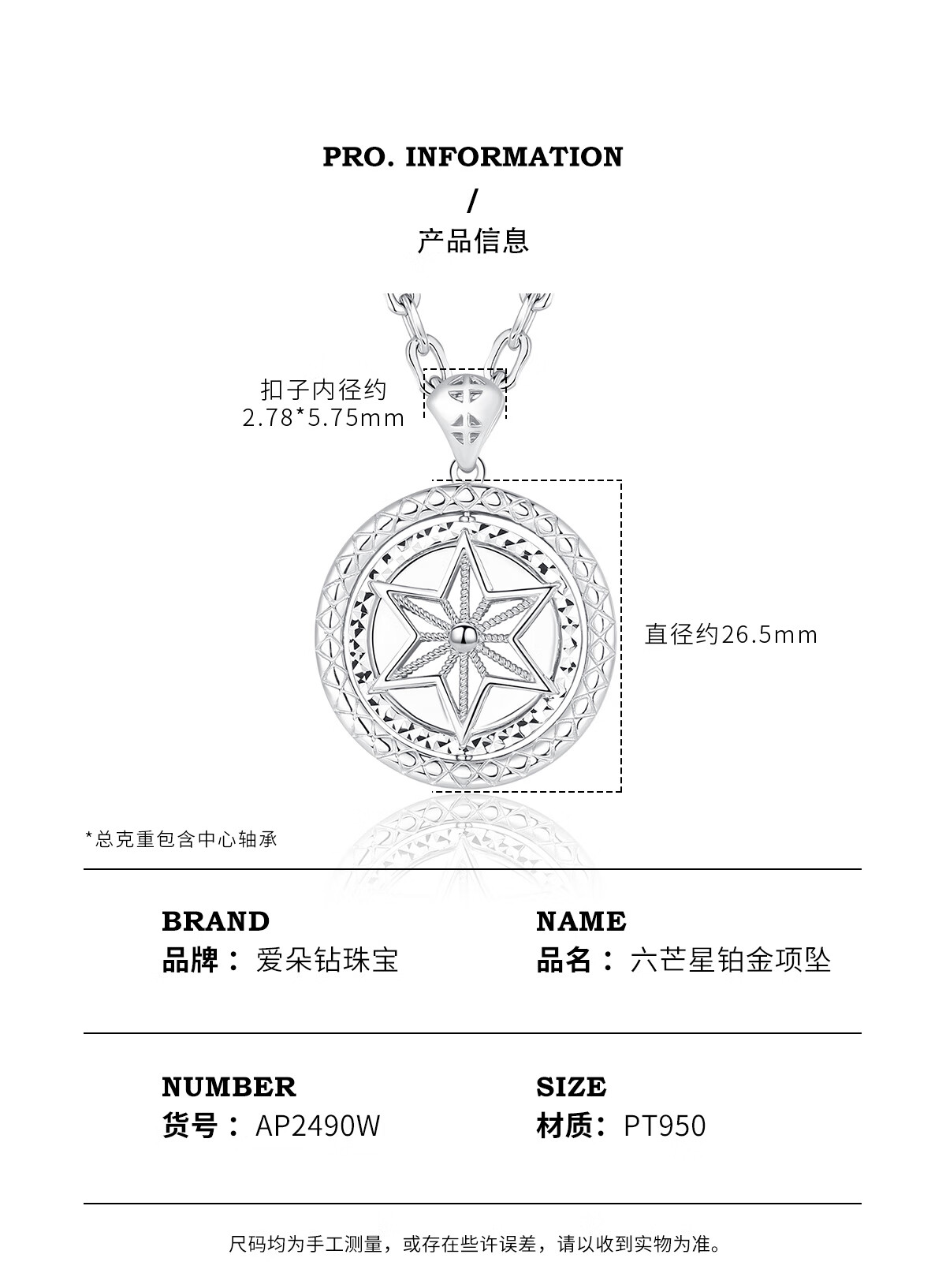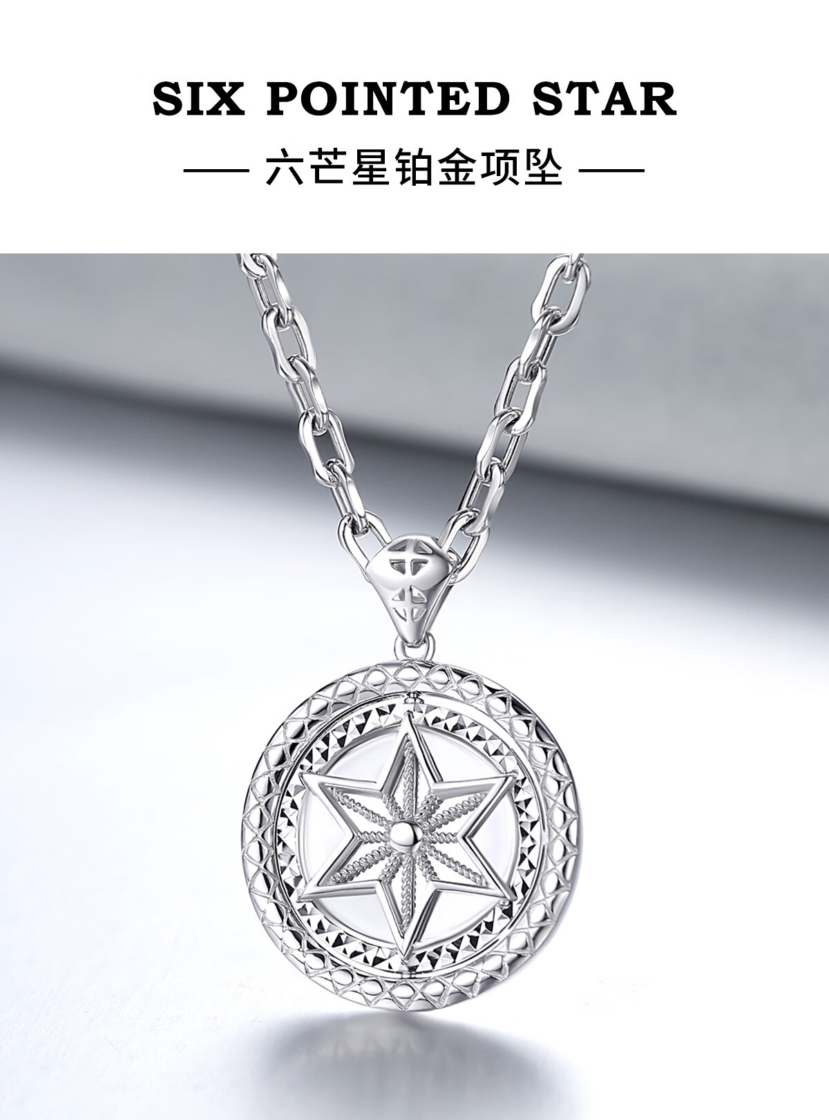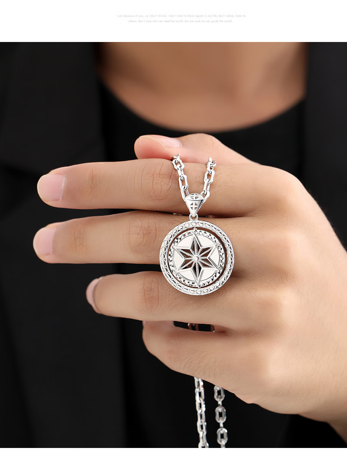 Aido Diamond platinum six-pointed star pendant pt950 platinum fashionable men's necklace can be rotated, weight 16.6-16.8 grams + delivery black leather rope