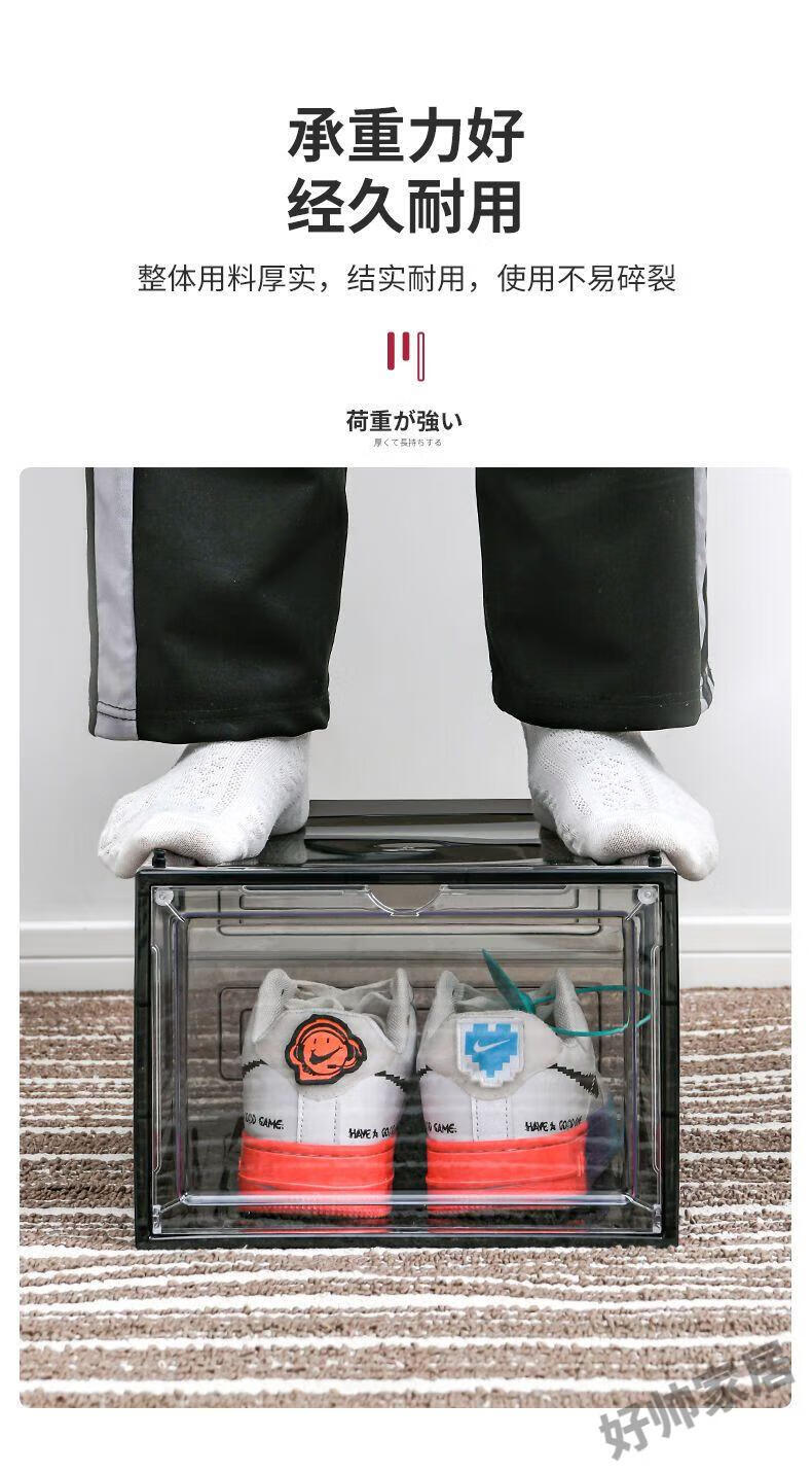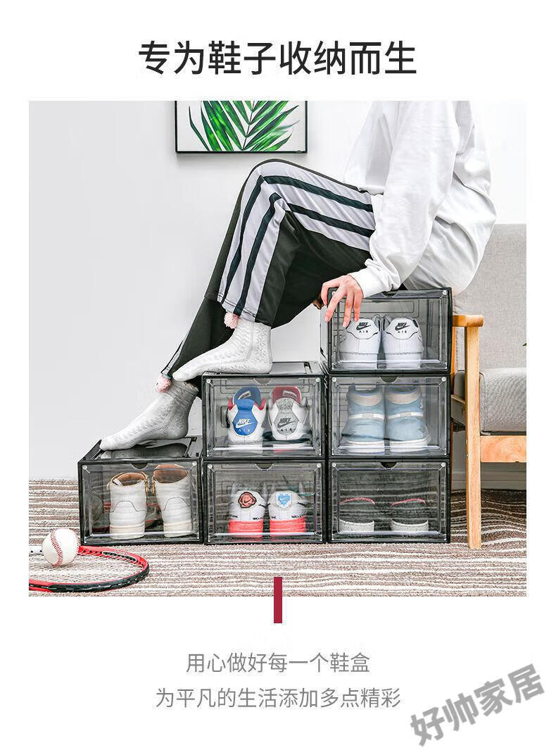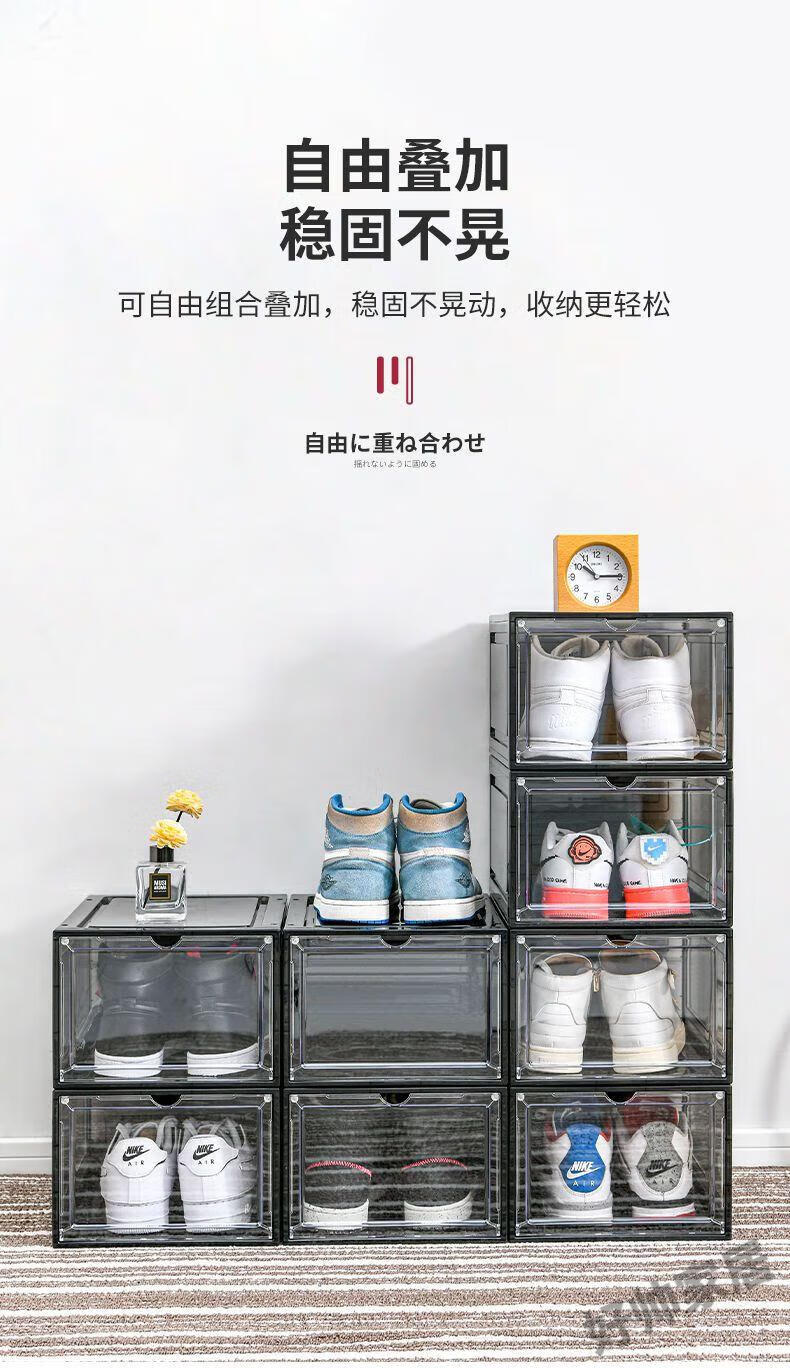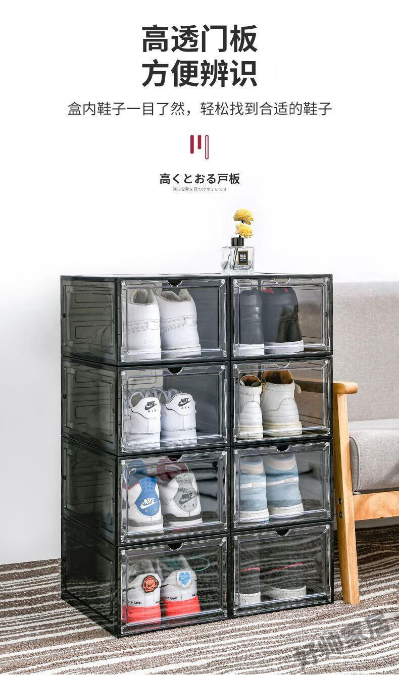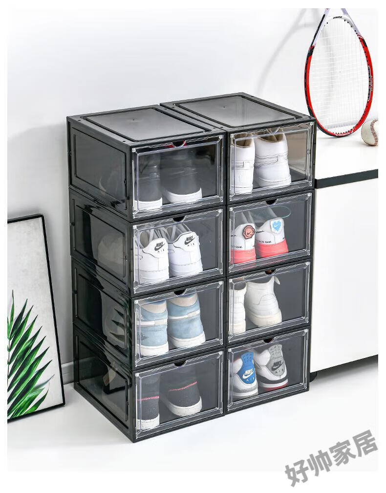 Meikejie magnetic hard plastic transparent drawer-type shoe box shoe storage box dormitory artifact space-saving shoe rack shoe cabinet separate transparent black four pack (free combination of independent shoe boxes) side door large magnetic suction 46 size high-top shoes