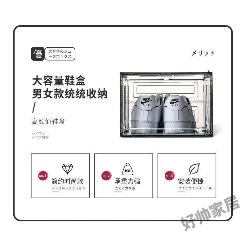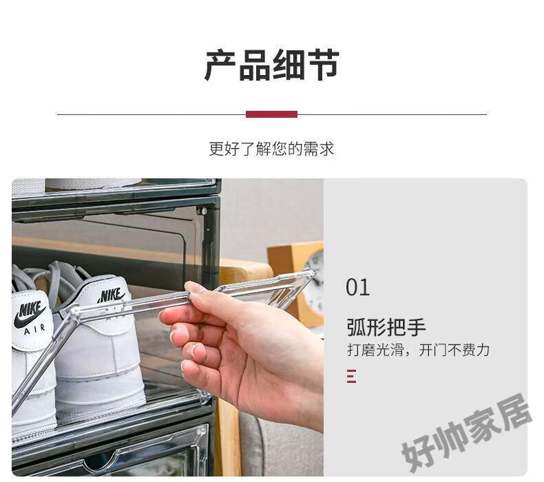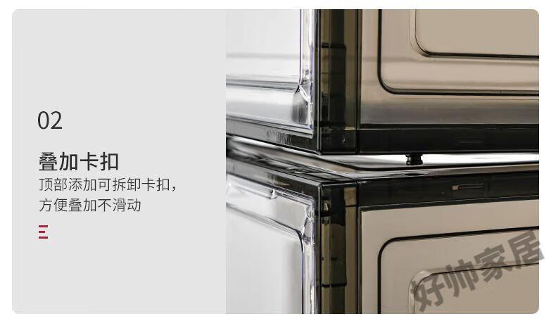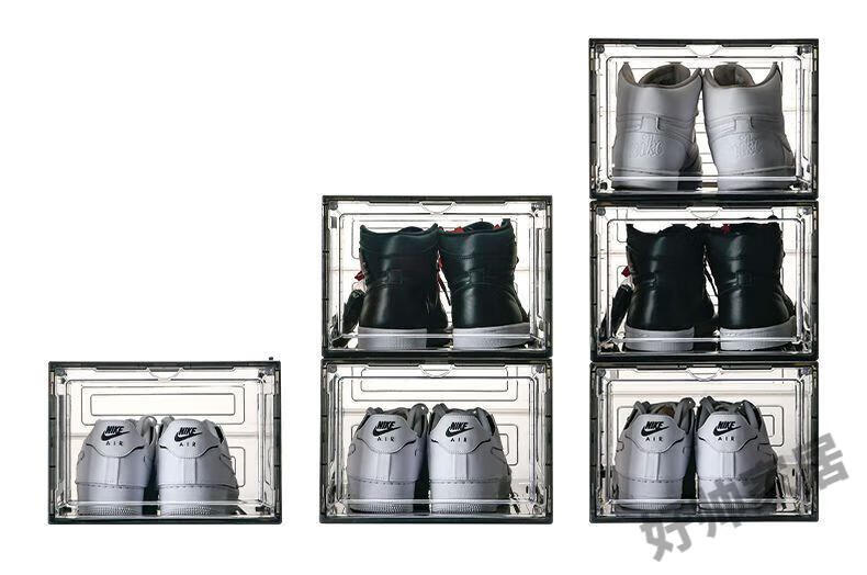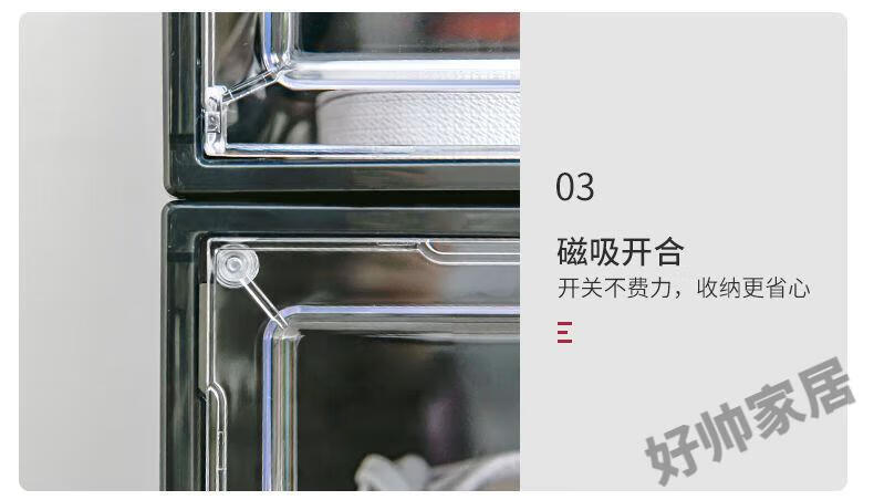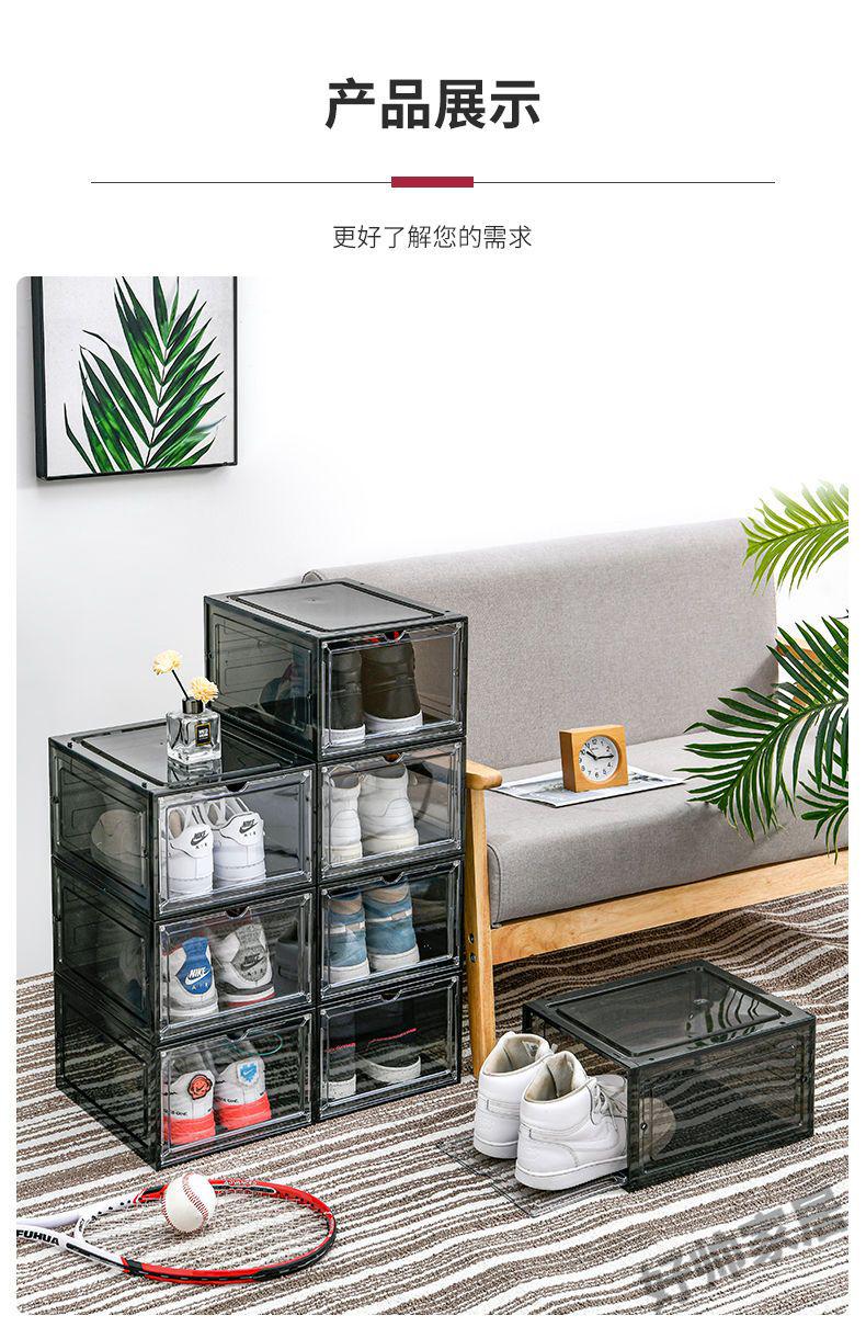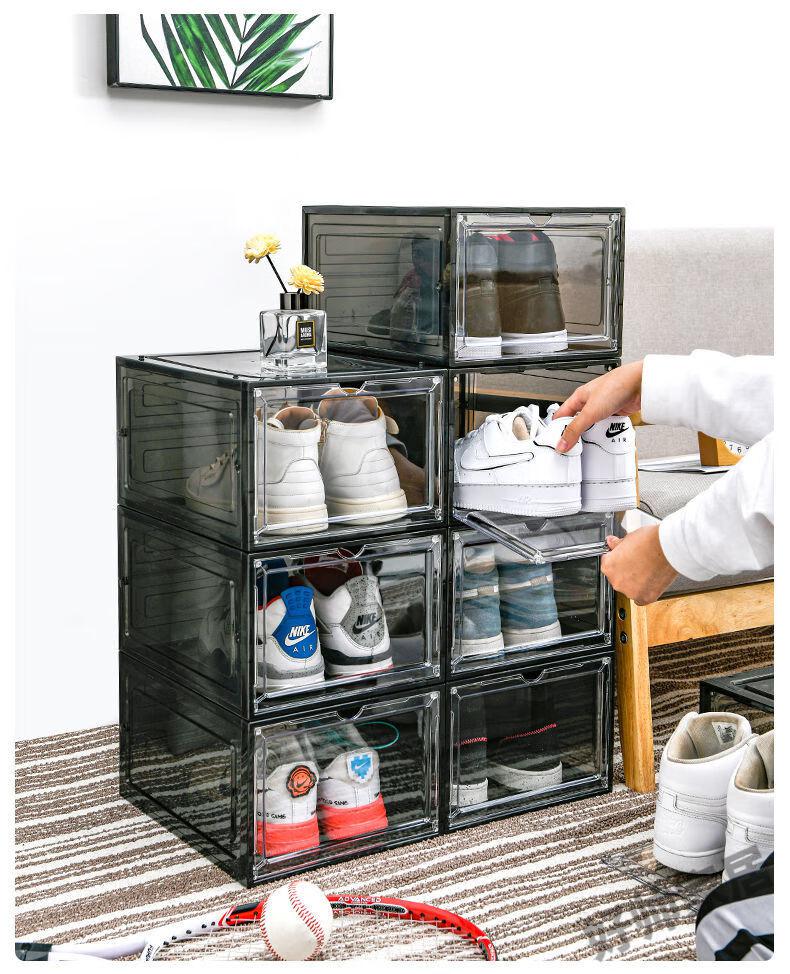 Meikejie magnetic hard plastic transparent drawer-type shoe box shoe storage box dormitory artifact space-saving shoe rack shoe cabinet separate transparent black four pack (free combination of independent shoe boxes) side door large magnetic suction 46 size high-top shoes