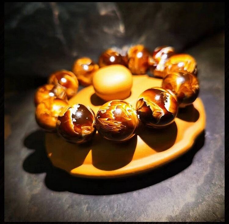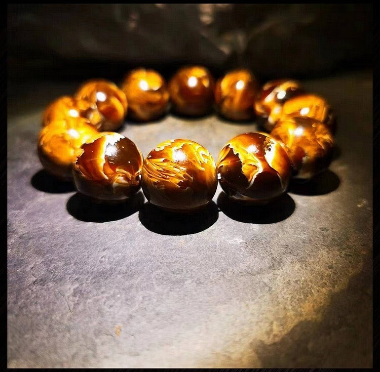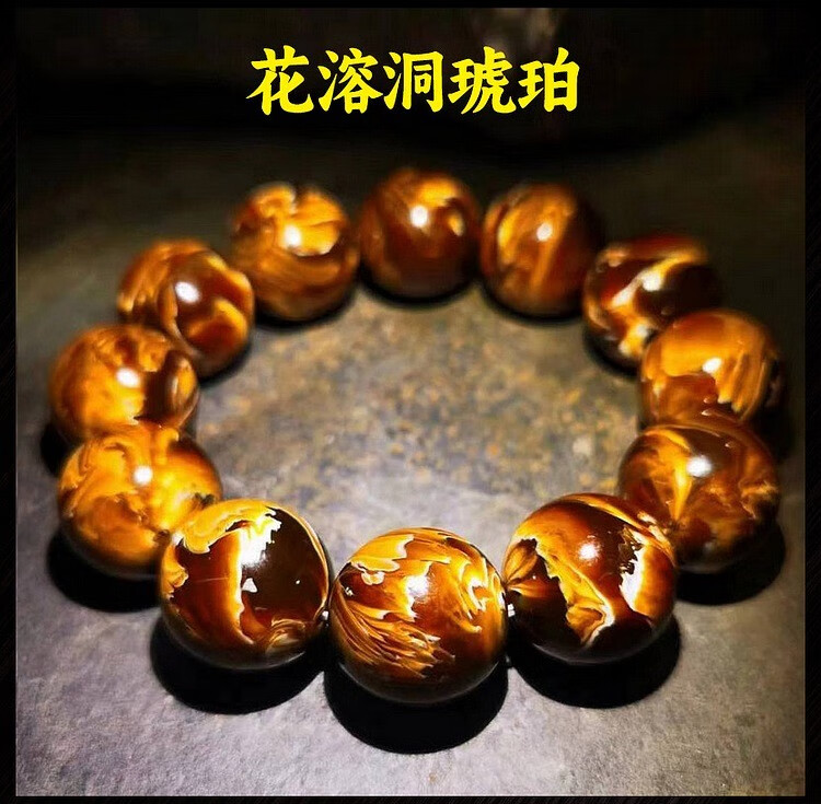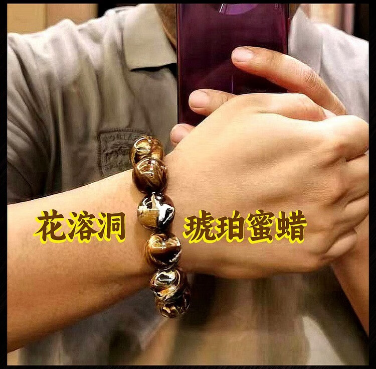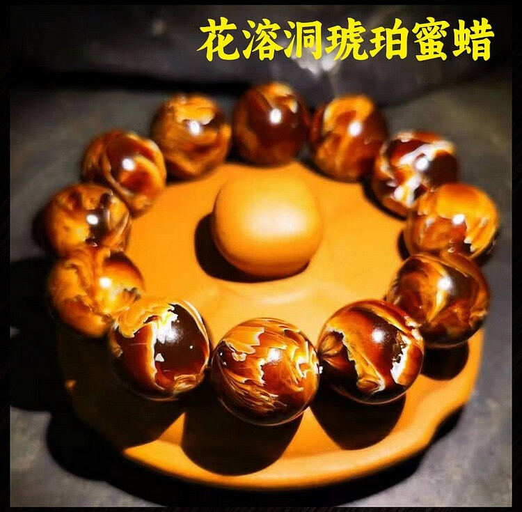 Phase stone edge optimized floating flower Burmese amber bracelet for men and women cave honey flower root amber beeswax bracelet single bead 20mm*12 pieces/string/men