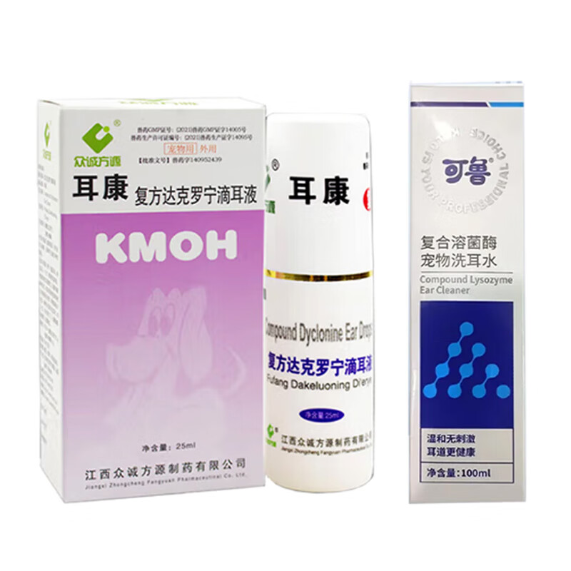 Zhongcheng Fangyuan Erkang Pet Ear Drops Oil Cat Ear Cleansing Water Dog Otitis Ear Cleansing Liquid Sterilization Antipruritic Ear Rehabilitation Fang Dacronin Erkang 25ml + Kelu Ear Cleansing Liquid 100ml