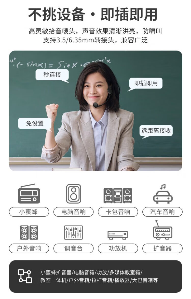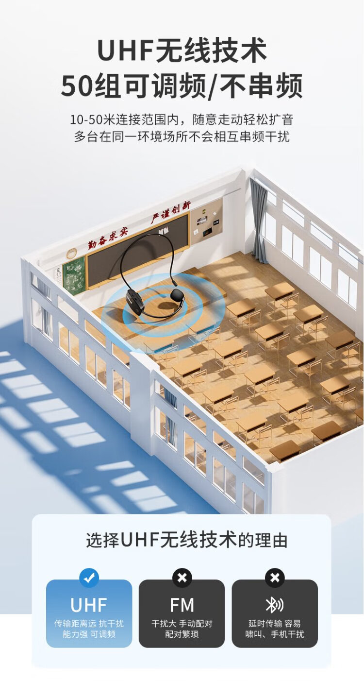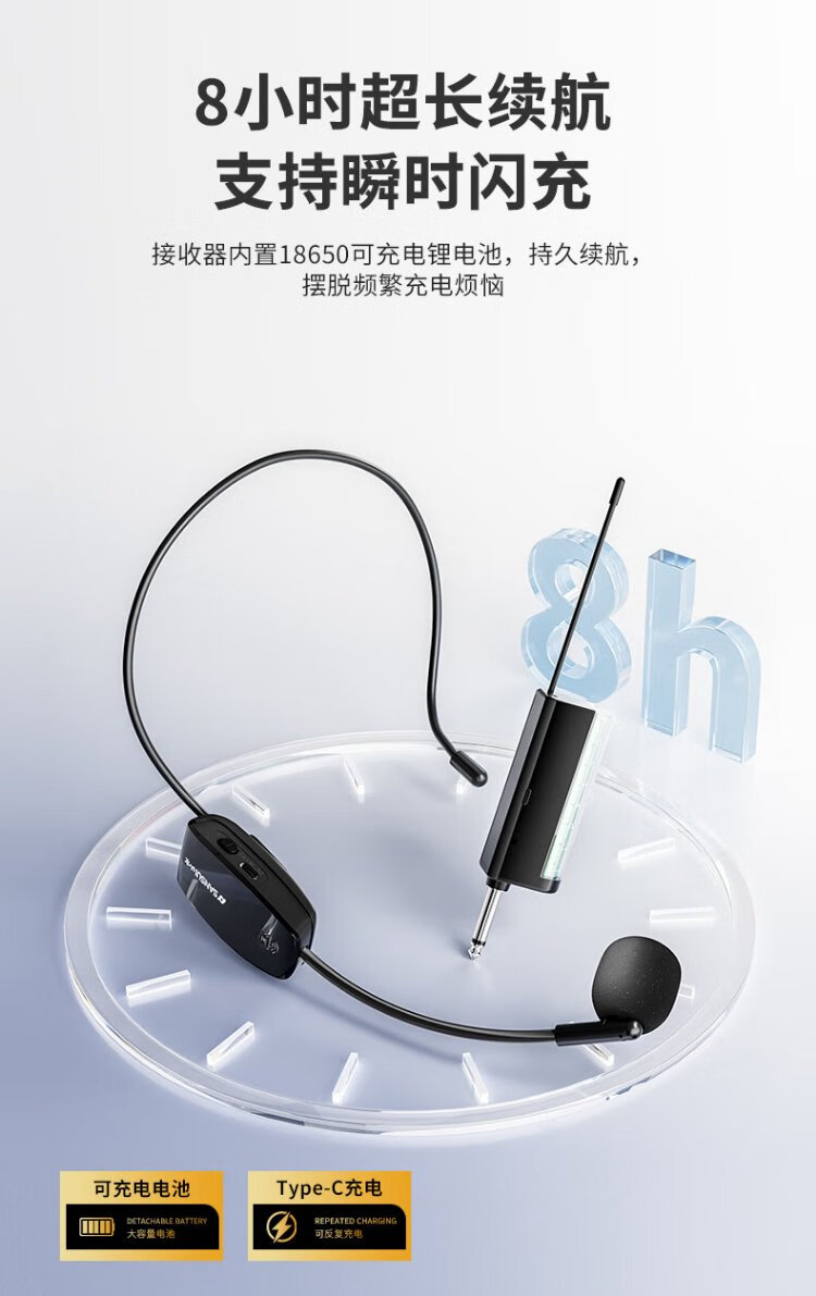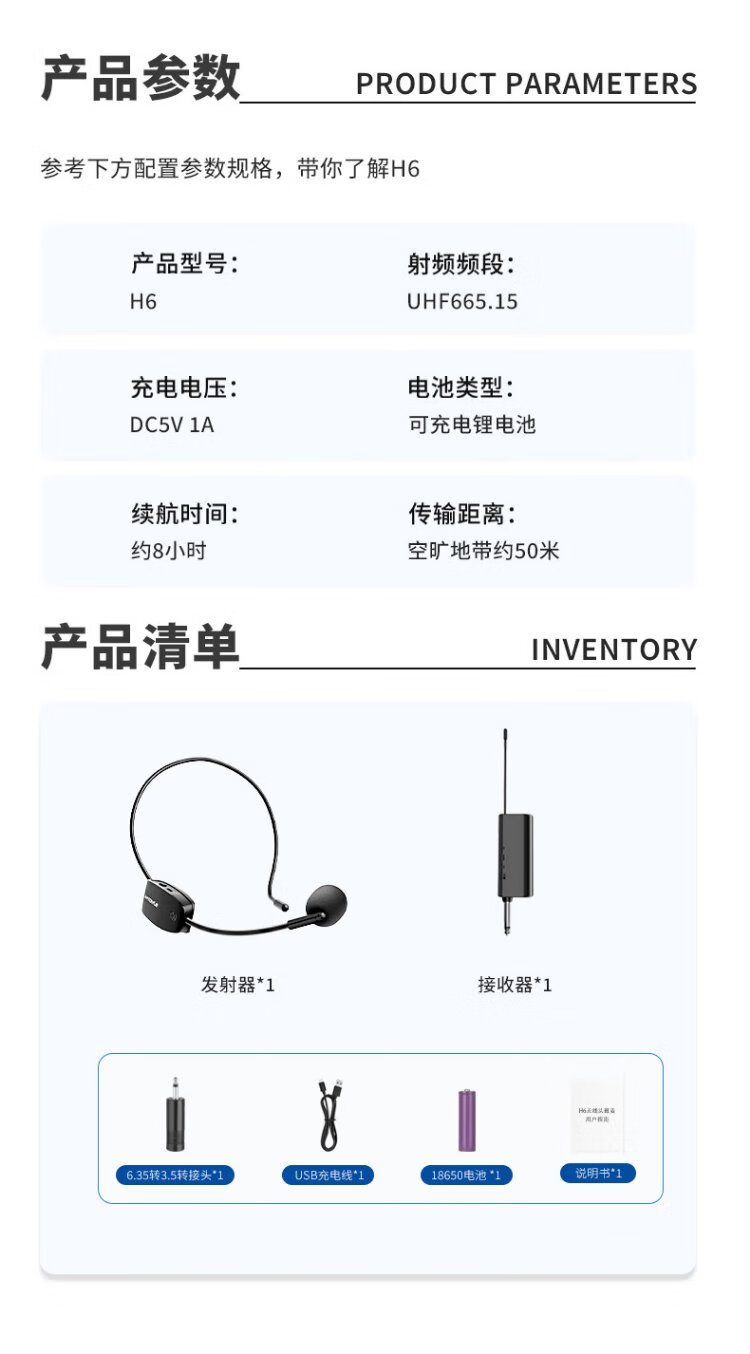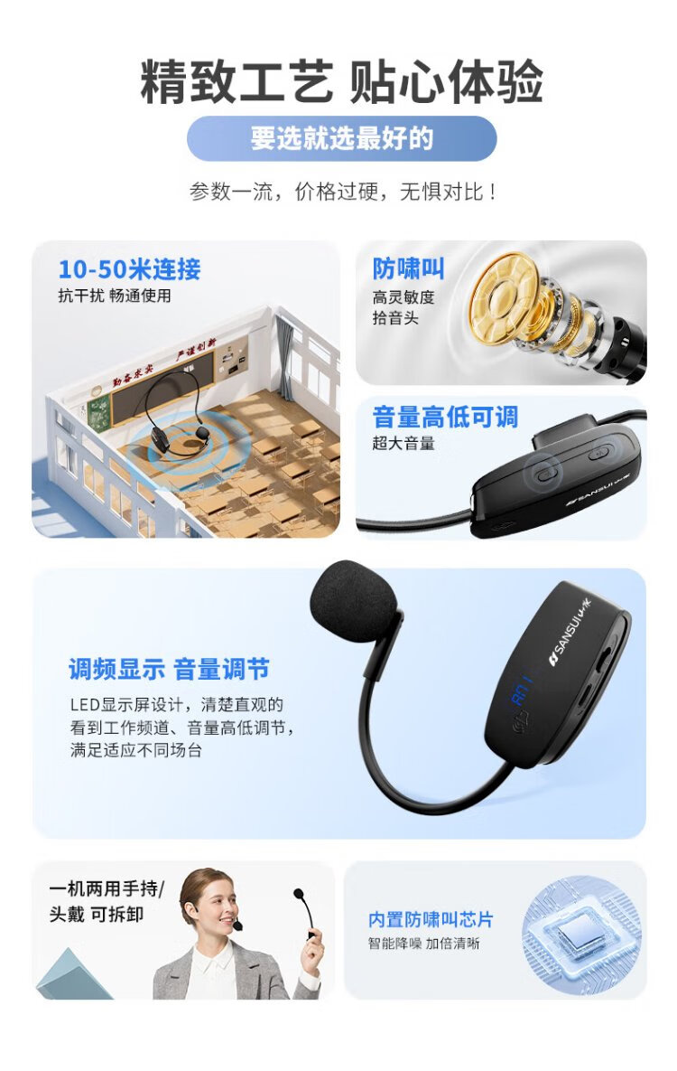 SANSUI H6 headset wireless microphone U-segment adjustable frequency rod speaker teaching tour guide microphone conference home power amplifier wireless headset single headset (receiver + headset microphone)