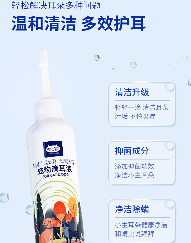 Get a pet (YOUNGER PET) pet ear drops to remove ear mites and fungi for cats, ear cleaning solution for dogs and cats, ear cleaning solution for dogs and cats 120ml hard head ear drops*1 No Specifications