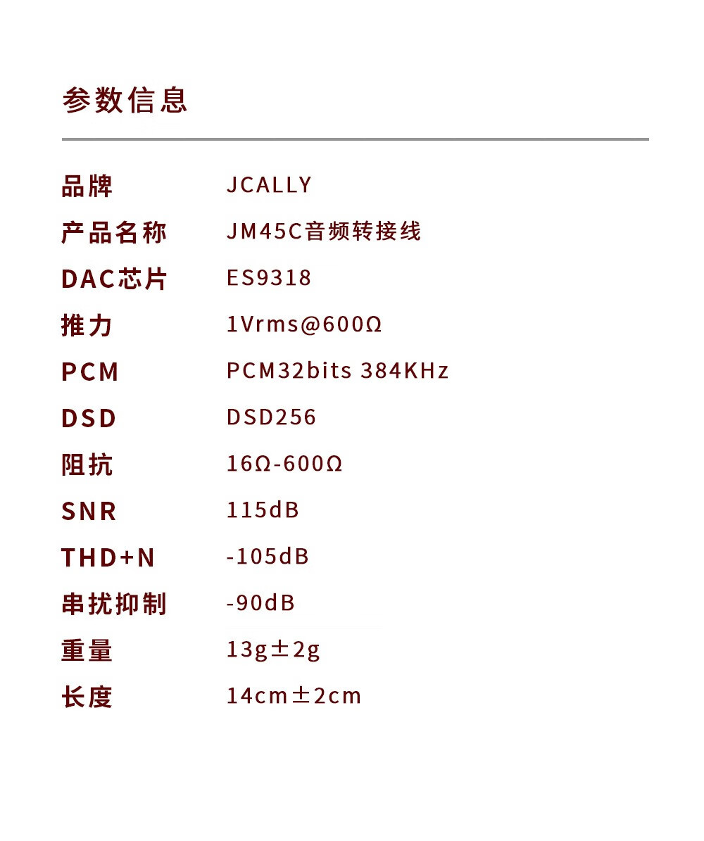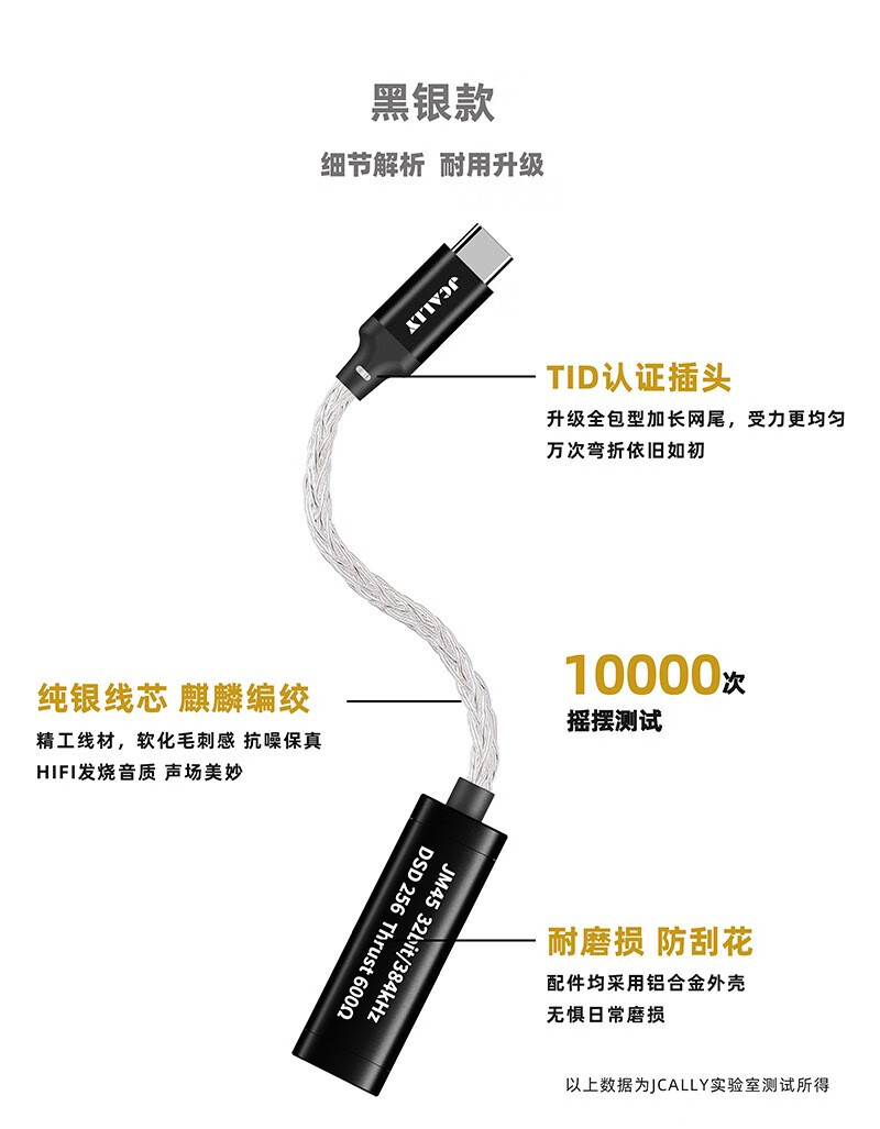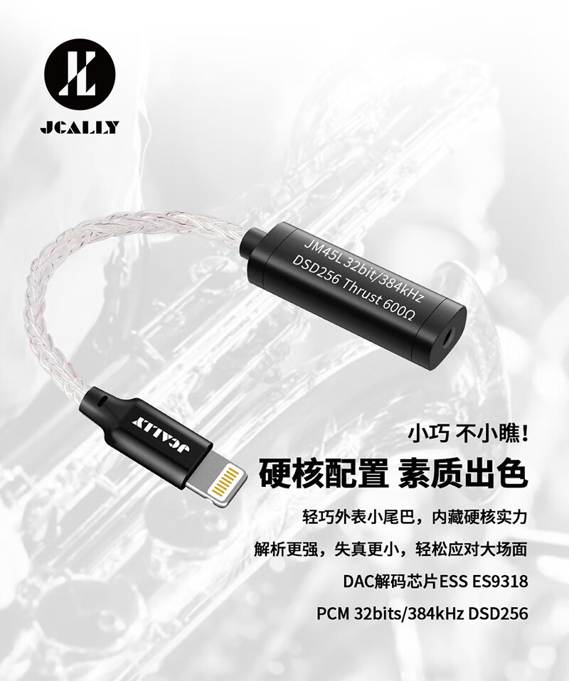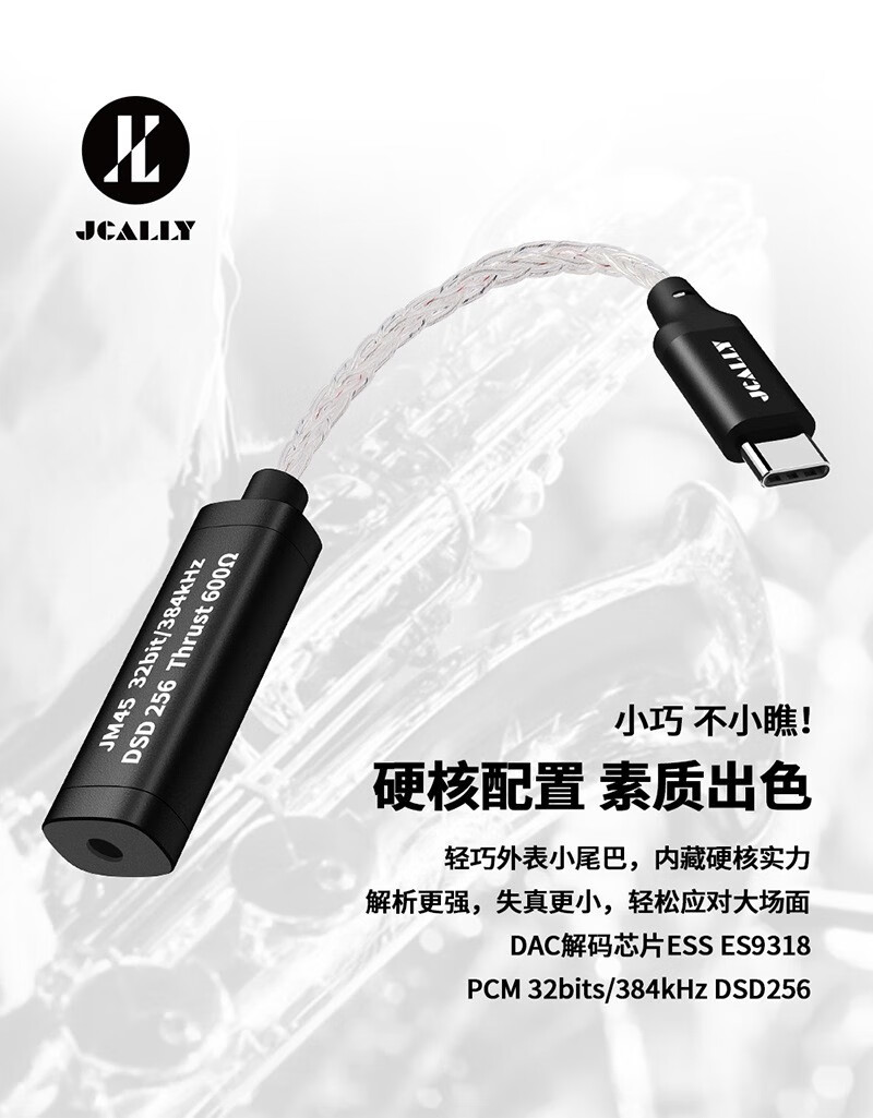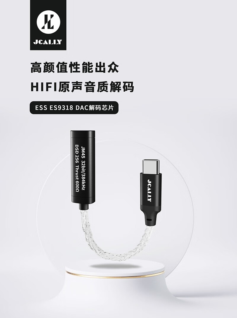 JCALLY JM45 small tail decoder amp adapter 3.5mm headphone accessories adapter cable DSD hard decoding hifi audio chip ES9318 fever-level professional music player JM45 Type-c to 3.5mm