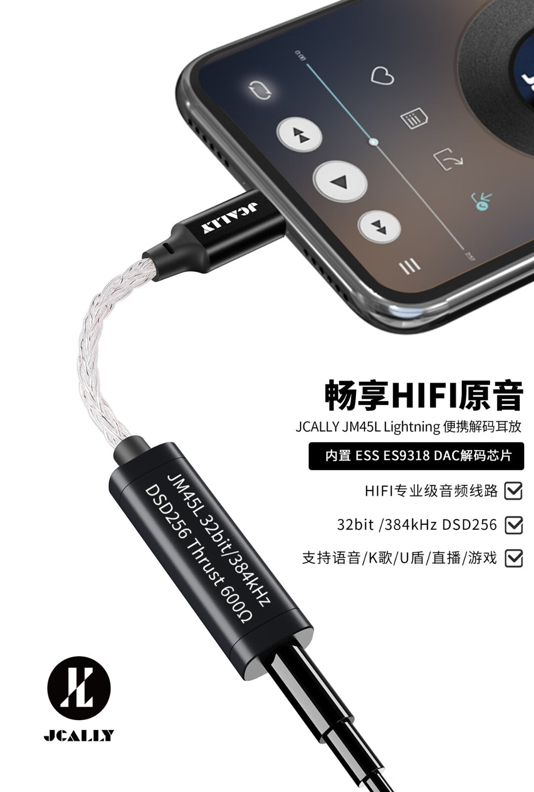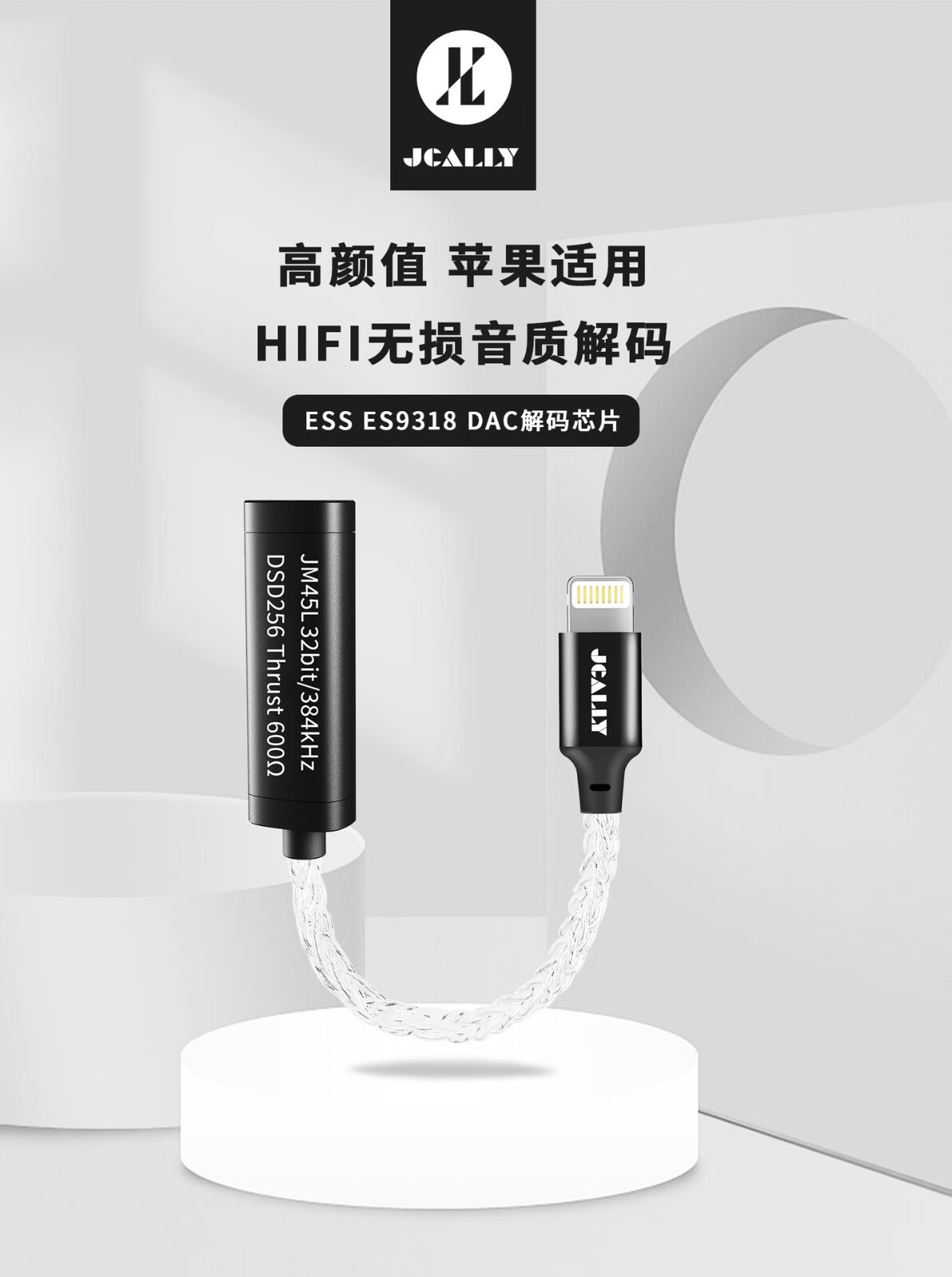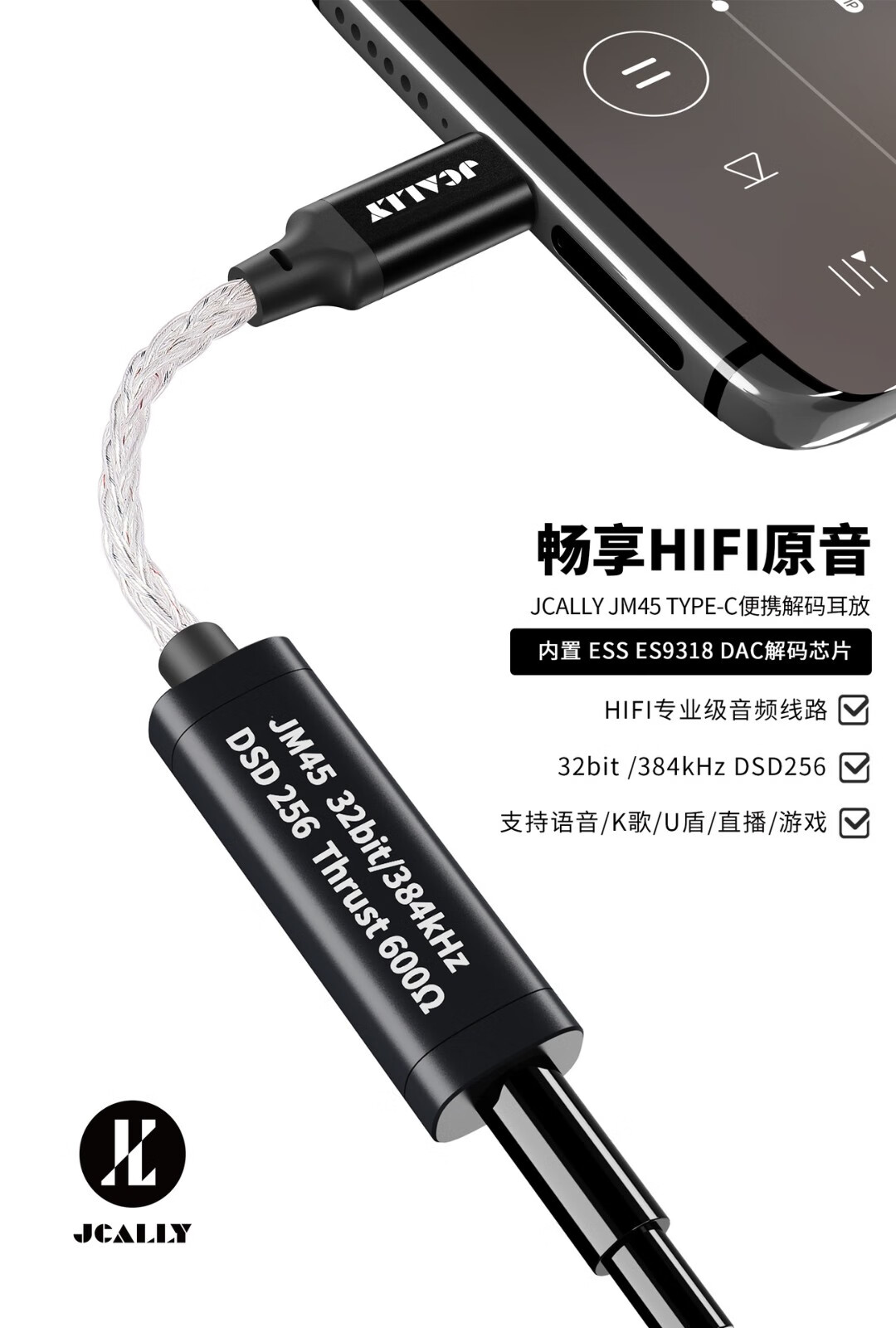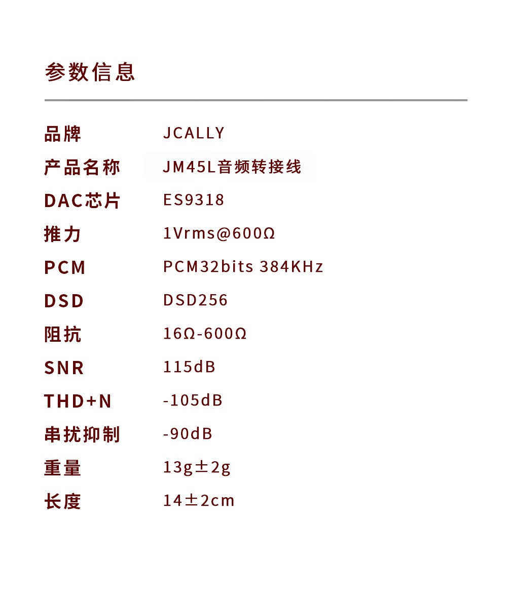 JCALLY JM45 small tail decoder amp adapter 3.5mm headphone accessories adapter cable DSD hard decoding hifi audio chip ES9318 fever-level professional music player JM45 Type-c to 3.5mm