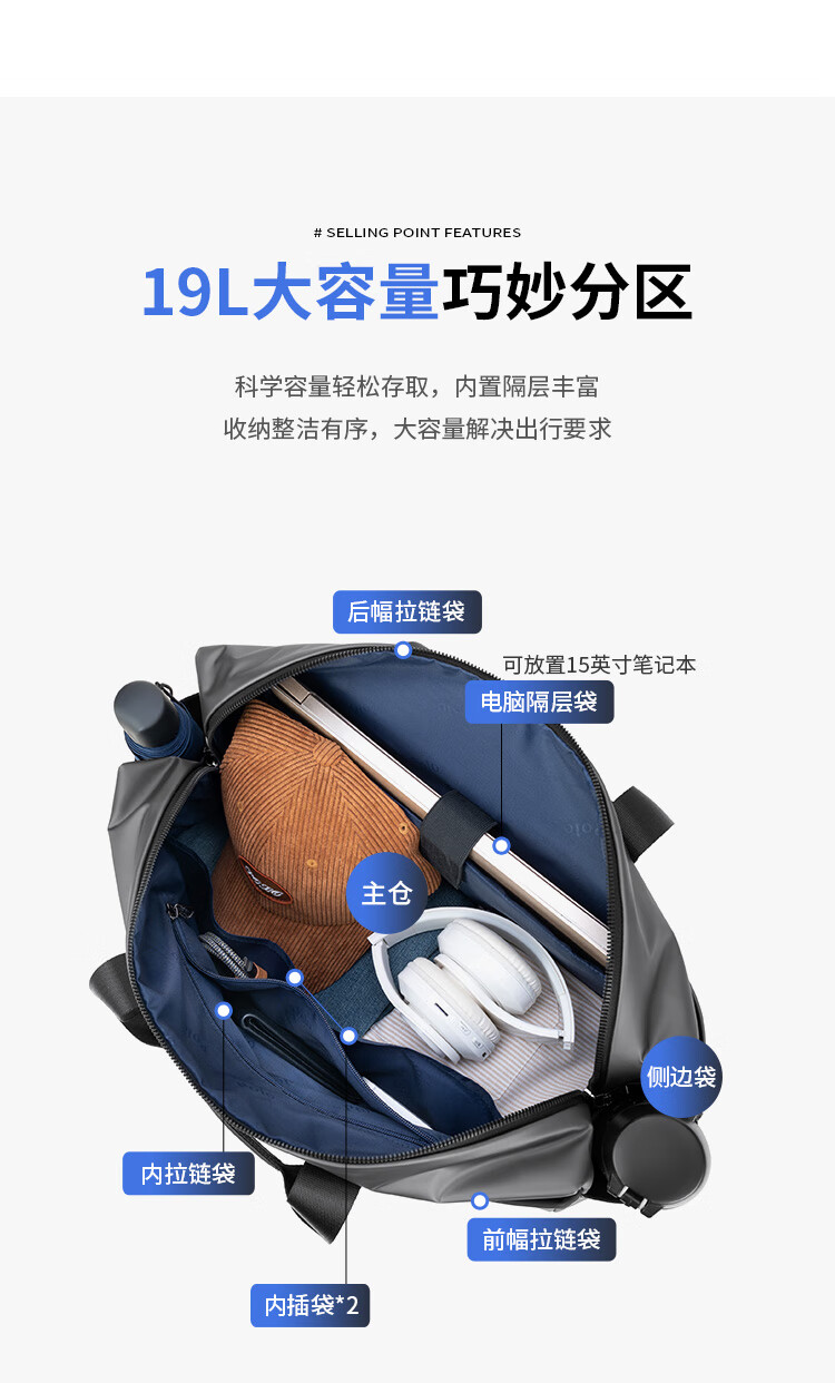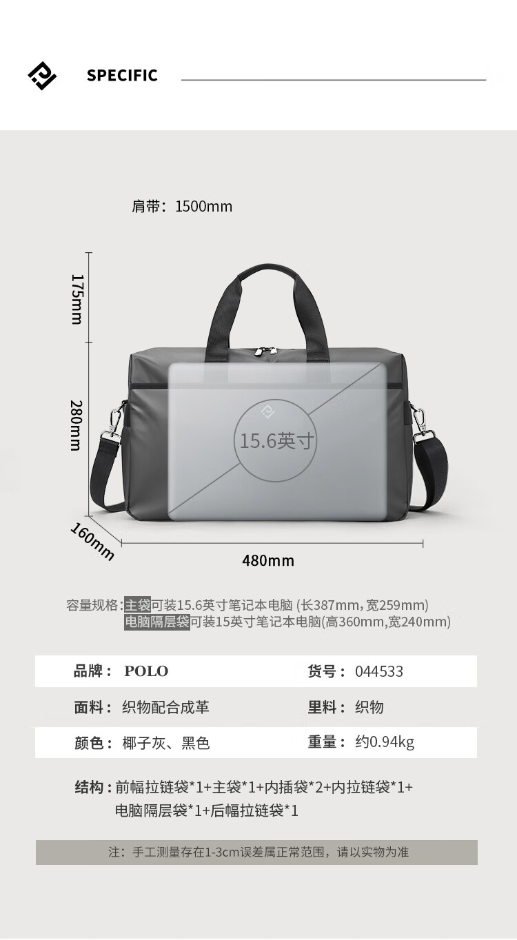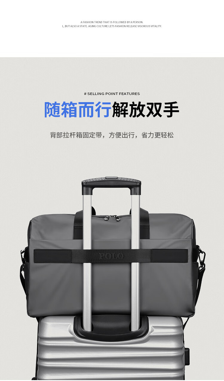 POLO travel bag men's travel bag luggage bag handbag large capacity commuter storage bag sports fitness bag business trip bag coconut gray