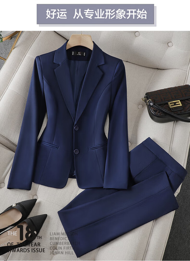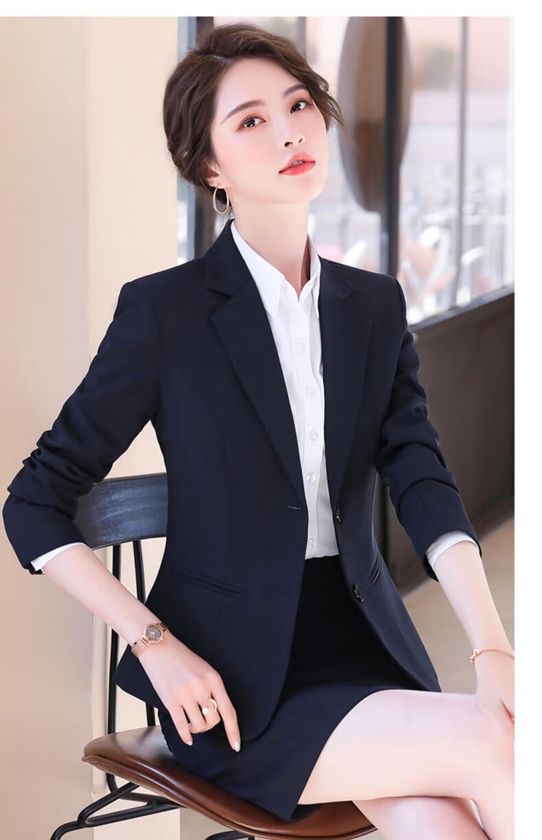 Pierre Cardin (pierre cardin) brand blue suit jacket women's business professional formal suit anti-wrinkle no-iron workwear casual suit black suit trousers white shirt L 100Jin Jin equals 0.5kg ~109Jin Jin equals 0.5kg