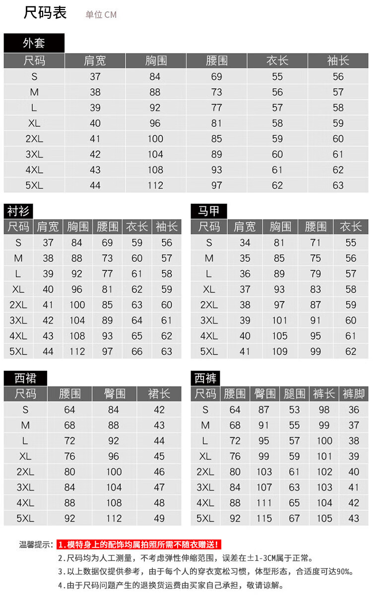 China (cm) 160-165/84-86 165-170 / 88-90 167-172 / 92-96 168-173 / 98-102 170-176 / 106-110