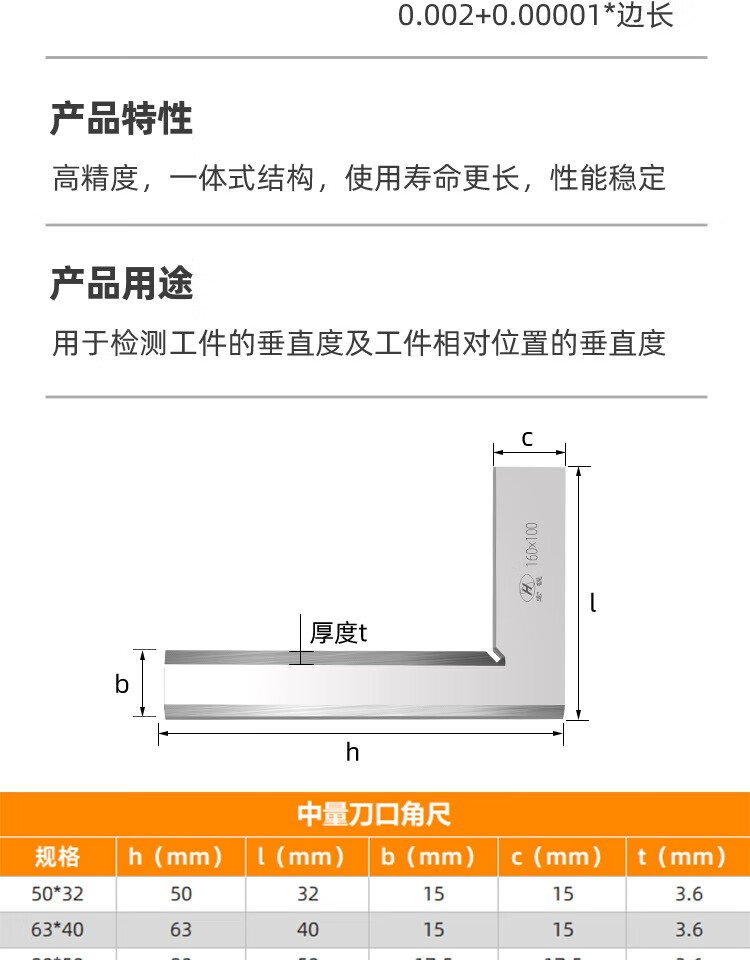 Shanghai medium-volume Hongrui blade square high-precision 90-degree right-angle ruler industrial-grade square ruler thickened 50*32mm (economical and applicable)