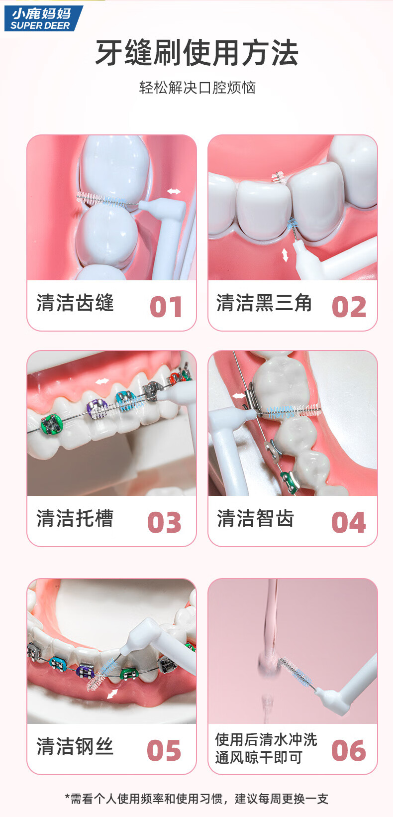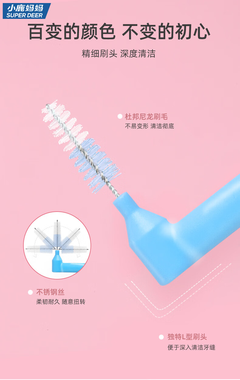 Xiaolu's mother imported interdental brush orthodontic toothbrush cleaning teeth interdental brushing gap brush 20 pieces 0.7mm 10 pieces 2 bags