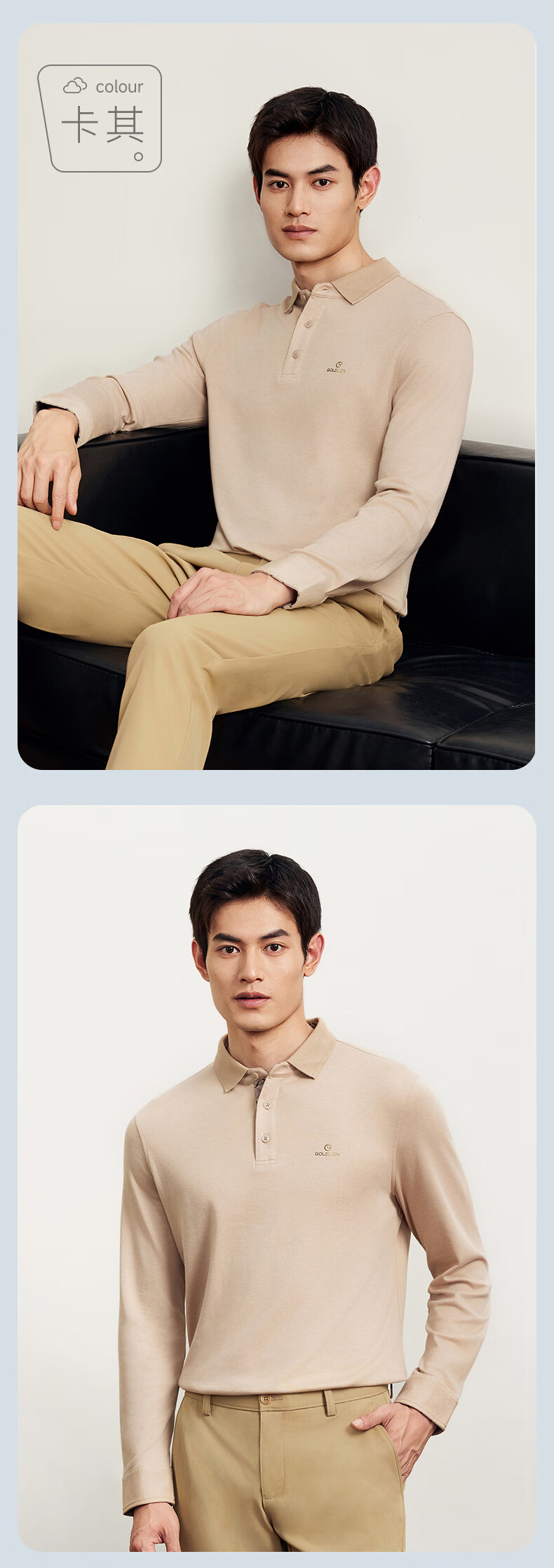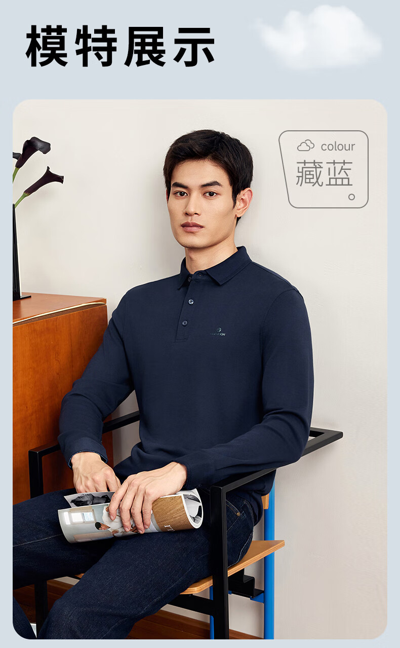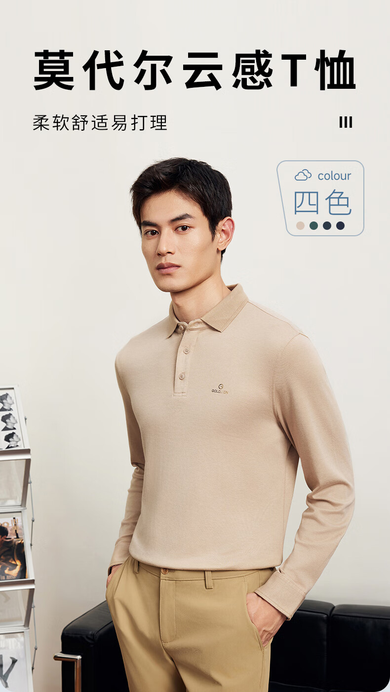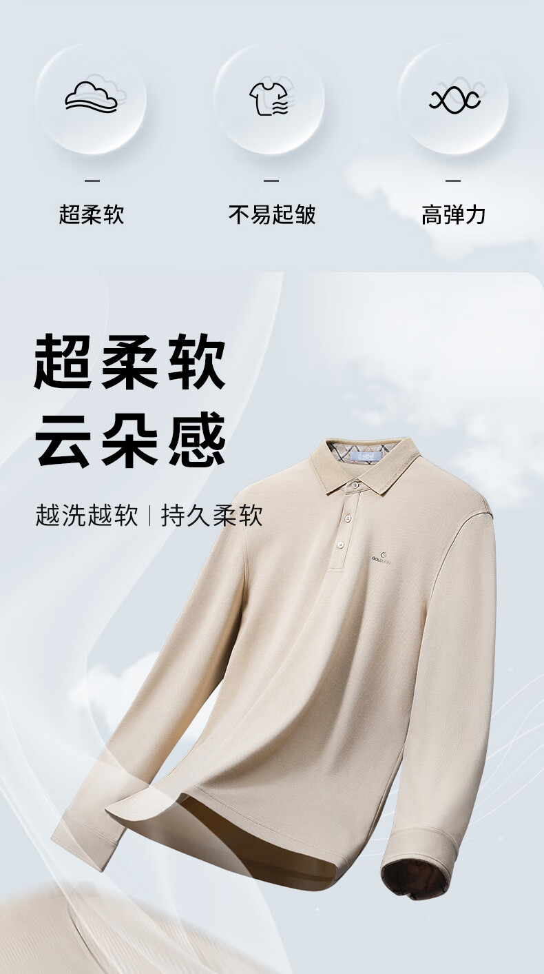 Goldlion elastic anti-wrinkle autumn and winter long-sleeved polo shirt men's solid color soft modal business commuting T-shirt 88 carbon gray L 175/92A recommended 135-150Jin Jin equals 0.5 kg