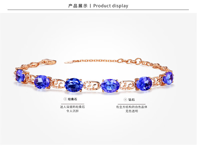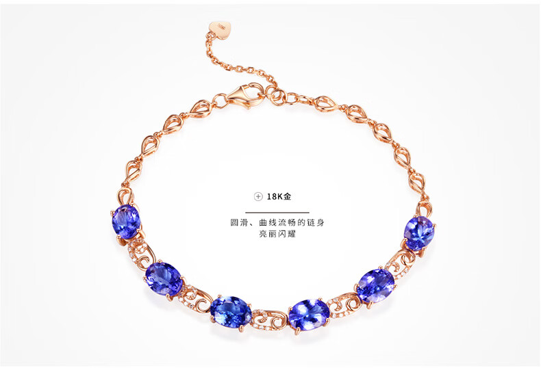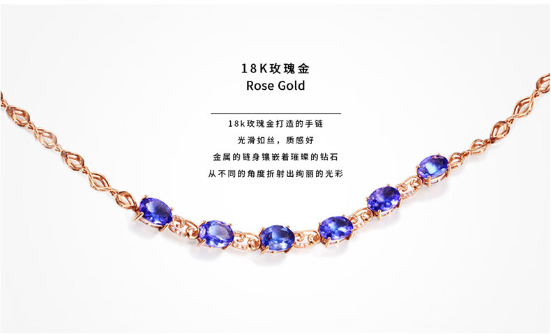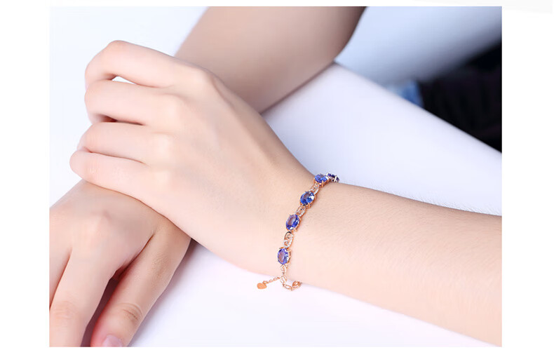Lirokini Bracelet Women's Tanzanite Blue Gemstone 18 Gold K High-End Luxury Jewelry Birthday Memorial Gift Tanzanite Bracelet (Customized)