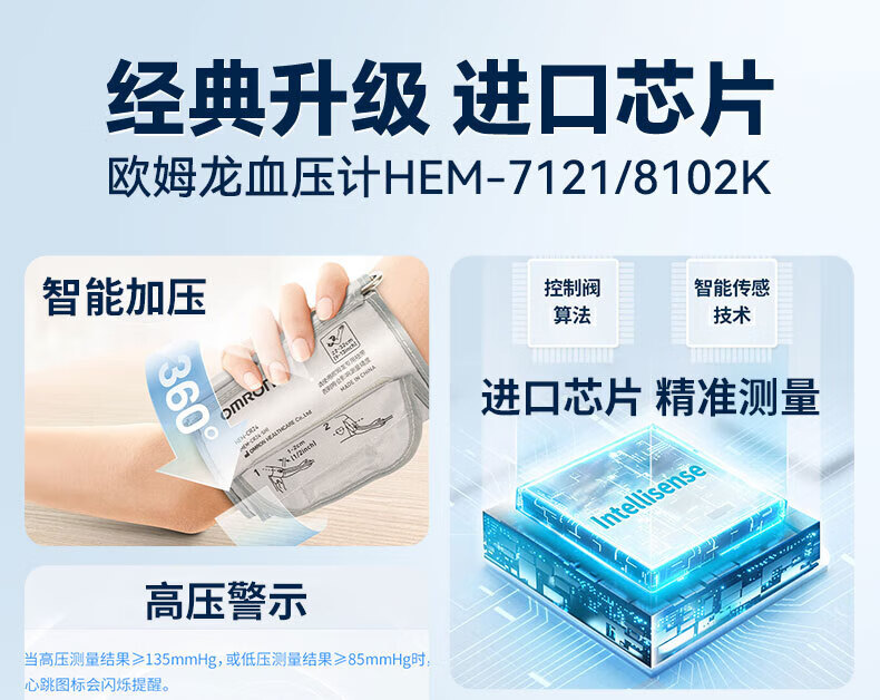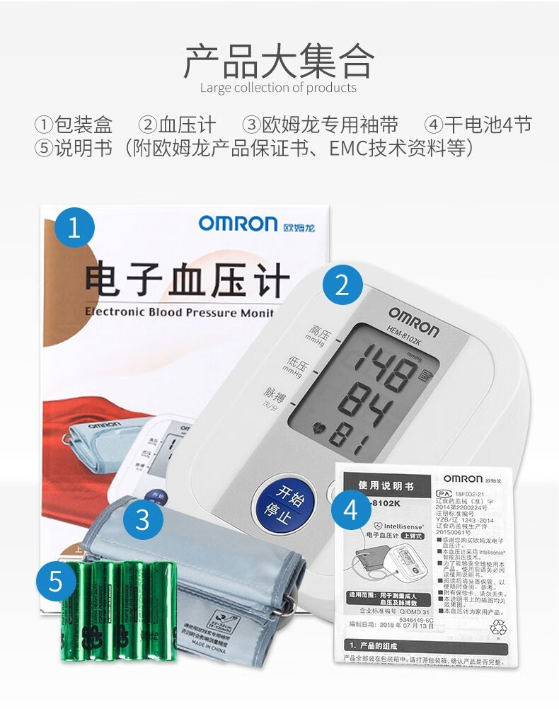 Omron blood pressure monitor upper arm household medical grade high-precision intelligent pressurized electronic blood pressure measuring instrument HEM-8102k blood pressure monitor 8102k + original power supply + storage bag + arm strap battery