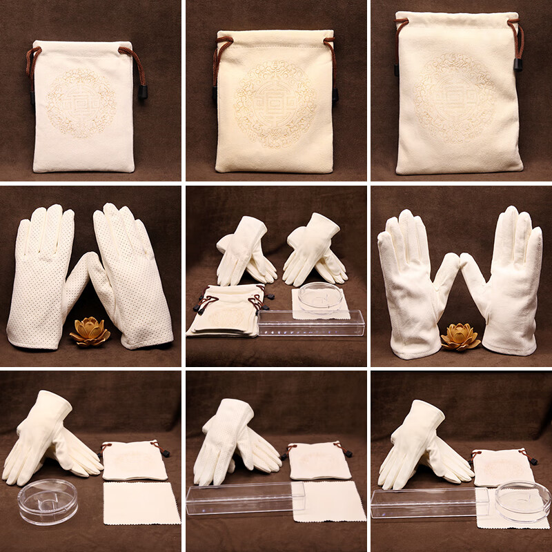 Pei Nanwei Wenwan bag, suede deerskin bag, beads, pure cotton, nano 1000 wool gloves, star and moon walnut patinated storage bag, universal 1 pair of 1000 wool gloves (milk white), one size fits all