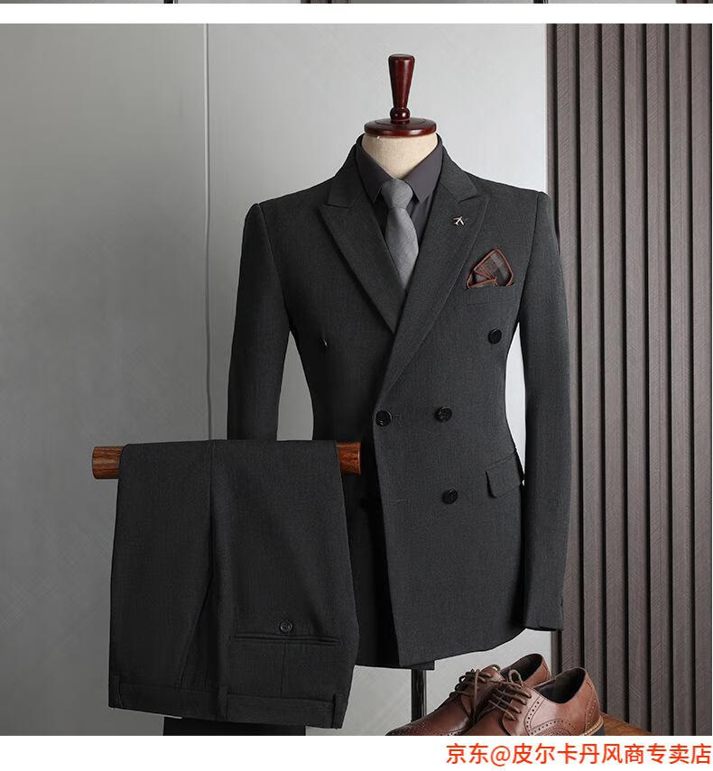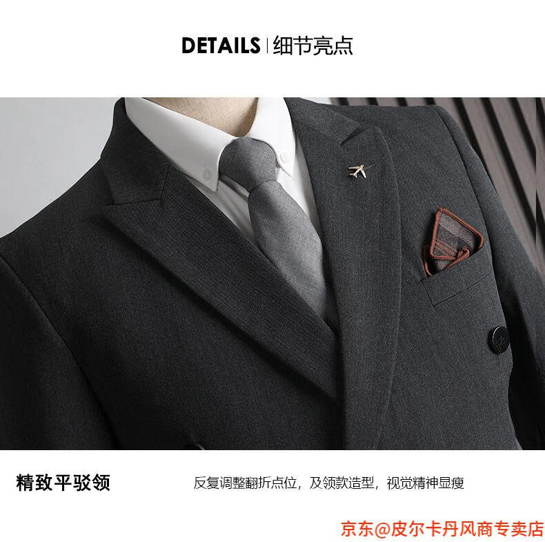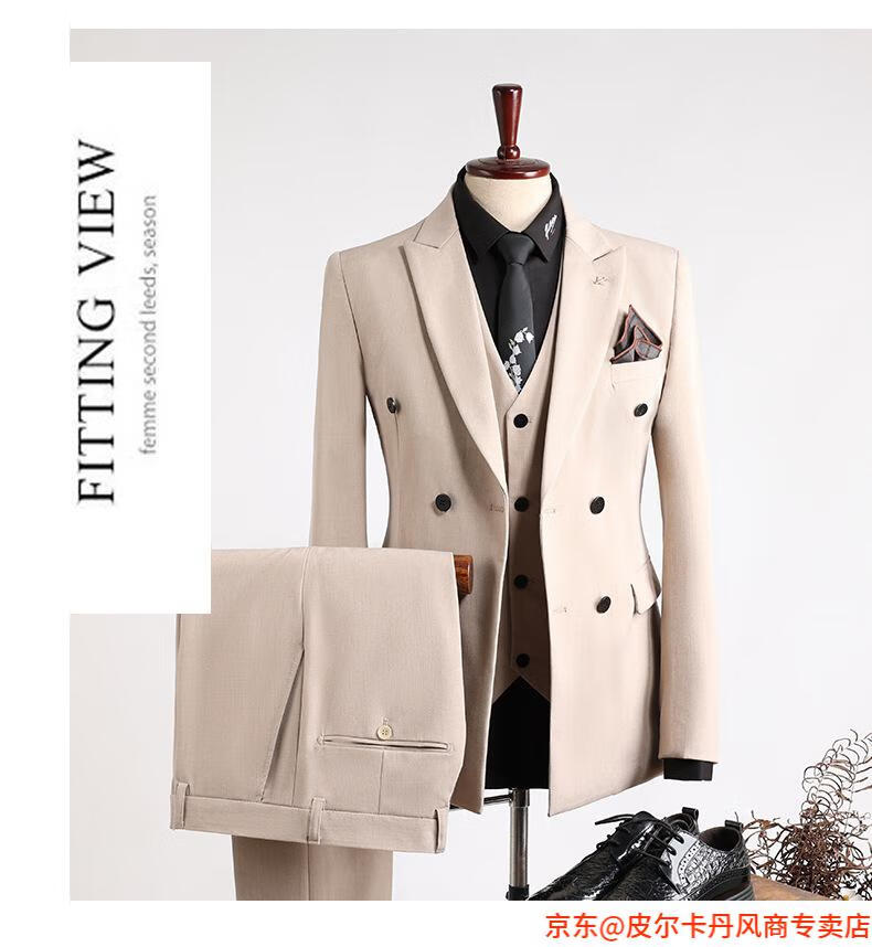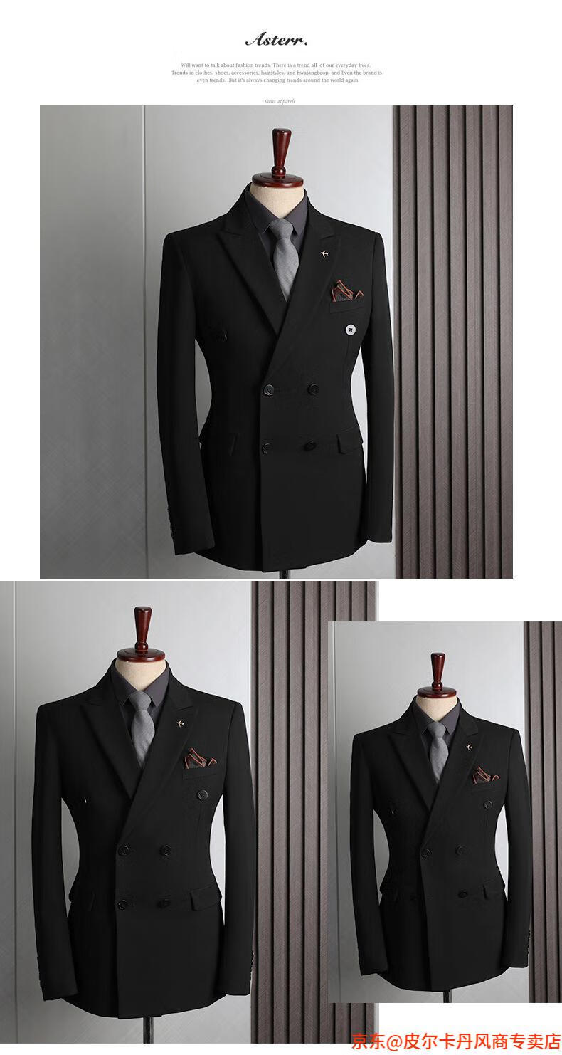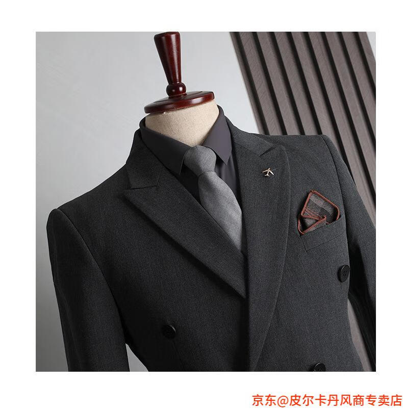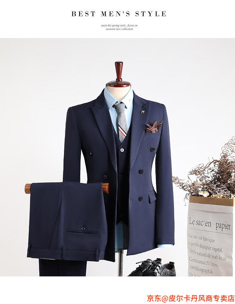Pierre Cardin suit men's British style double-breasted business casual suit three-piece groom's wedding dress navy blue (suit + pants) 2XL (190)