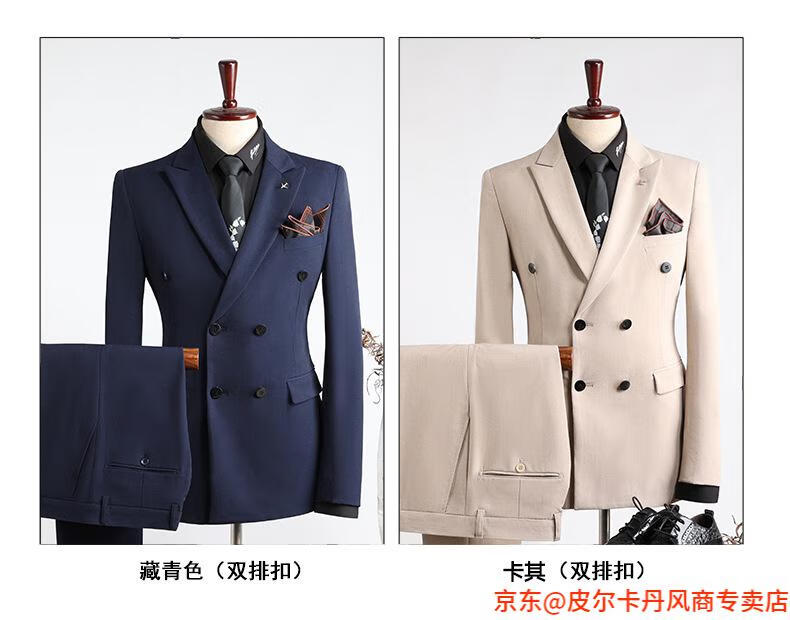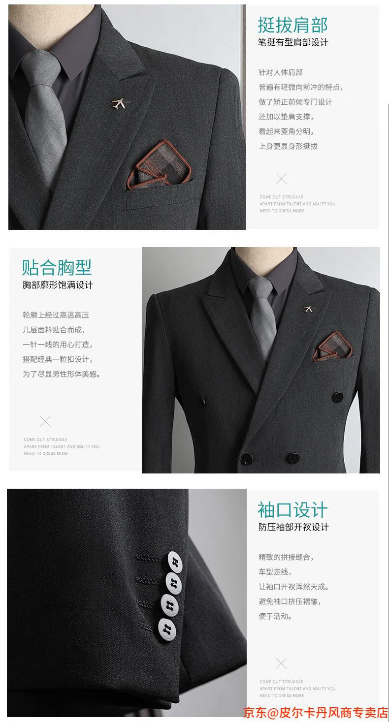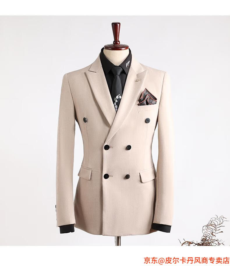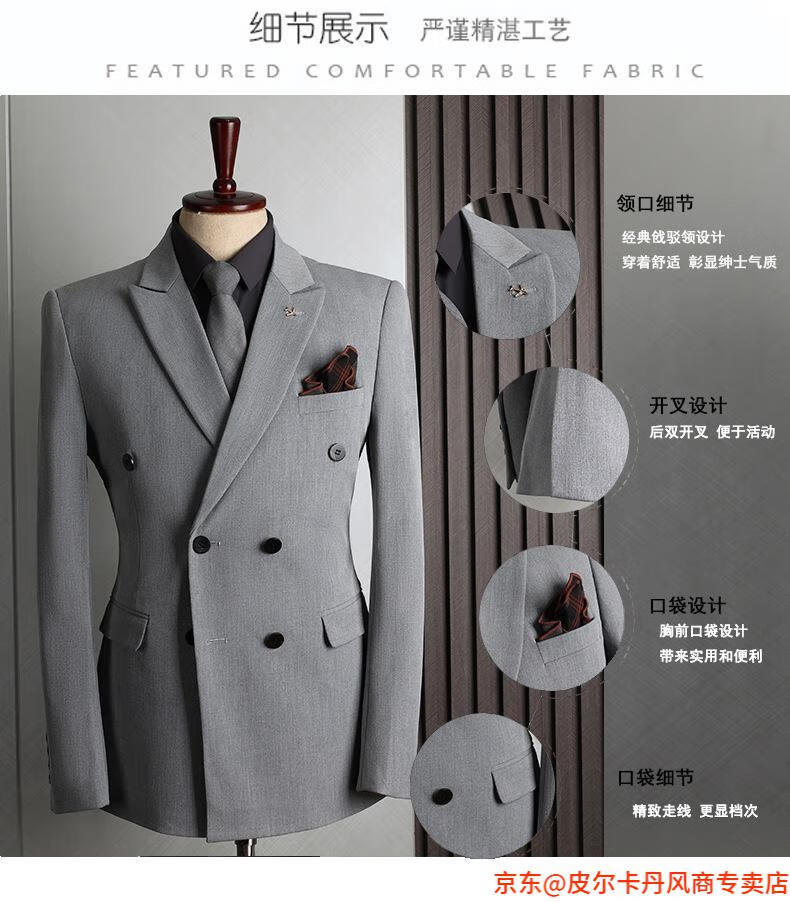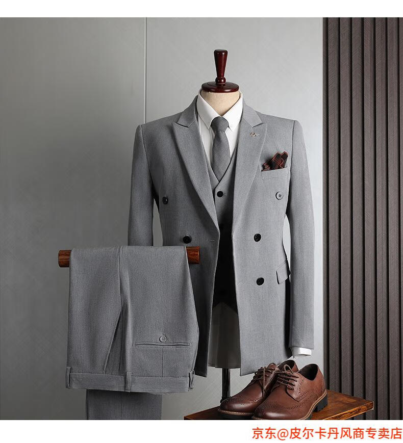 Pierre Cardin suit men's British style double-breasted business casual suit three-piece groom's wedding dress navy blue (suit + pants) 2XL (190)