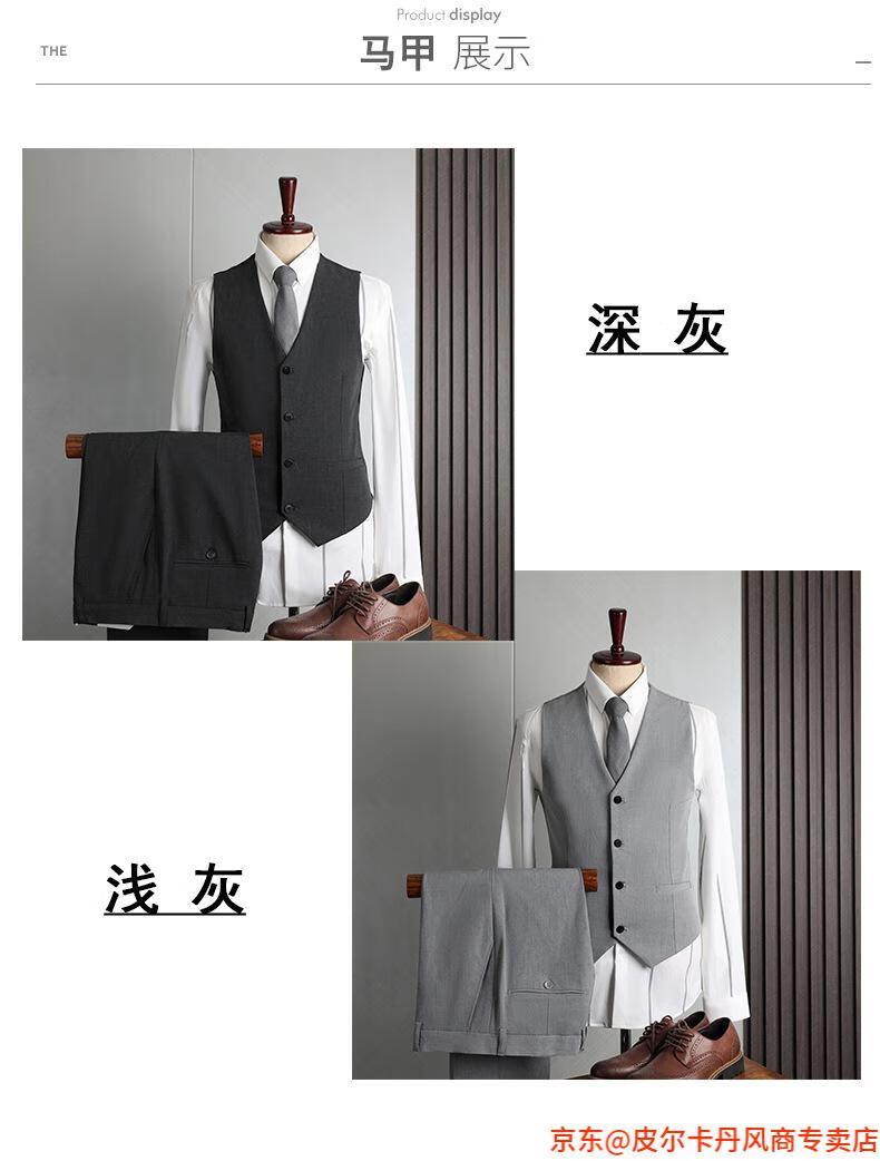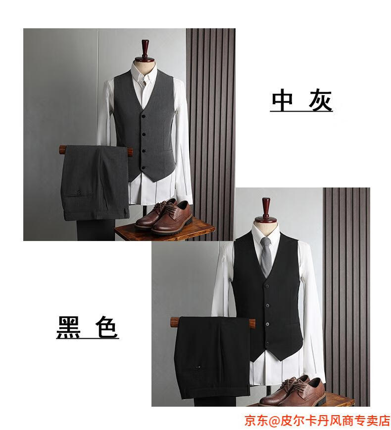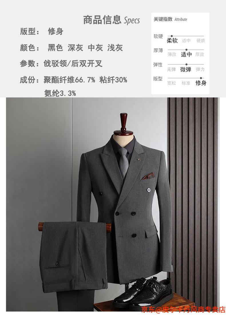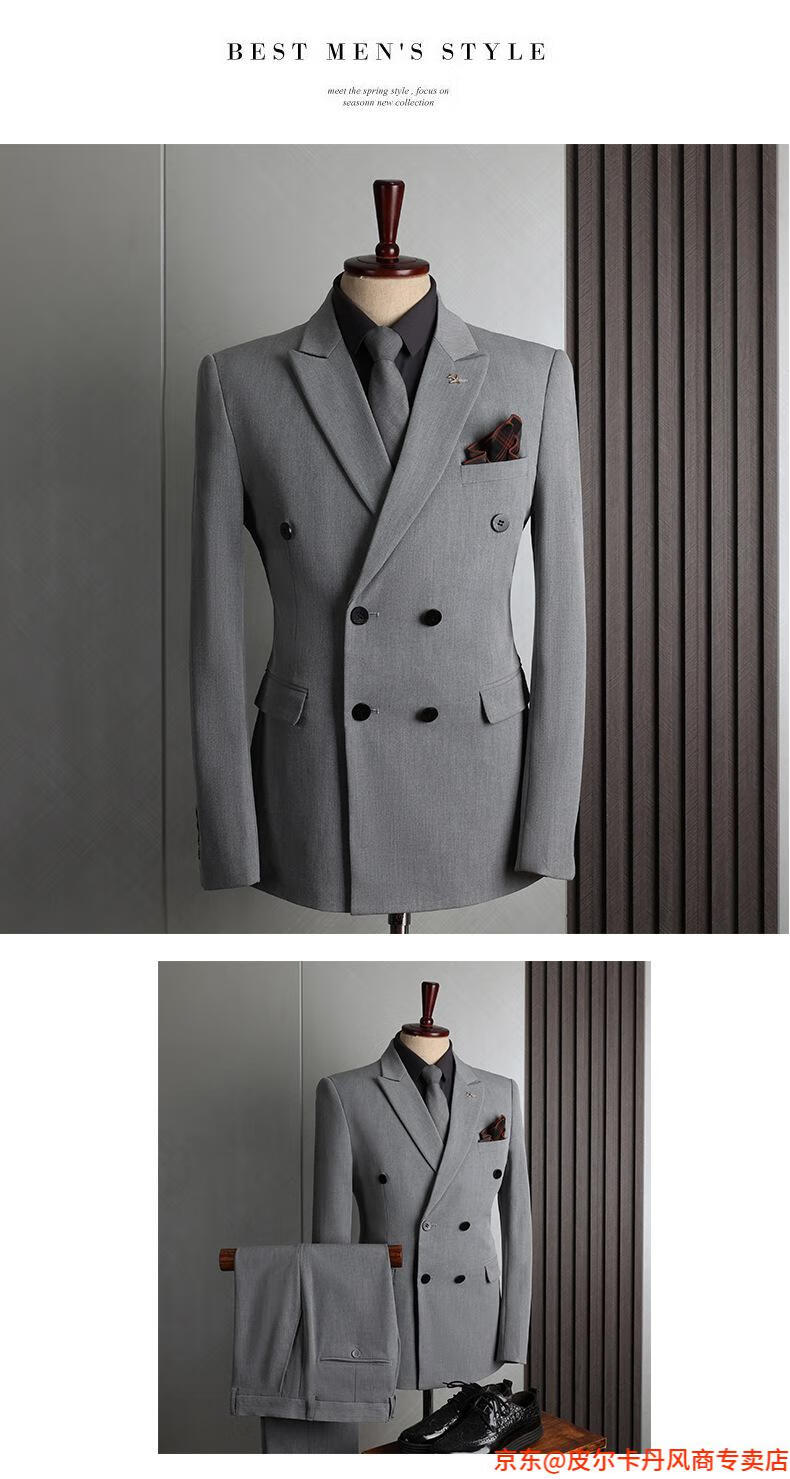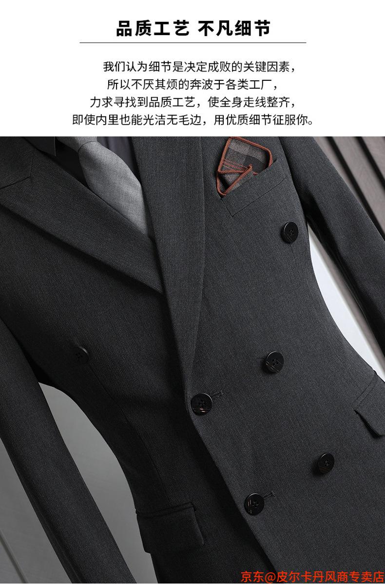 Pierre Cardin suit men's British style double-breasted business casual suit three-piece groom's wedding dress navy blue (suit + pants) 2XL (190)