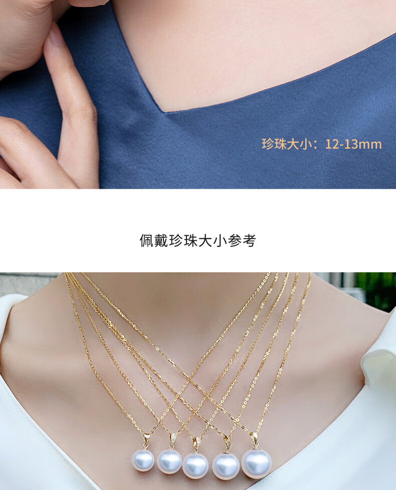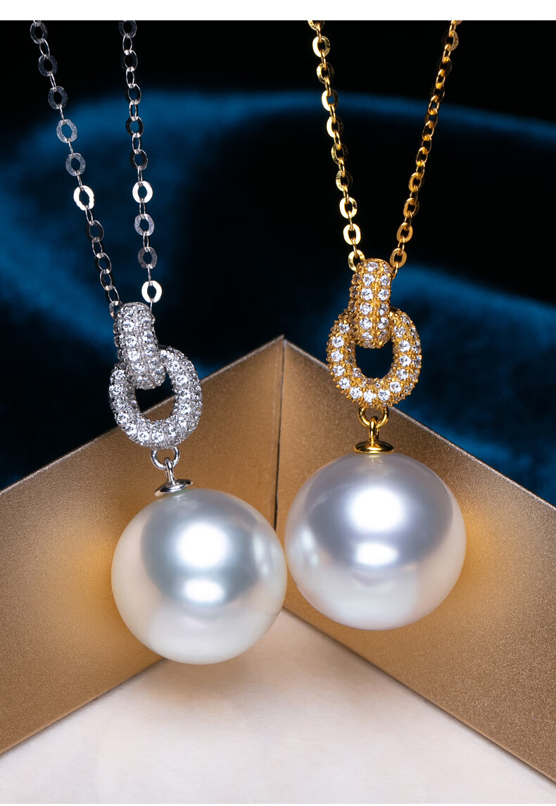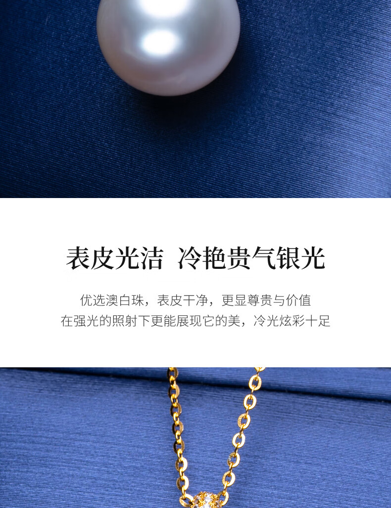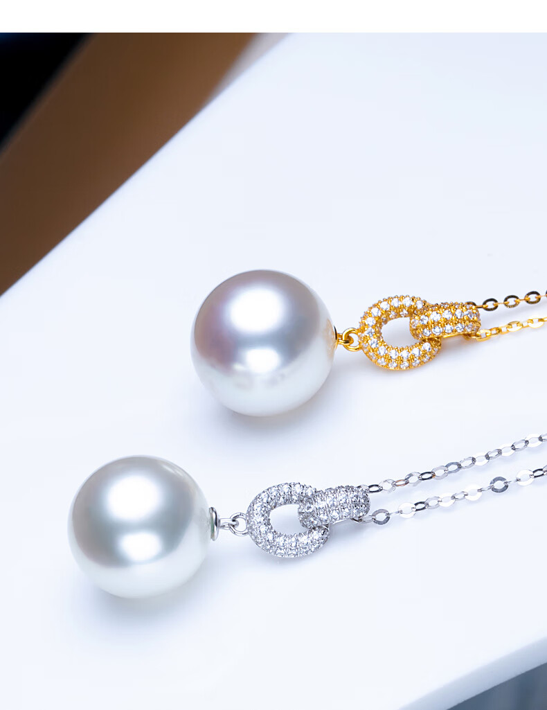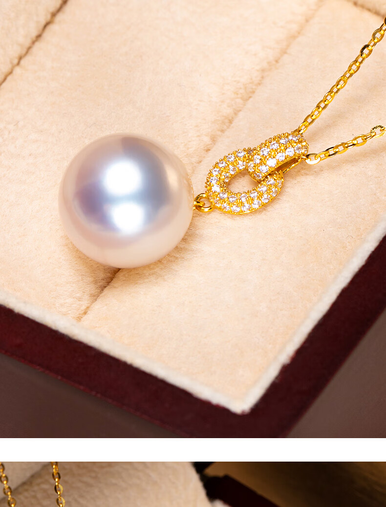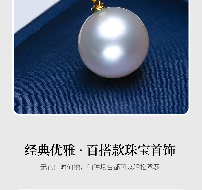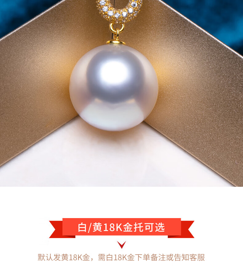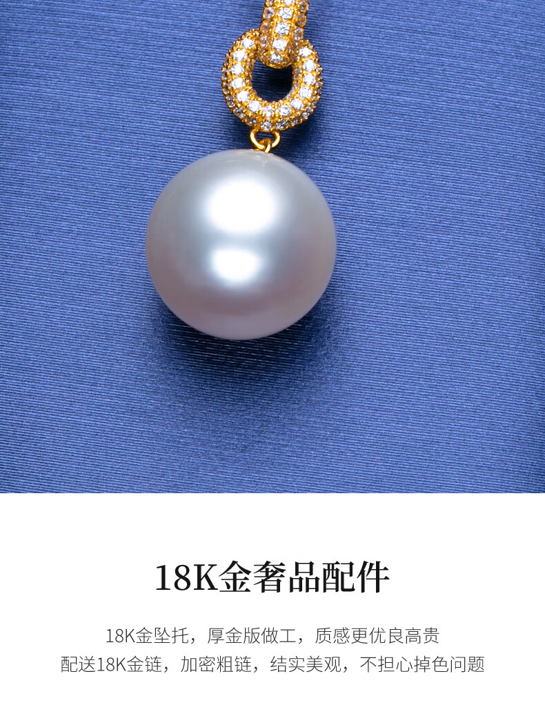 Haitong thickened 18K gold Nanyang Australian white pearl pendant single Bingtong seawater white pearl necklace temperament clavicle chain yellow 18K gold cold light 11-12mm+18k gold chain