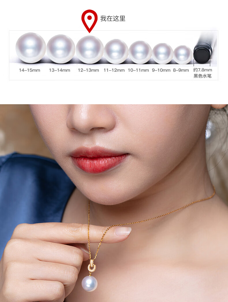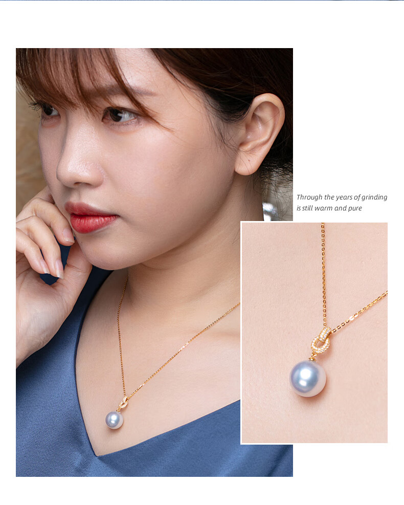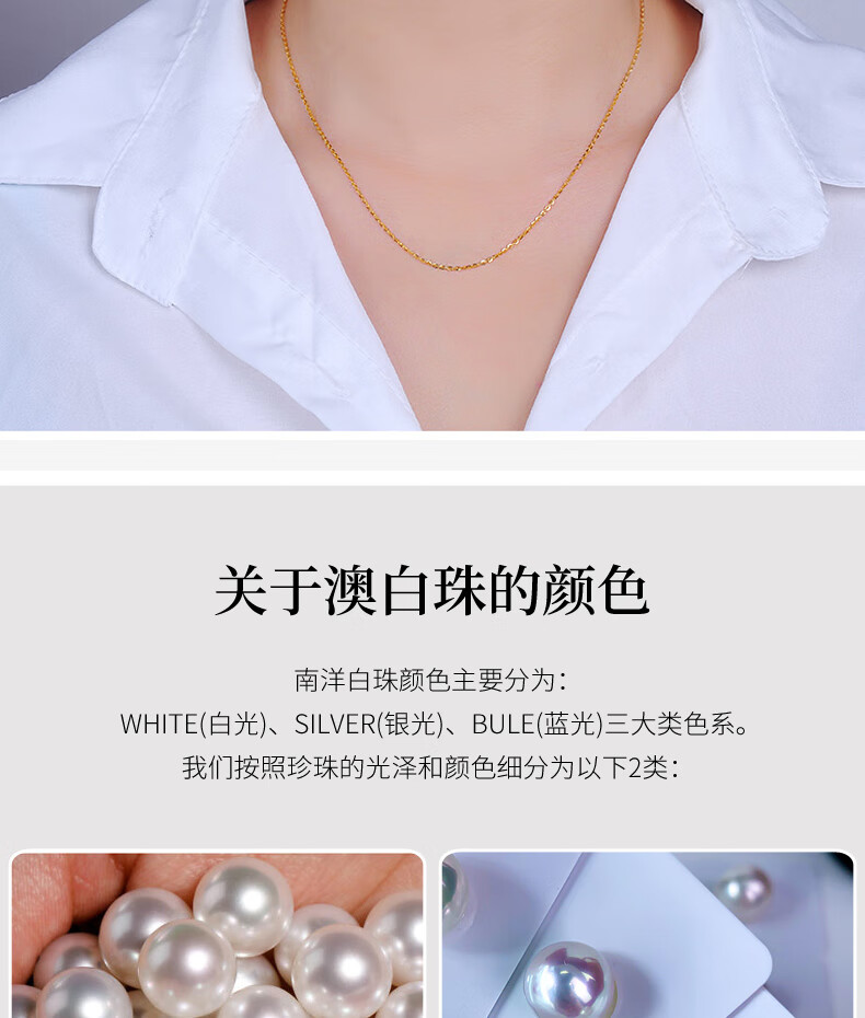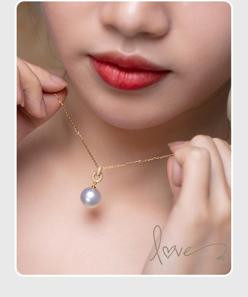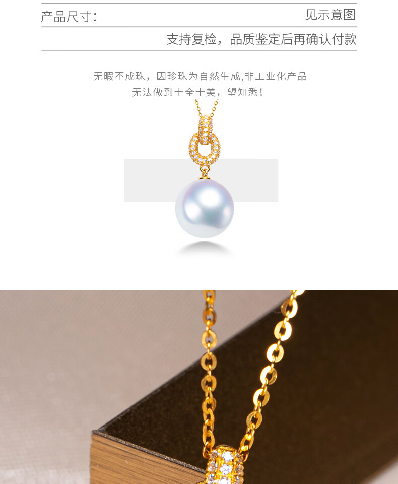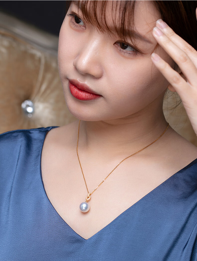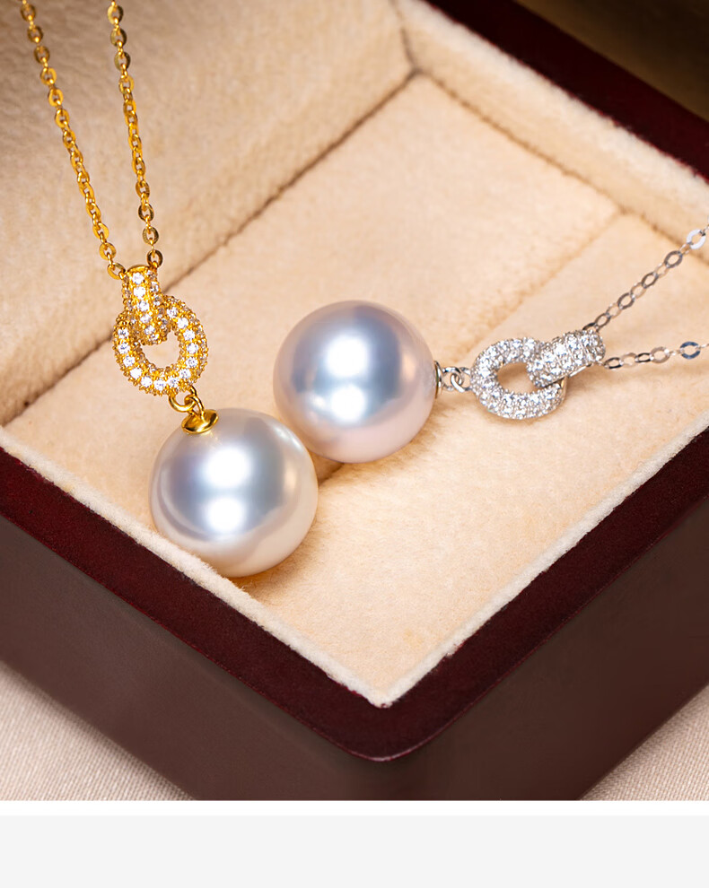 Haitong thickened 18K gold Nanyang Australian white pearl pendant single Bingtong seawater white pearl necklace temperament clavicle chain yellow 18K gold cold light 11-12mm+18k gold chain