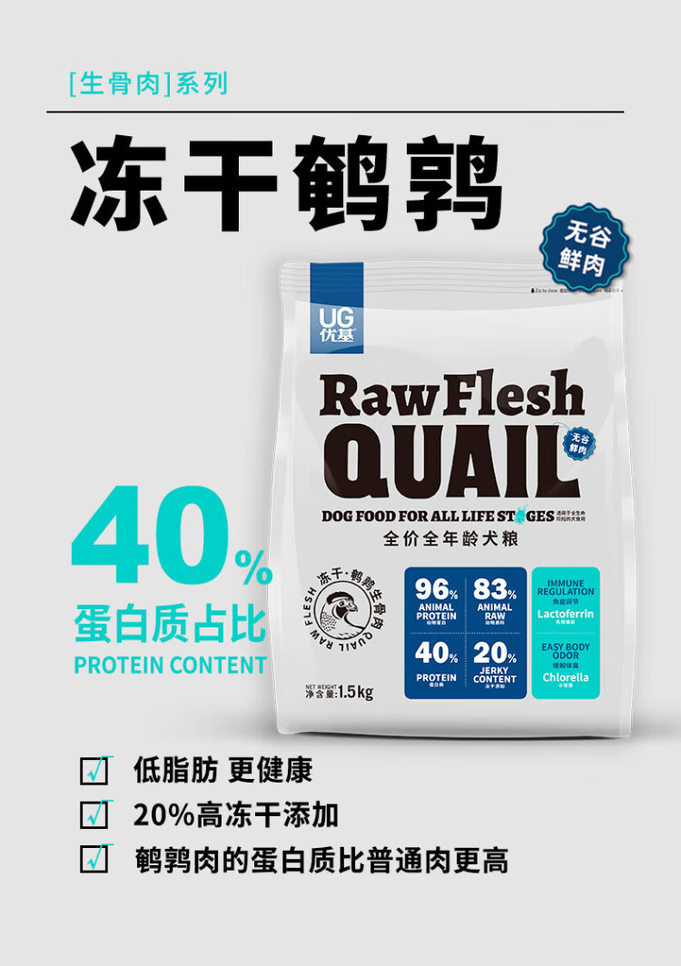 YJ (YJ) quail raw bone and meat freeze-dried dog food, grain-free fresh chicken, all dog breeds, full price, general adult dog and puppy food, egg yolk freeze-dried, 6kg, all dog breeds, full-term dog food