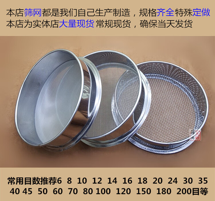 Lai Miaoyi 35cm ultra-fine baking flour sieve 304 stainless steel 10-200 mesh hand-held standard sieve density filter screen 35 cm 80 mesh