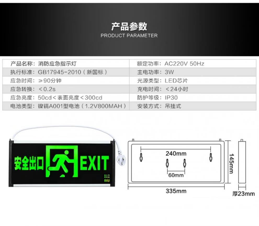 Liuyang rechargeable safety exit sign, no need to connect electricity, no wiring, with battery, fire emergency evacuation sign light, new national standard - single side forward - emergency 6 hours - with plug
