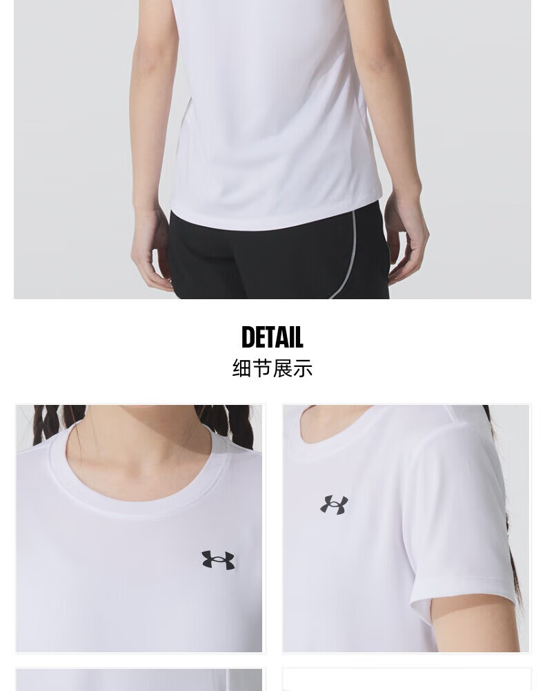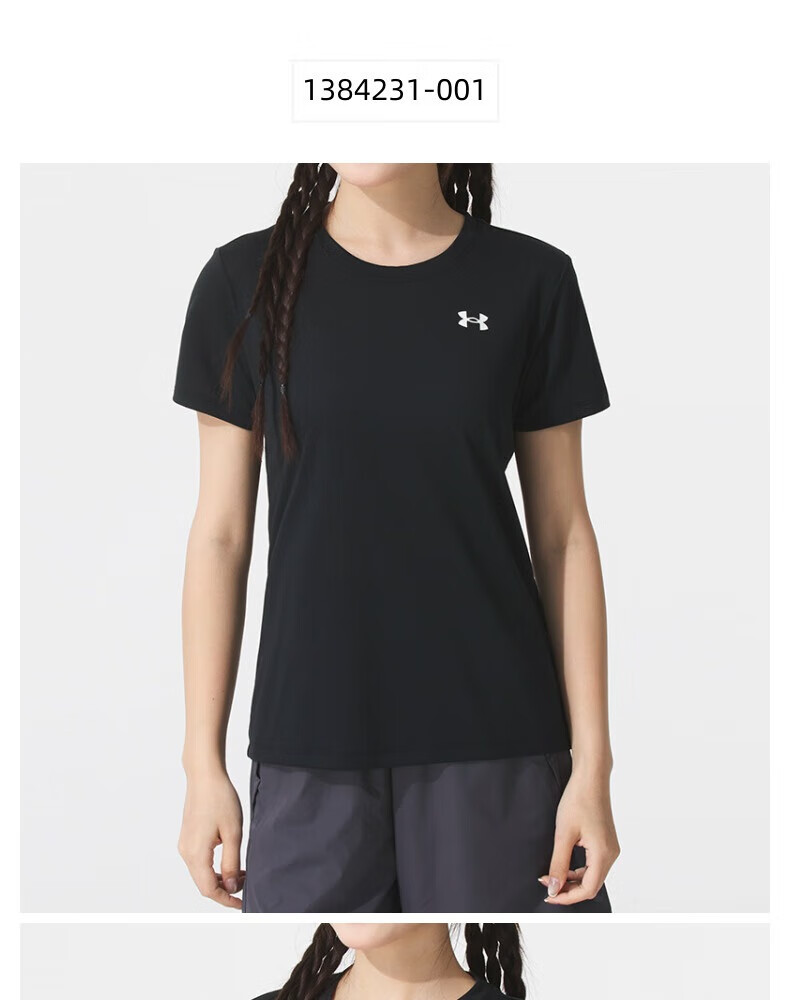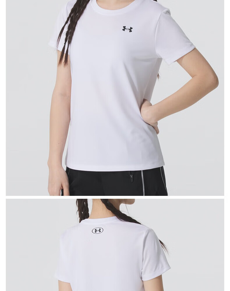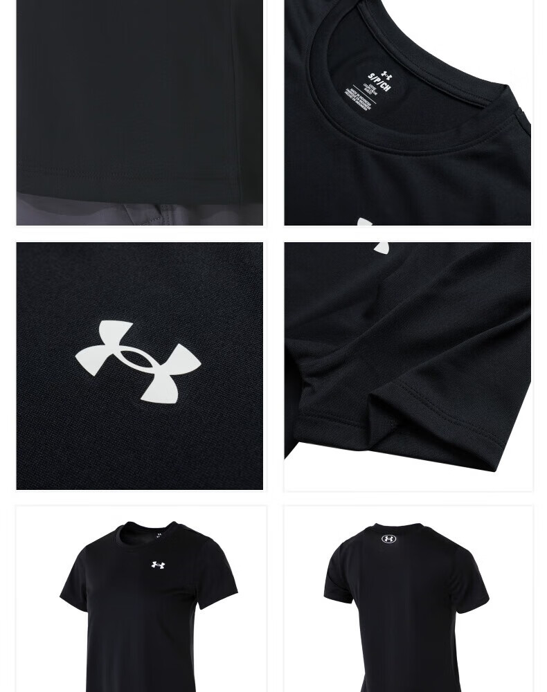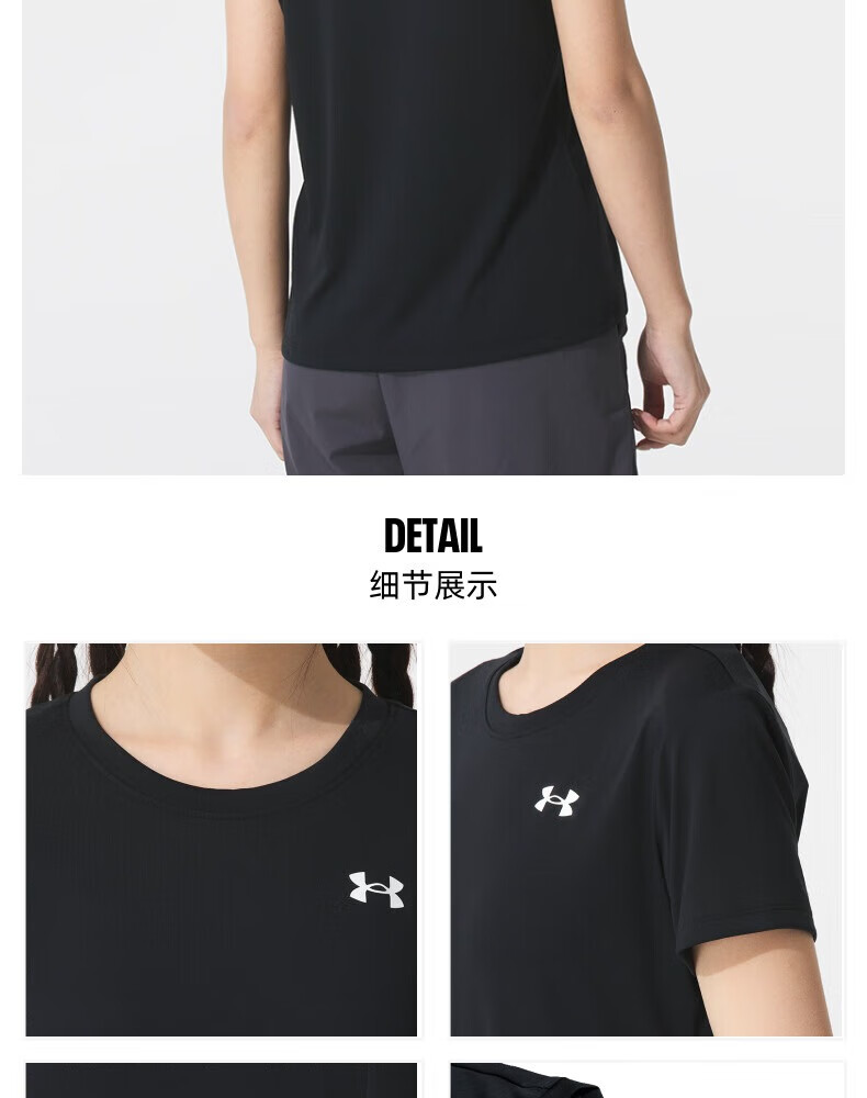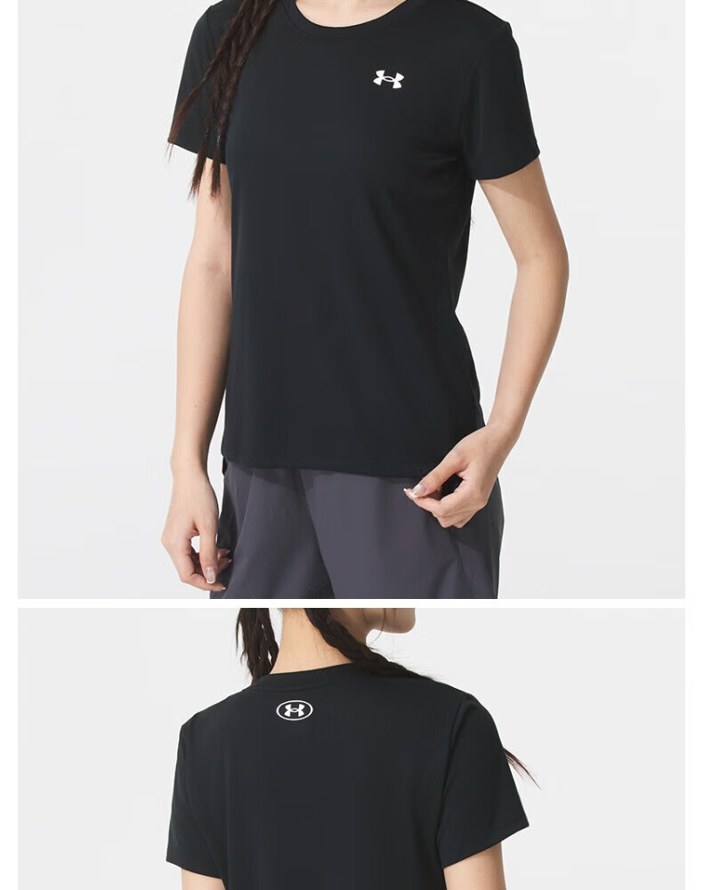 Under Armor official women's short-sleeved 2025 summer new half-sleeved casual tops fitness training yoga Pilates T-shirt black dry and breathable/recommended to go up one size S (160/80A)