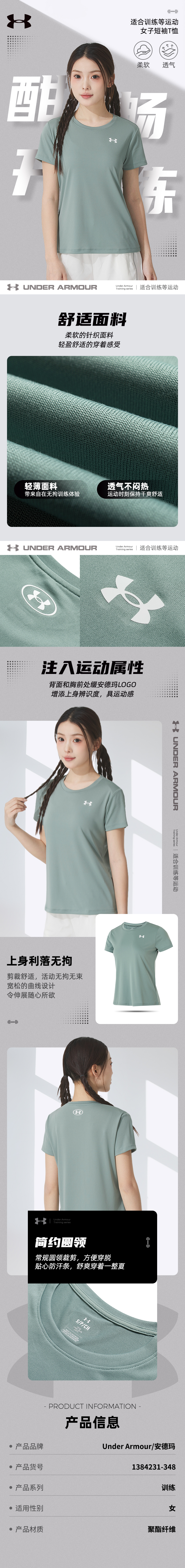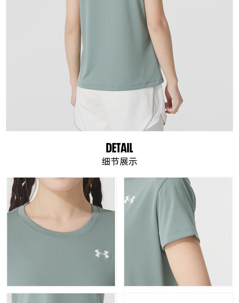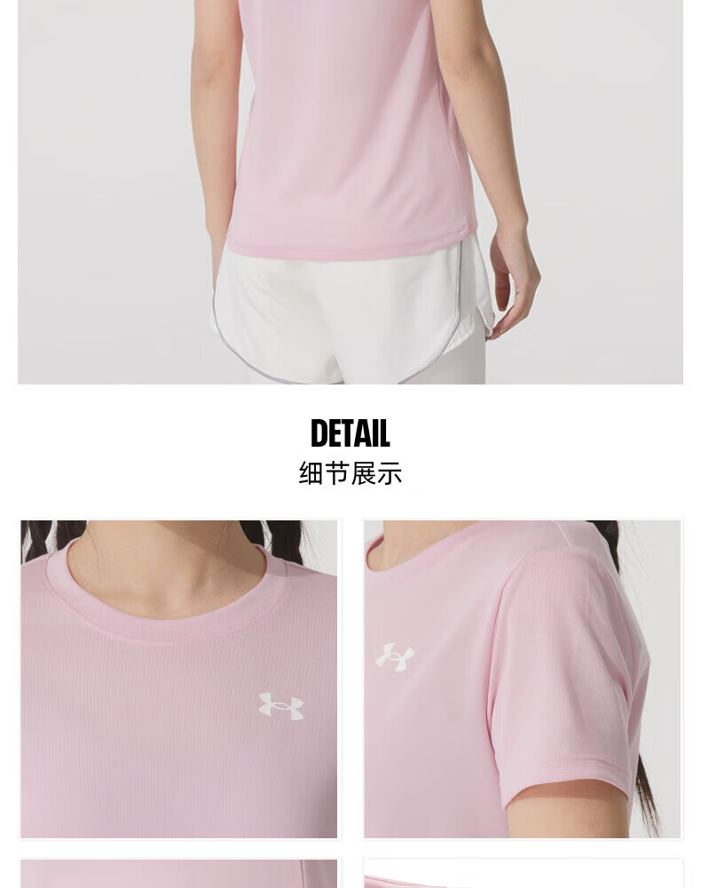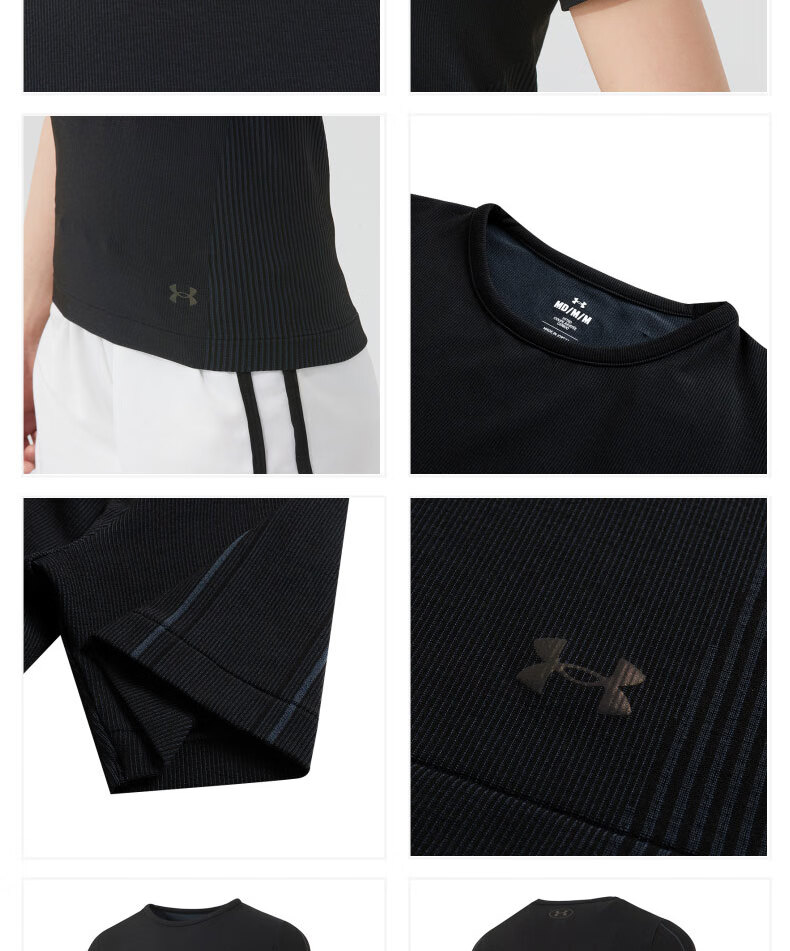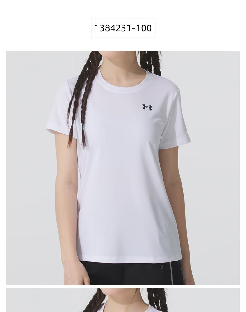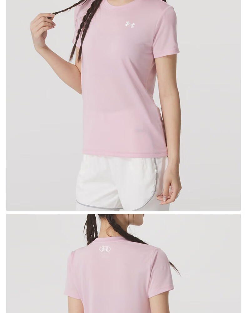 Under Armor official women's short-sleeved 2025 summer new half-sleeved casual tops fitness training yoga Pilates T-shirt black dry and breathable/recommended to go up one size S (160/80A)