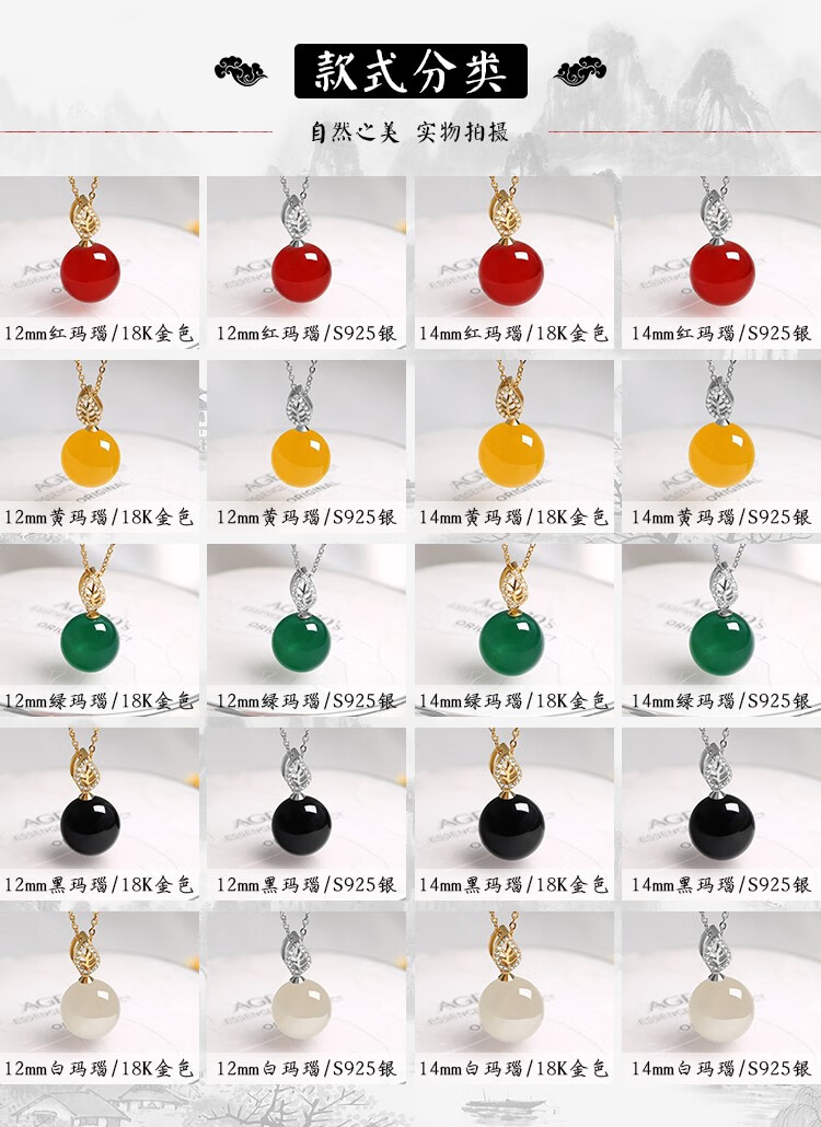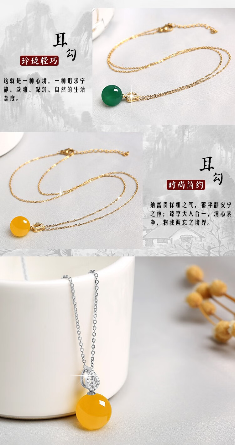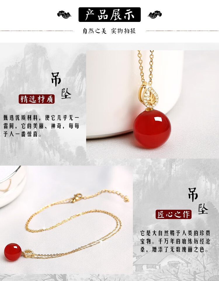 Xiyinfu natural agate bead clavicle chain women's chrysoprase pendant s925 silver chain ethnic style necklace 14mm red agate-gold buckle + chain